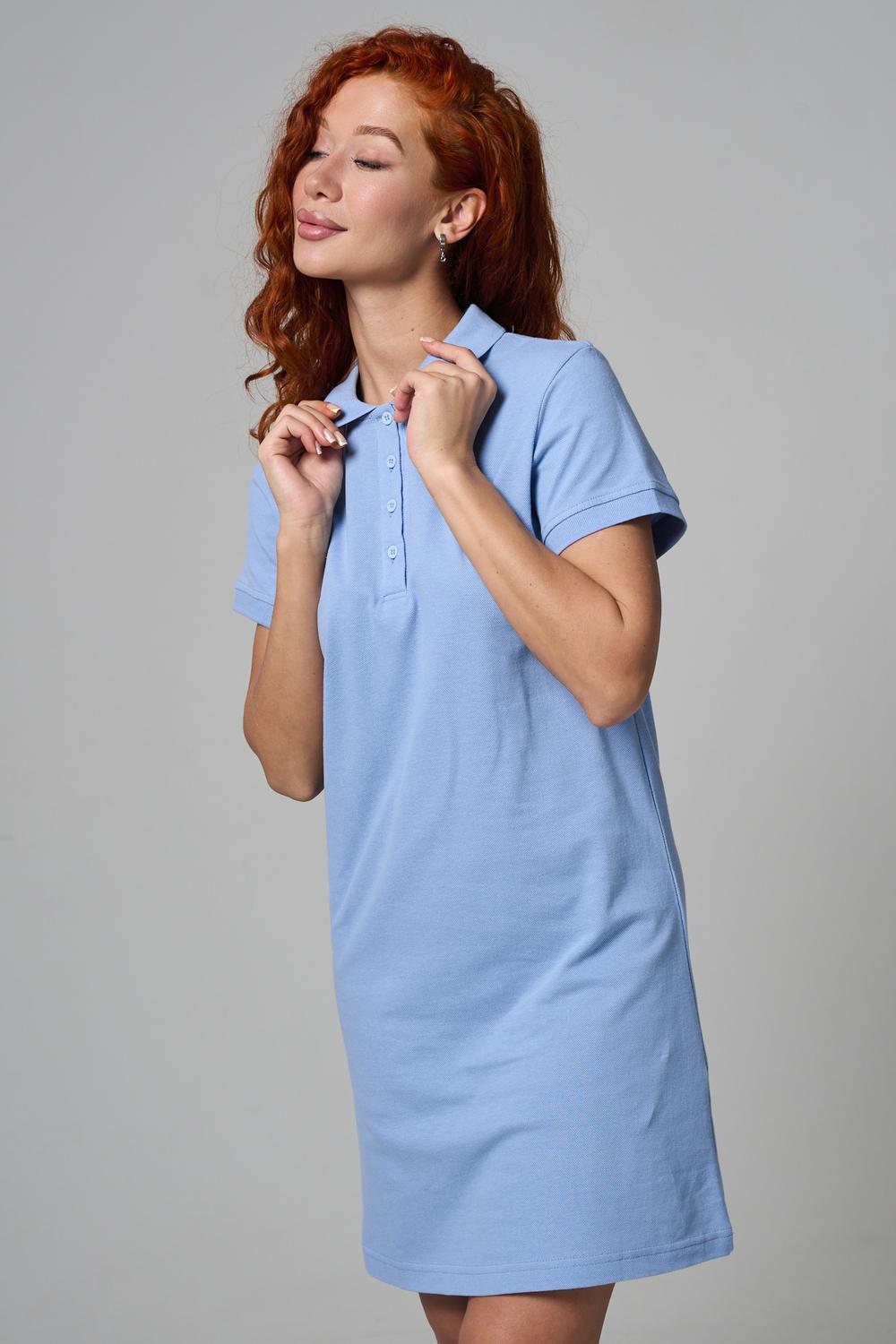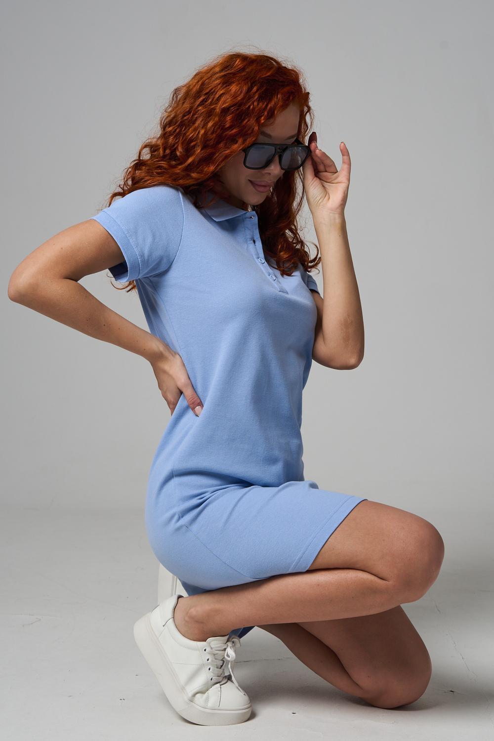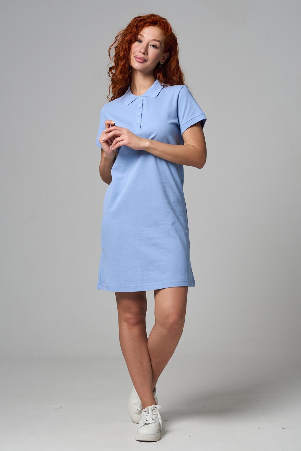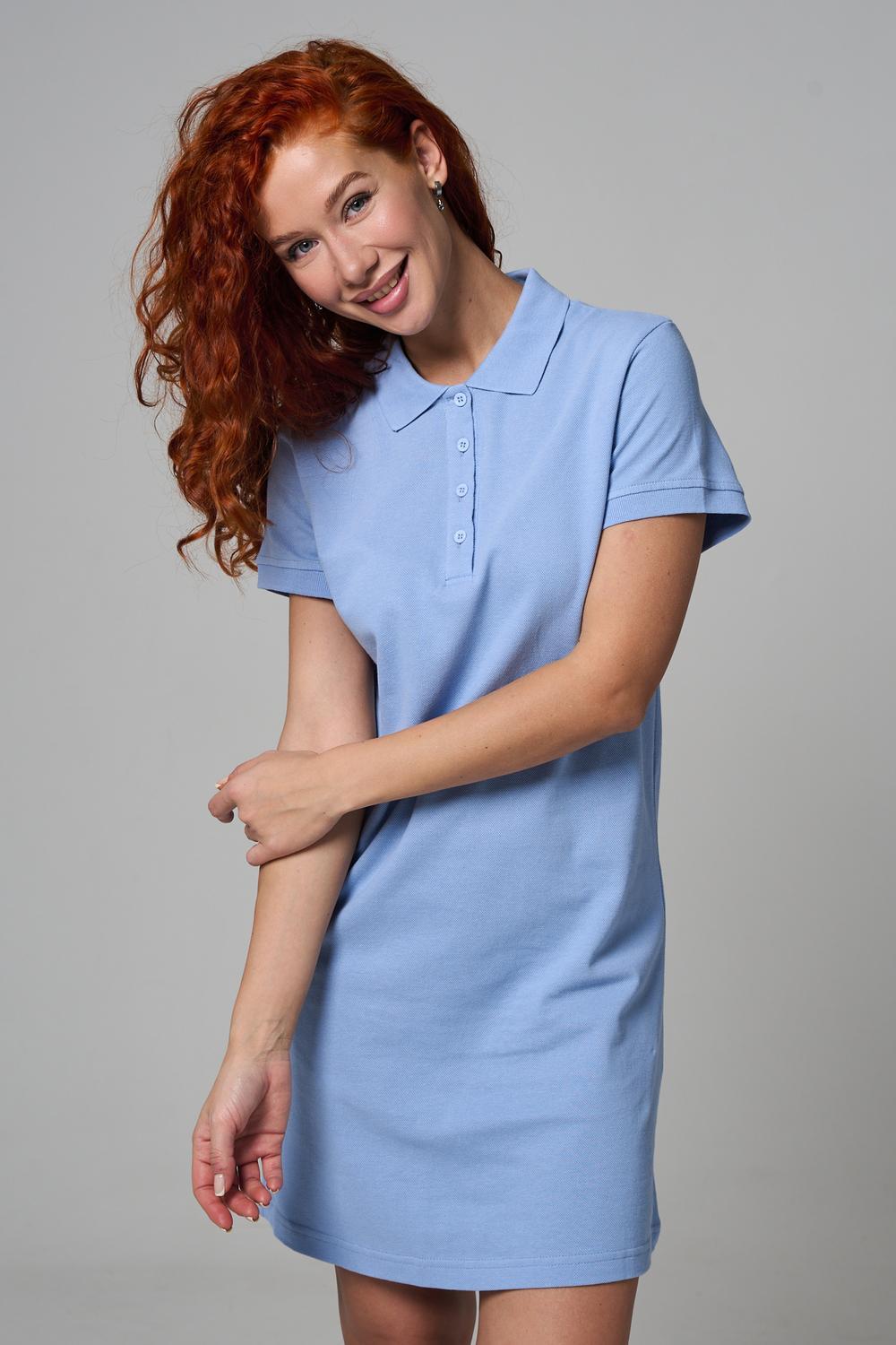 Отличный вариант для жаркого лета - модное платье-поло. Платье имеет отложной ворот и короткий рукав. Кроме того, вверху имеются акцентные пуговицы в цвет платья. Комфортная длина чуть выше колена и прямой крой делает это платье универсальным. Стильное и модное платье подойдет женщинам и девушкам разных возрастов. Хлопок обладает свойствами воздухопроницаемости, что так необходимо в жаркую весеннюю или летнюю погоду. Это изделие прекрасно сочетается как со спортивной обувью, так с классическими туфлями и балетками. На более прохладную погоду можно создавать многослойные образы, сочетая платья с другой одеждой. Это отличный вариант на повседневную основу на работу в офис, прогулки или учебу. Благодаря достаточному свободному не обтягивающему прилеганию в области талии оно является максимально удобным и комфортным. Плотность 190гр/куб.м.