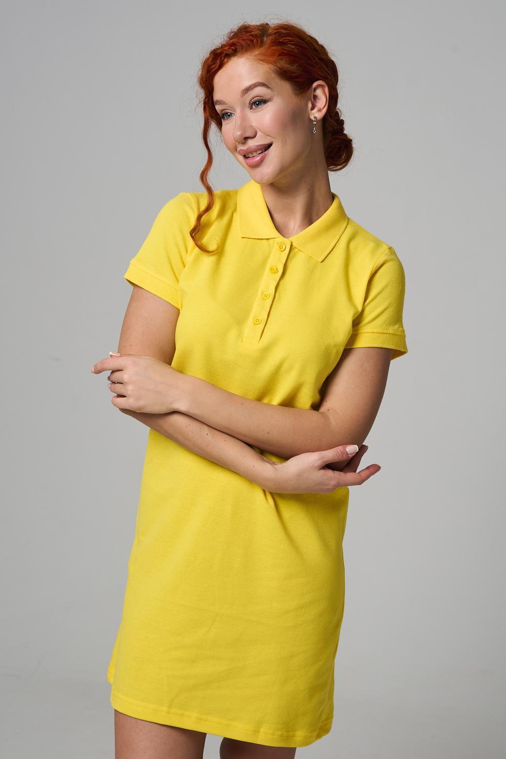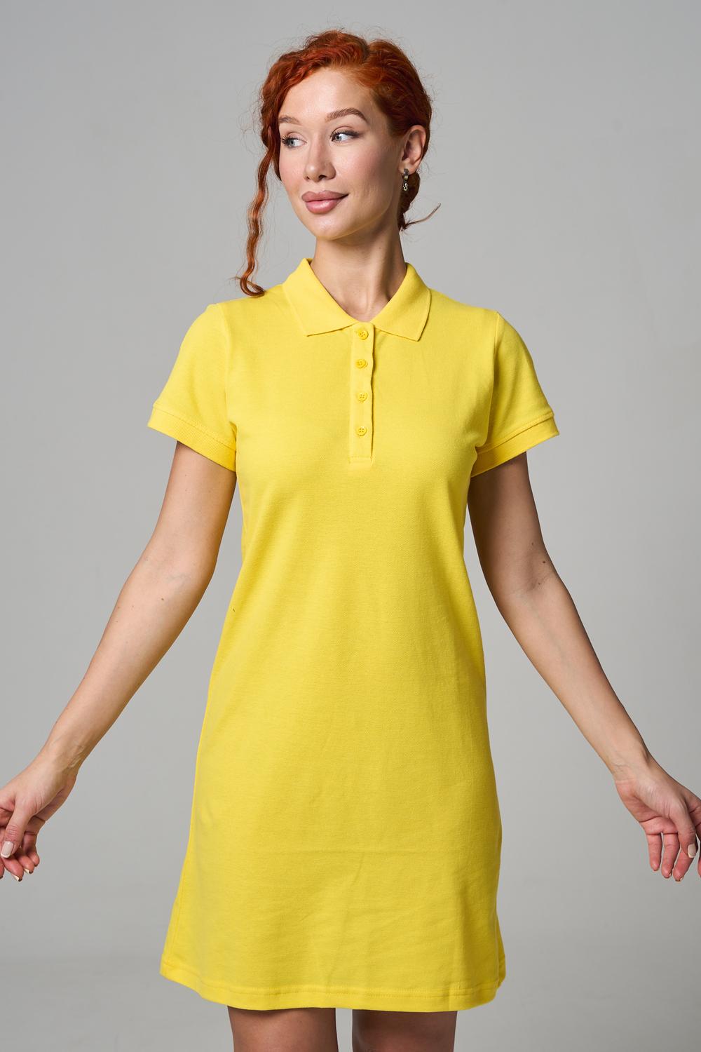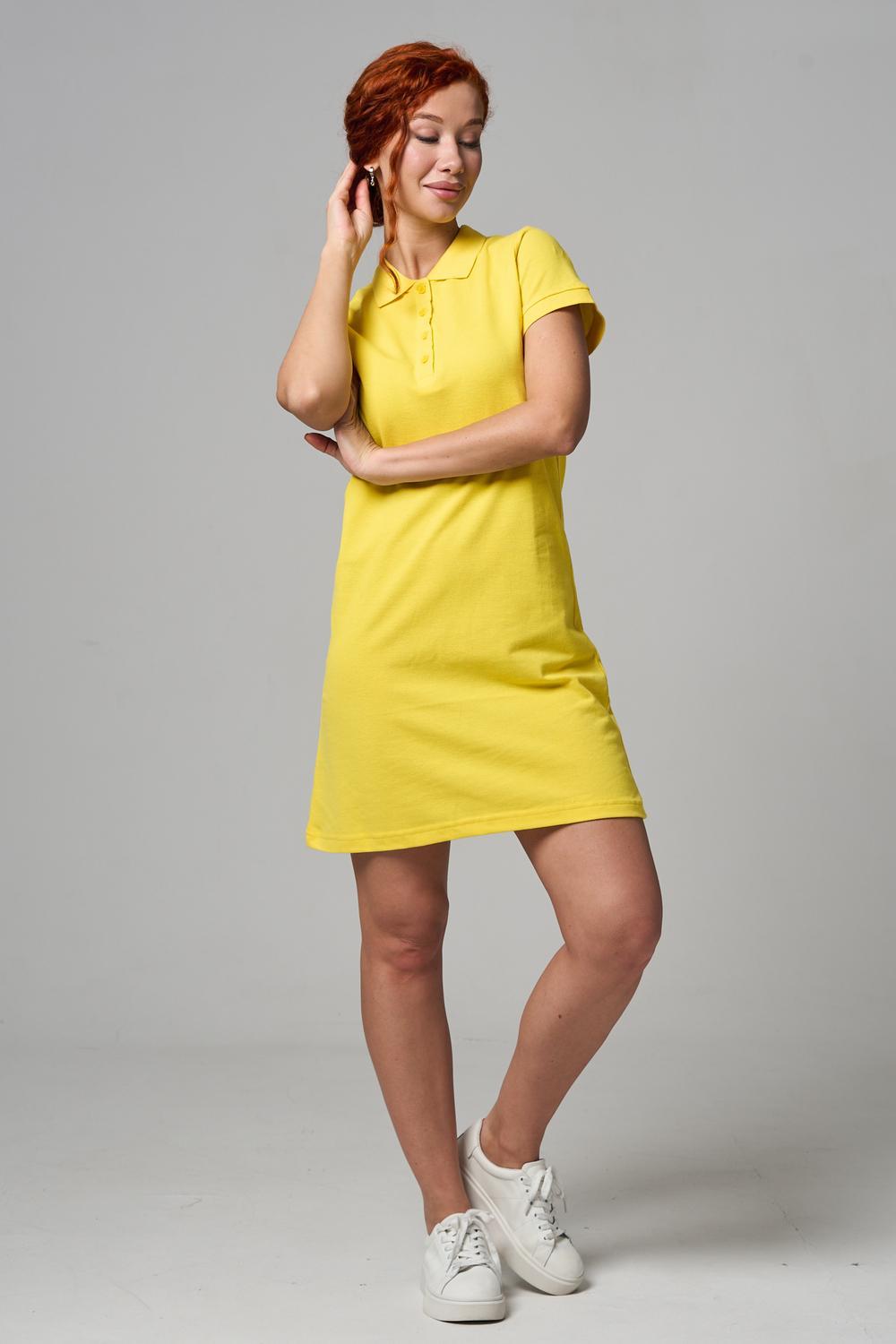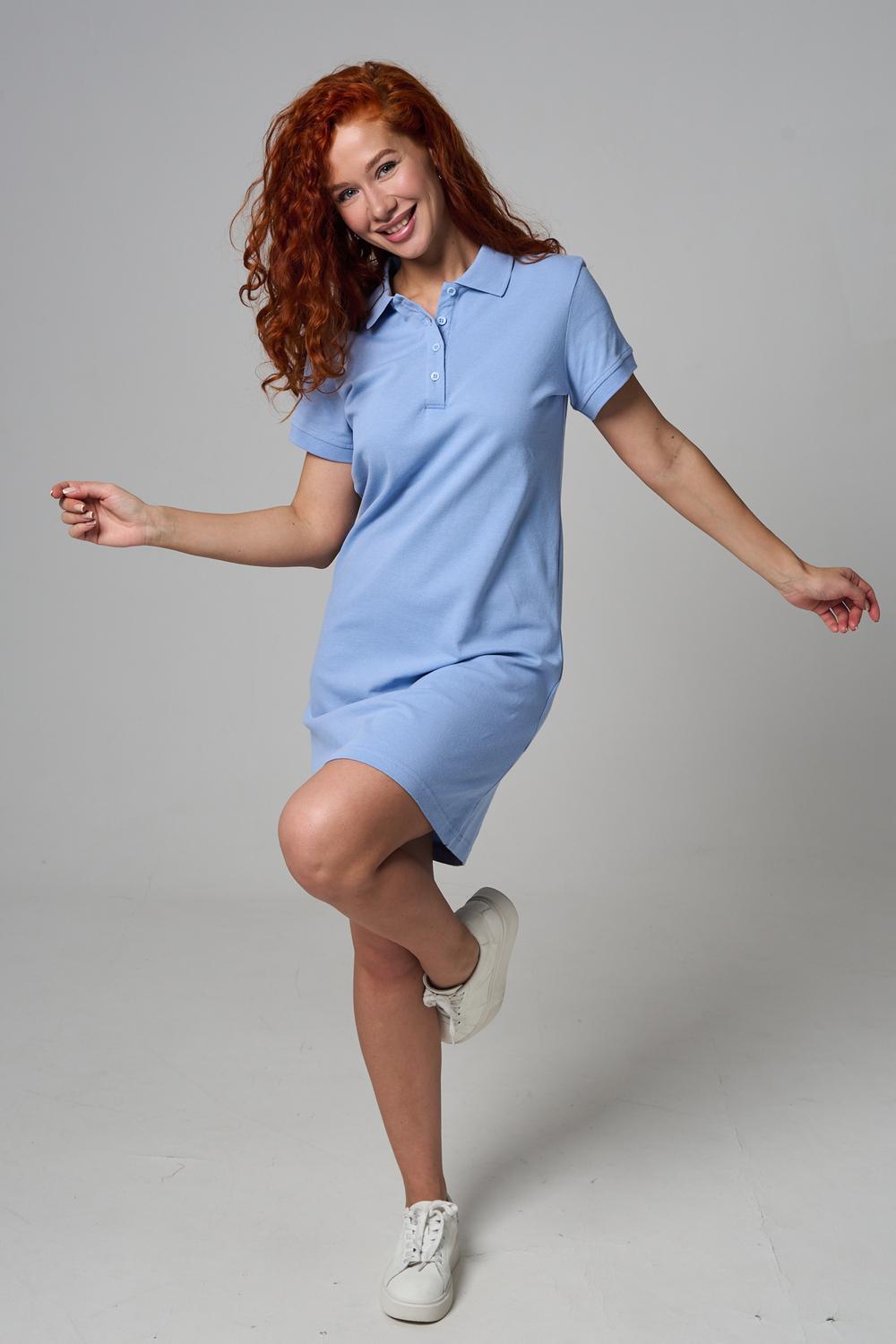 Отличный вариант для жаркого лета - модное платье-поло. Платье имеет отложной ворот и короткий рукав. Кроме того, вверху имеются акцентные пуговицы в цвет платья. Комфортная длина чуть выше колена и прямой крой делает это платье универсальным. Стильное и модное платье подойдет женщинам и девушкам разных возрастов. Хлопок обладает свойствами воздухопроницаемости, что так необходимо в жаркую весеннюю или летнюю погоду. Это изделие прекрасно сочетается как со спортивной обувью, так с классическими туфлями и балетками. На более прохладную погоду можно создавать многослойные образы, сочетая платья с другой одеждой. Это отличный вариант на повседневную основу на работу в офис, прогулки или учебу. Благодаря достаточному свободному не обтягивающему прилеганию в области талии оно является максимально удобным и комфортным. Плотность 190гр/куб.м.