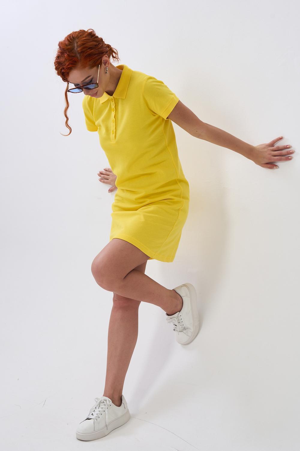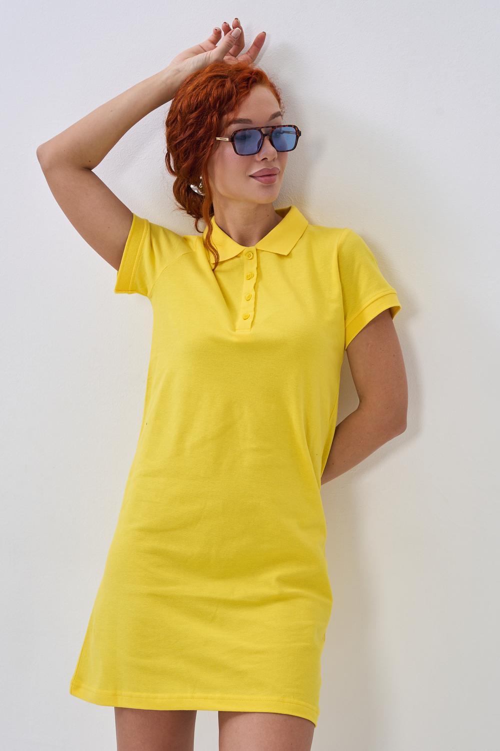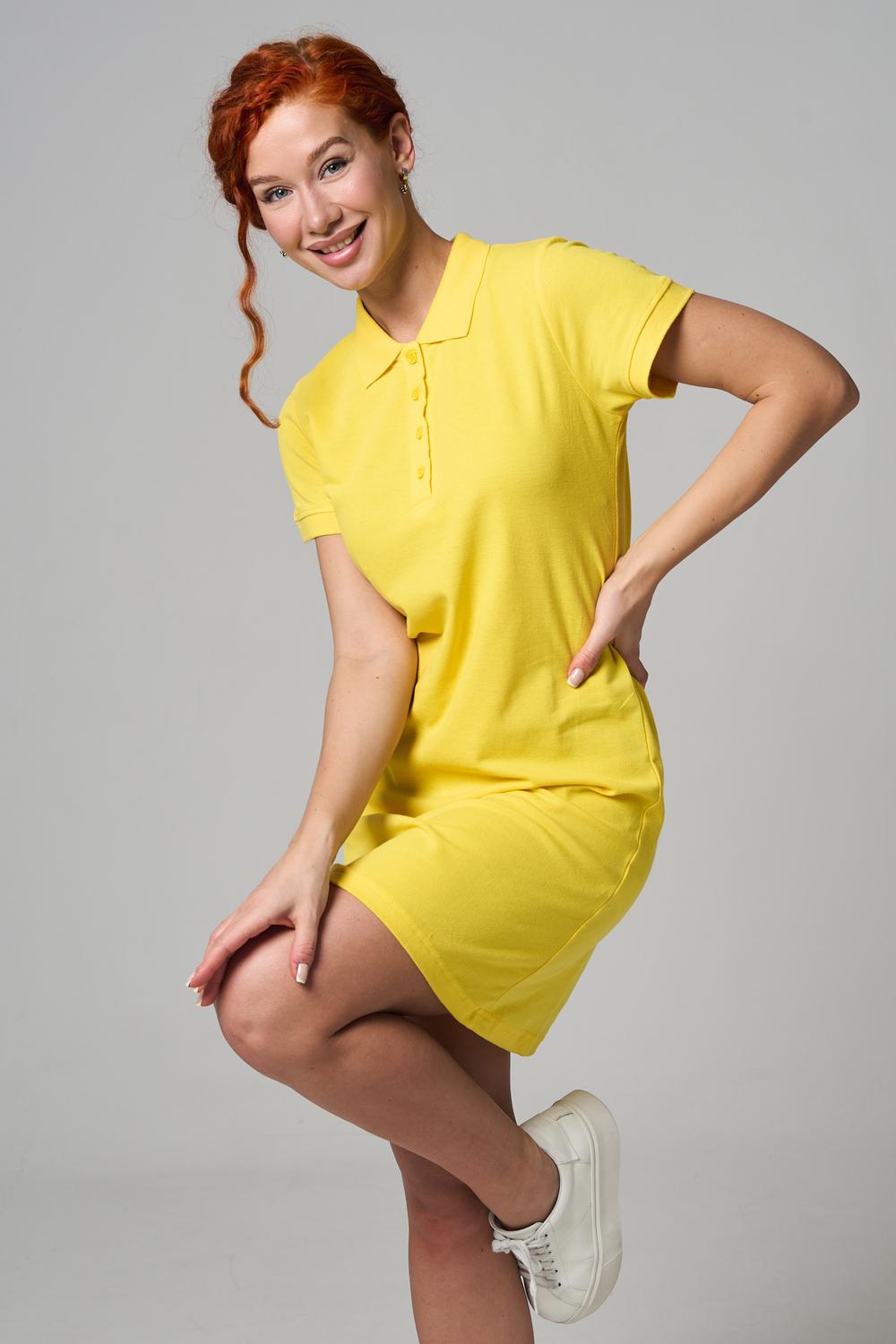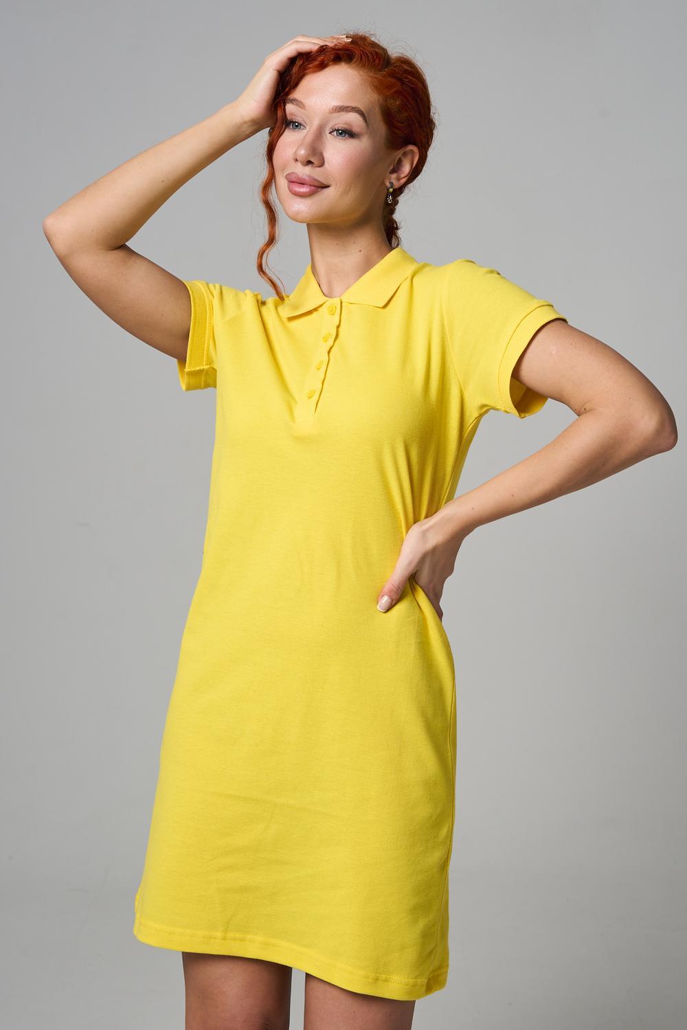Отличный вариант для жаркого лета - модное платье-поло. Платье имеет отложной ворот и короткий рукав. Кроме того, вверху имеются акцентные пуговицы в цвет платья. Комфортная длина чуть выше колена и прямой крой делает это платье универсальным. Стильное и модное платье подойдет женщинам и девушкам разных возрастов. Хлопок обладает свойствами воздухопроницаемости, что так необходимо в жаркую весеннюю или летнюю погоду. Это изделие прекрасно сочетается как со спортивной обувью, так с классическими туфлями и балетками. На более прохладную погоду можно создавать многослойные образы, сочетая платья с другой одеждой. Это отличный вариант на повседневную основу на работу в офис, прогулки или учебу. Благодаря достаточному свободному не обтягивающему прилеганию в области талии оно является максимально удобным и комфортным. Плотность 190гр/куб.м.