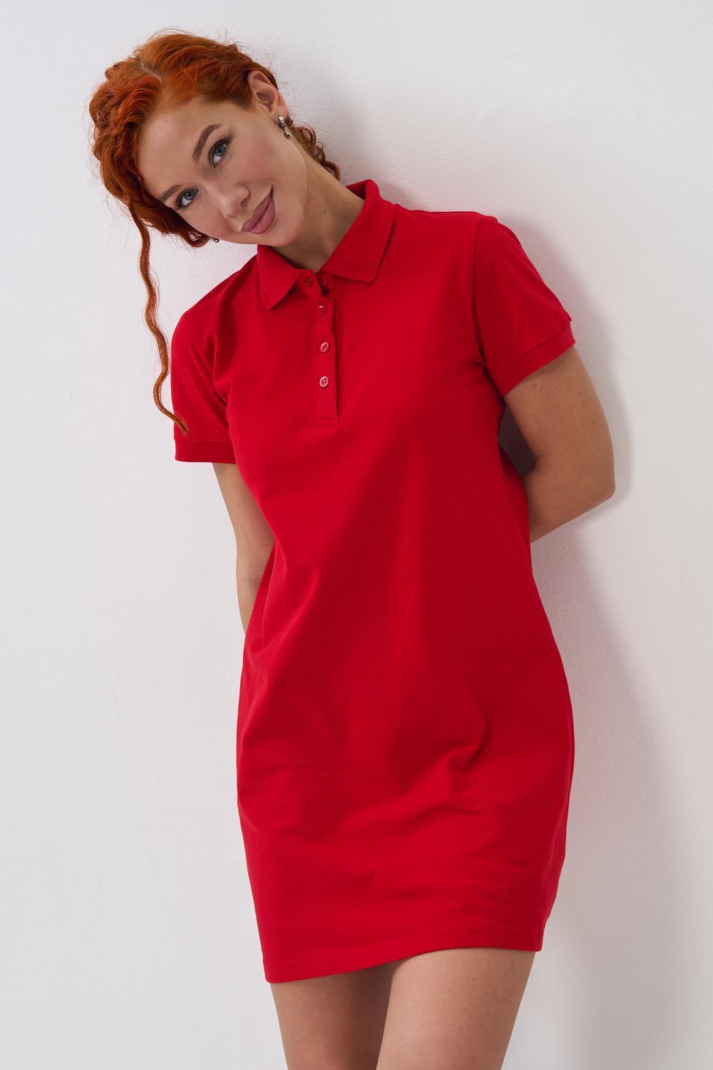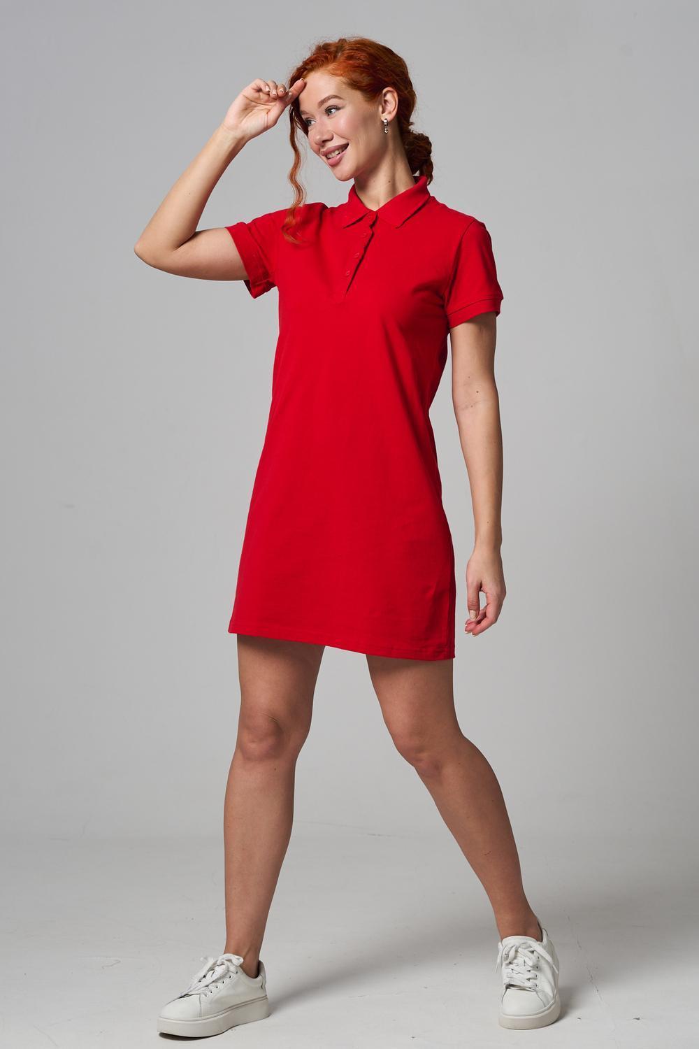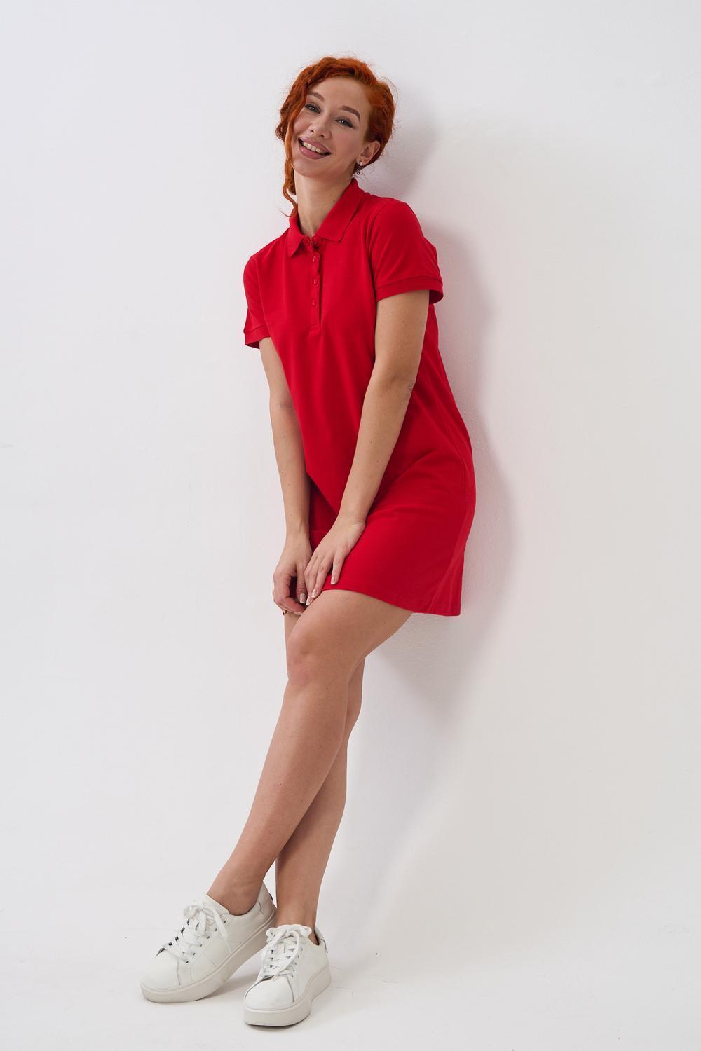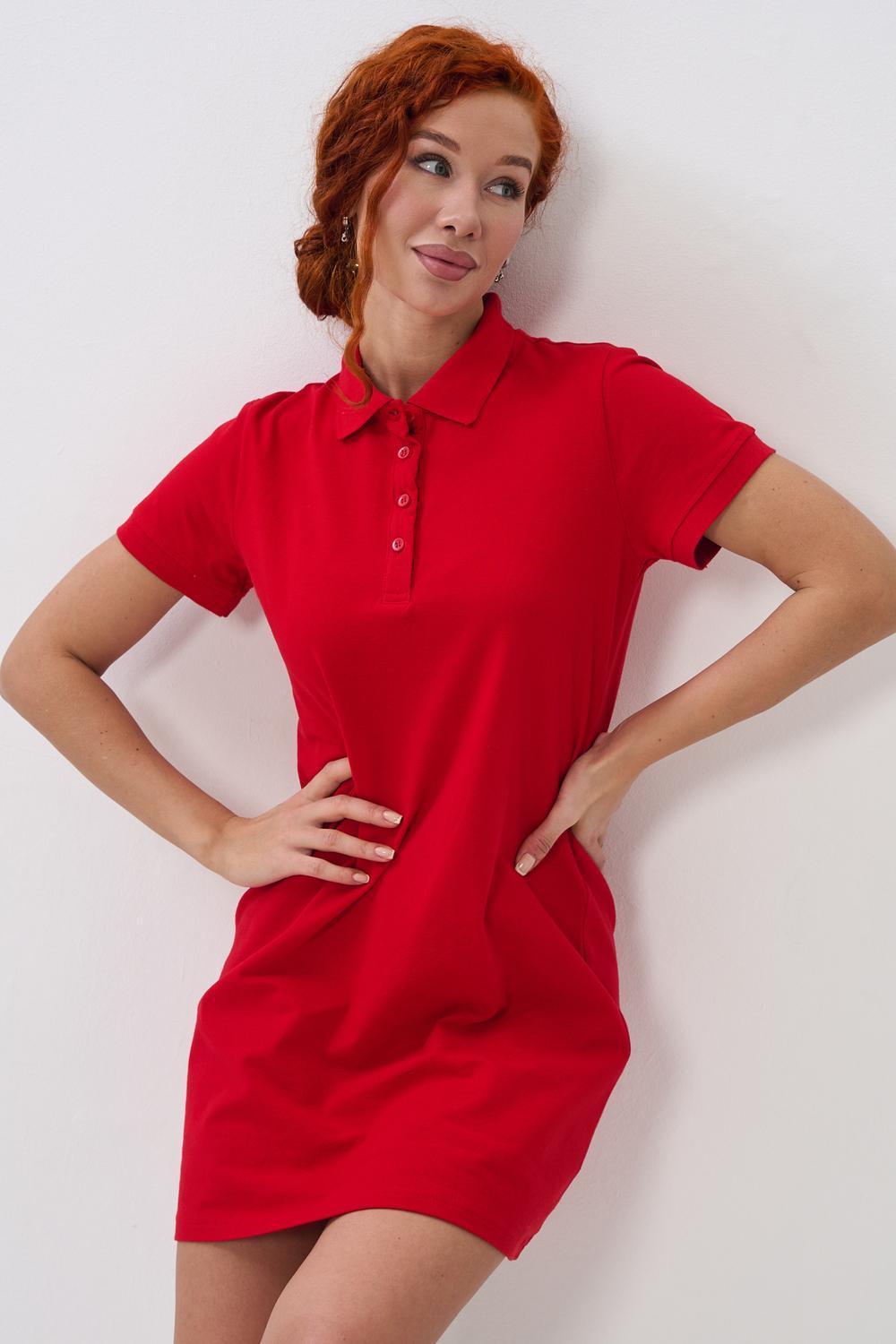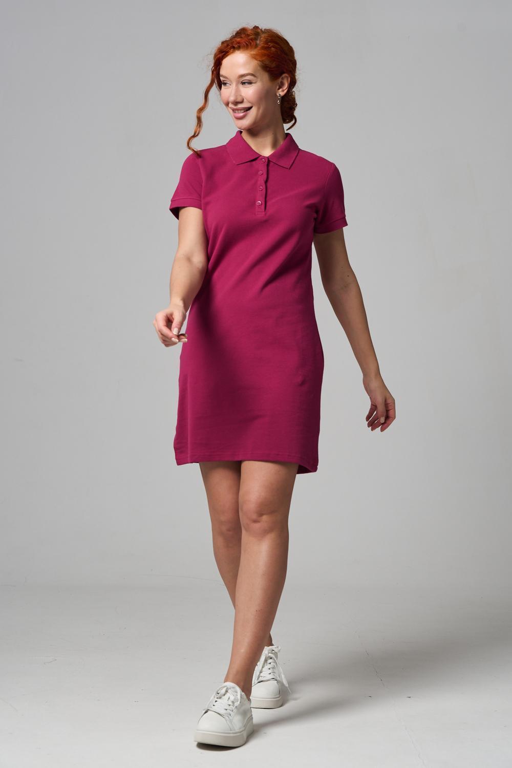 Отличный вариант для жаркого лета - модное платье-поло. Платье имеет отложной ворот и короткий рукав. Кроме того, вверху имеются акцентные пуговицы в цвет платья. Комфортная длина чуть выше колена и прямой крой делает это платье универсальным. Стильное и модное платье подойдет женщинам и девушкам разных возрастов. Хлопок обладает свойствами воздухопроницаемости, что так необходимо в жаркую весеннюю или летнюю погоду. Это изделие прекрасно сочетается как со спортивной обувью, так с классическими туфлями и балетками. На более прохладную погоду можно создавать многослойные образы, сочетая платья с другой одеждой. Это отличный вариант на повседневную основу на работу в офис, прогулки или учебу. Благодаря достаточному свободному не обтягивающему прилеганию в области талии оно является максимально удобным и комфортным.