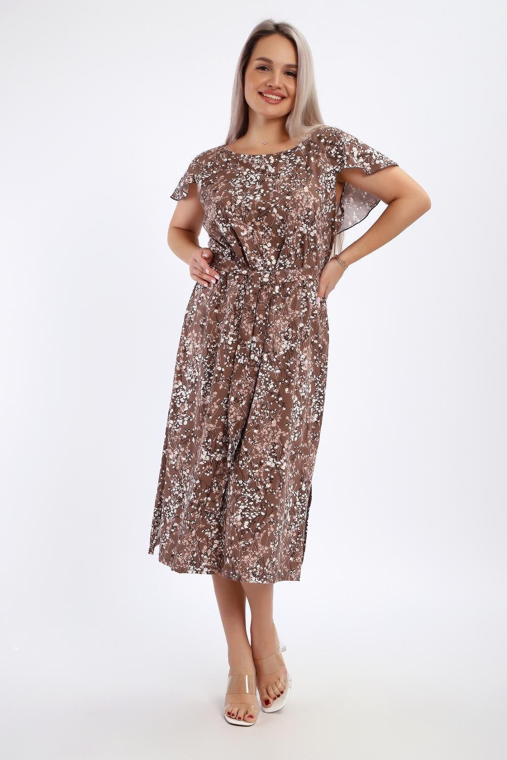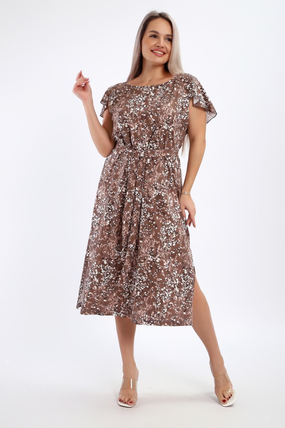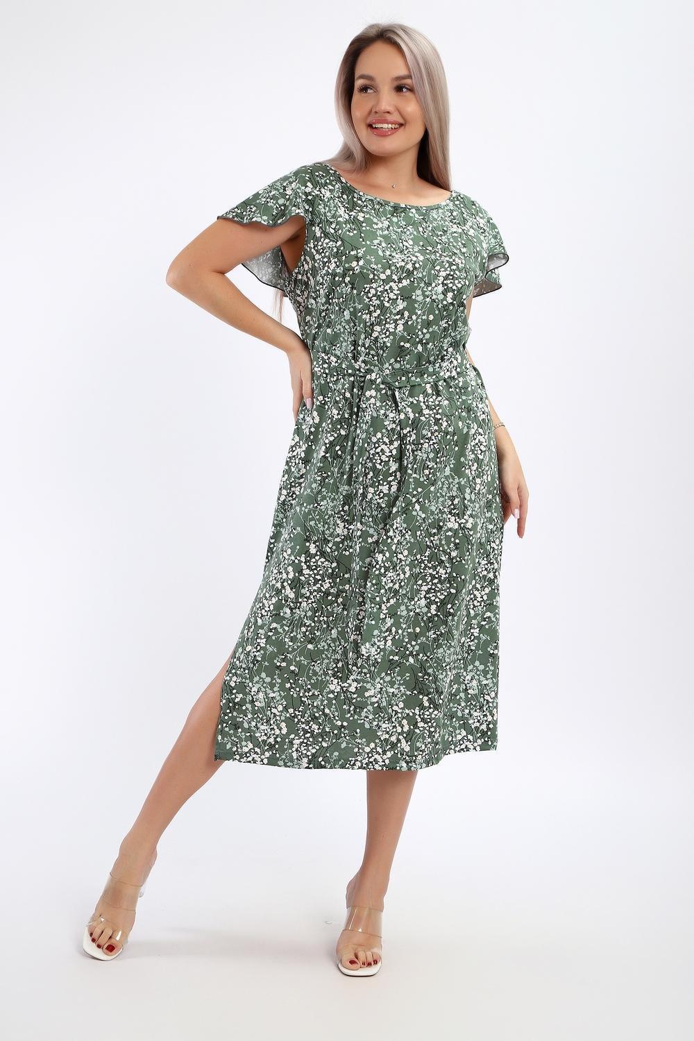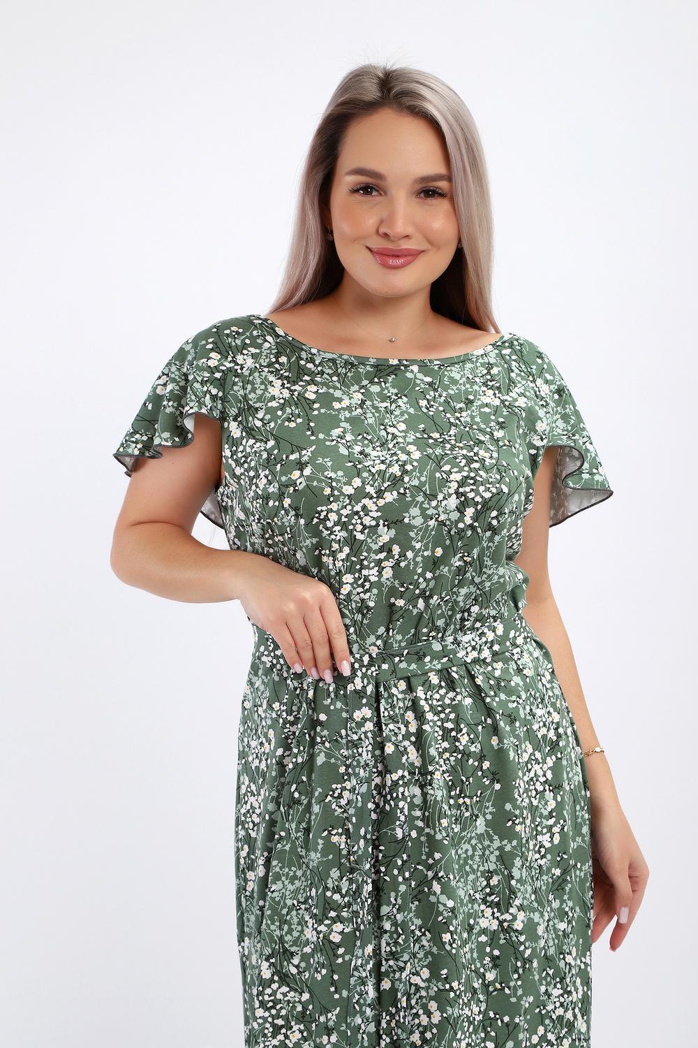 Платье-сарафан женское выполнено из кулирки 100% хлопок. Изделие средней длины, по бокам разрезы, с глубоким вырезом горловины в области спины, украшенным красивым воланом. Горловина и проймы обработаны узким кантом. Платье дополнено поясом, который изящно подчеркивает талию. Сарафан идеально подходит для романтичных образов, в нем будет комфортно на отдыхе и прогулках.