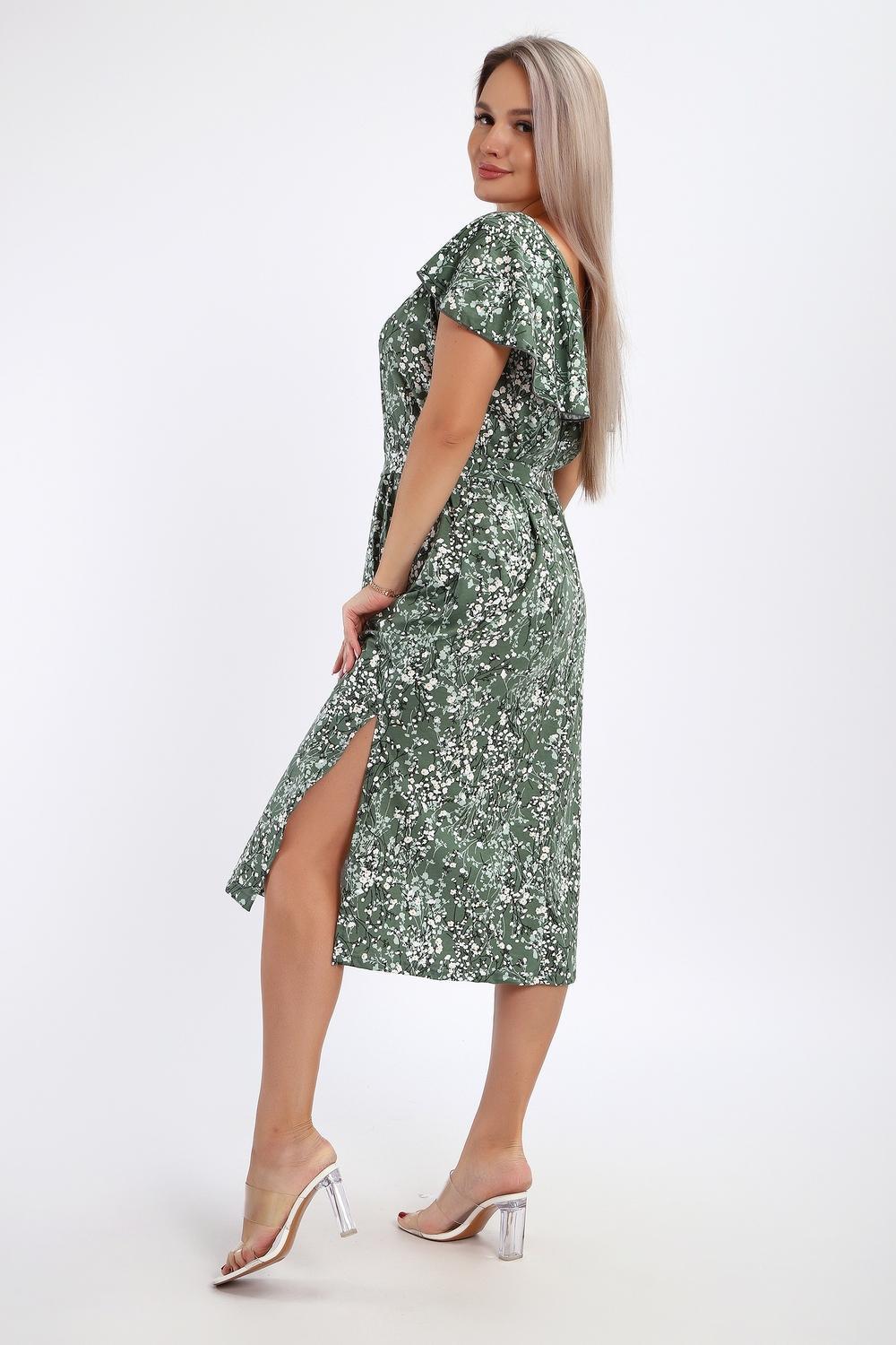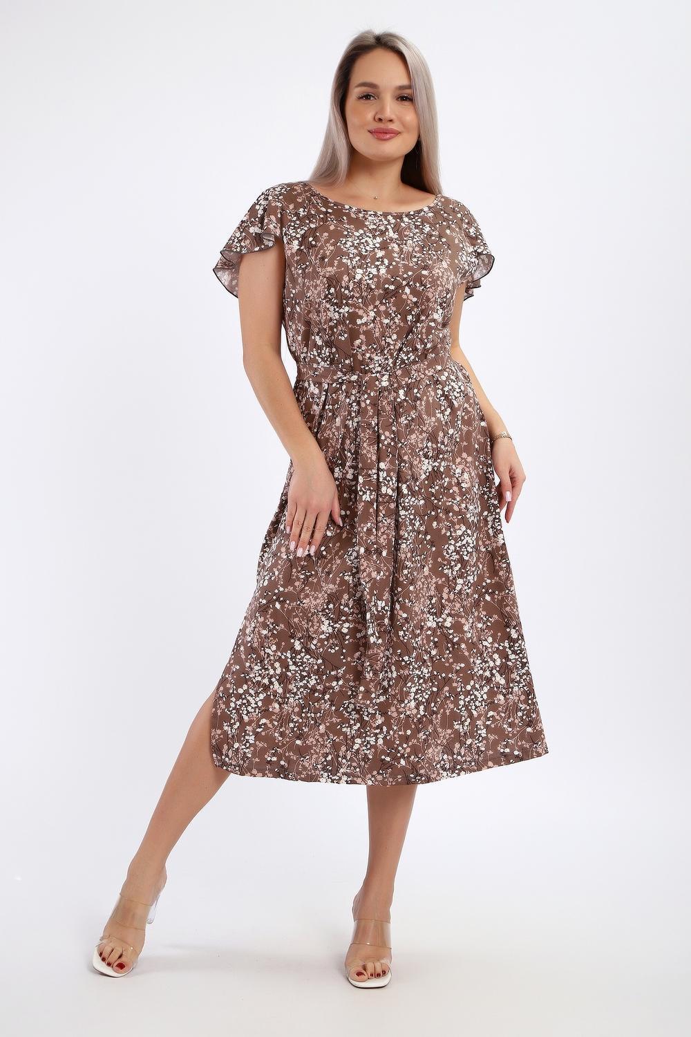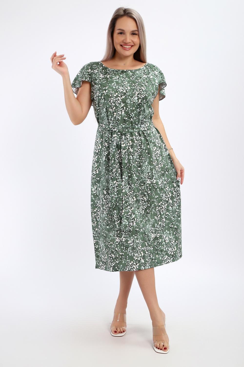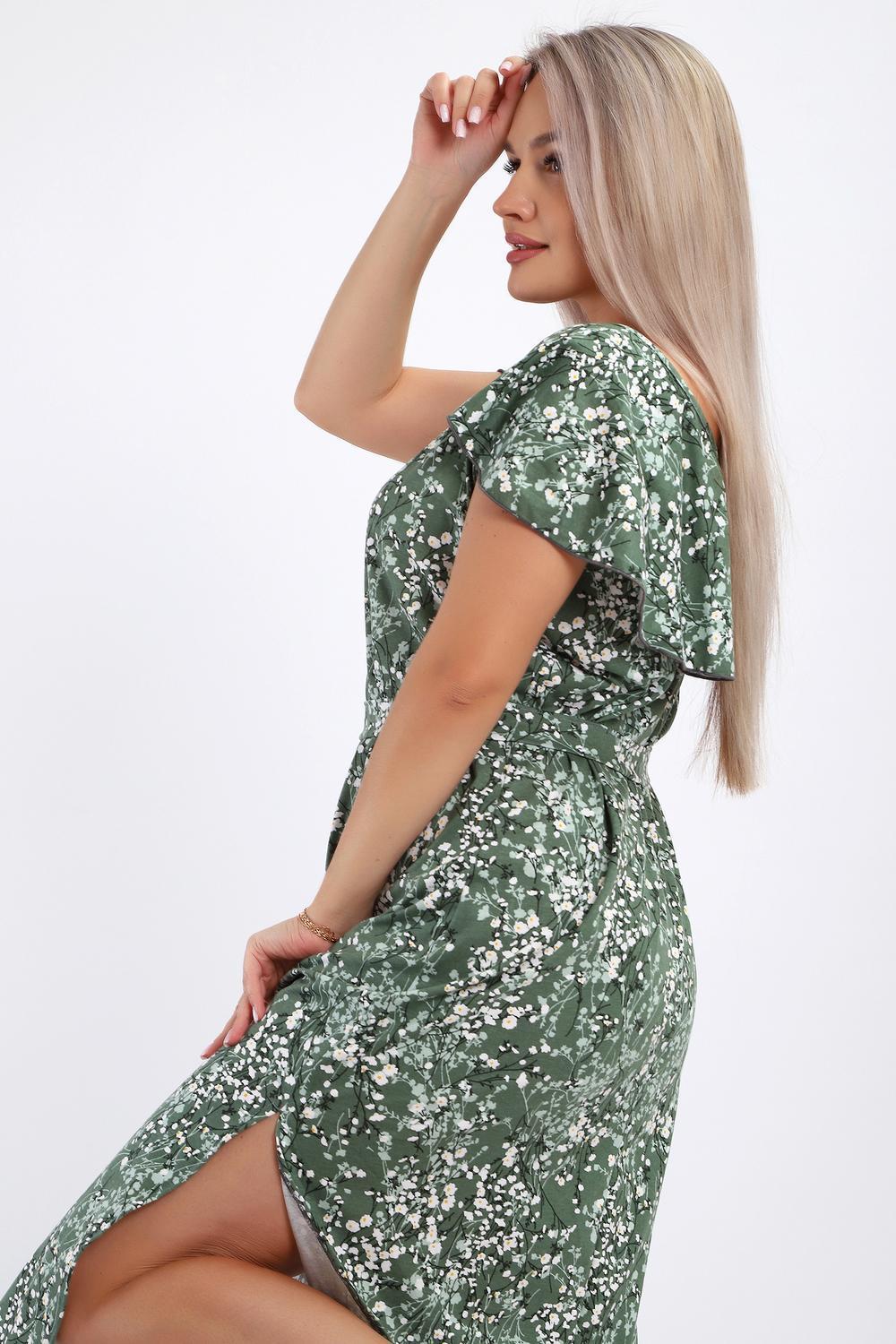 Платье-сарафан женское выполнено из кулирки 100% хлопок. Изделие средней длины, по бокам разрезы, с глубоким вырезом горловины в области спины, украшенным красивым воланом. Горловина и проймы обработаны узким кантом. Платье дополнено поясом, который изящно подчеркивает талию. Сарафан идеально подходит для романтичных образов, в нем будет комфортно на отдыхе и прогулках.