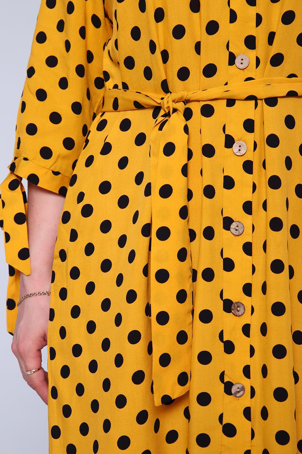 Платье - халат - абсолютный must have Вашего гардероба. Благодаря специальной конструкции такая модель платья внешне стройнит и делают его обладательницу еще более привлекательной. Значение имеет V-образный вырез, который добавляет выразительность. Легкое платье; V-образный вырез горловины, ; Рукав втачной короткий украшенный декоративной отделкой в виде завязывающихся лент; По переду застегивается на пуговицы; Платье завязывается на пояс;