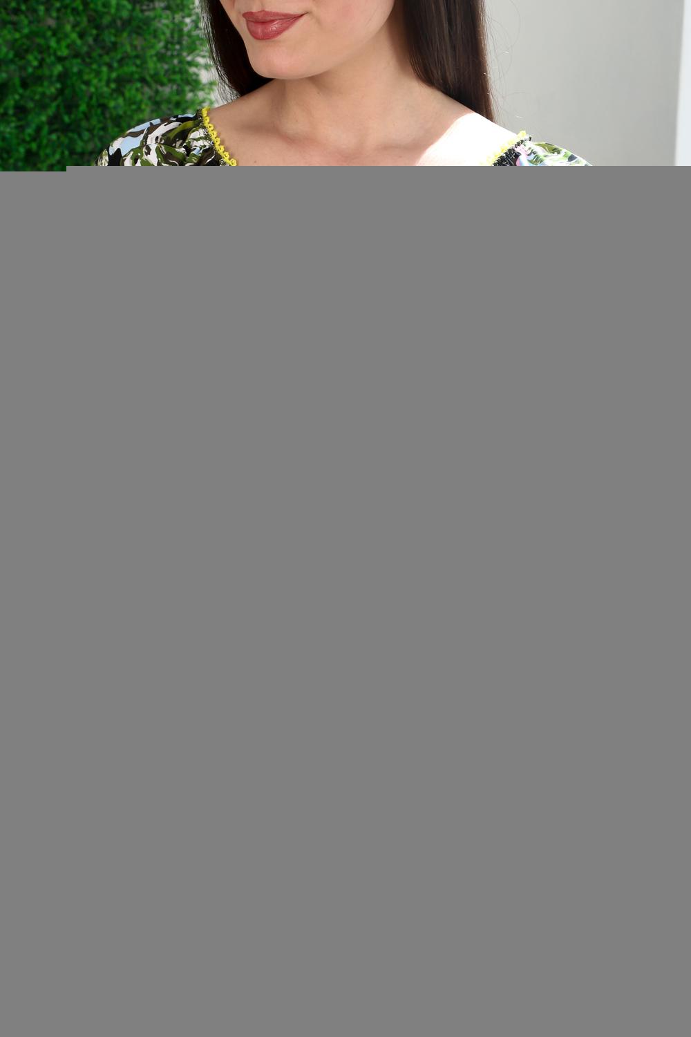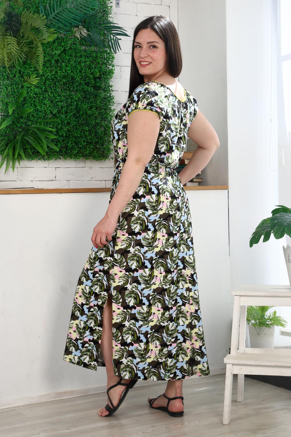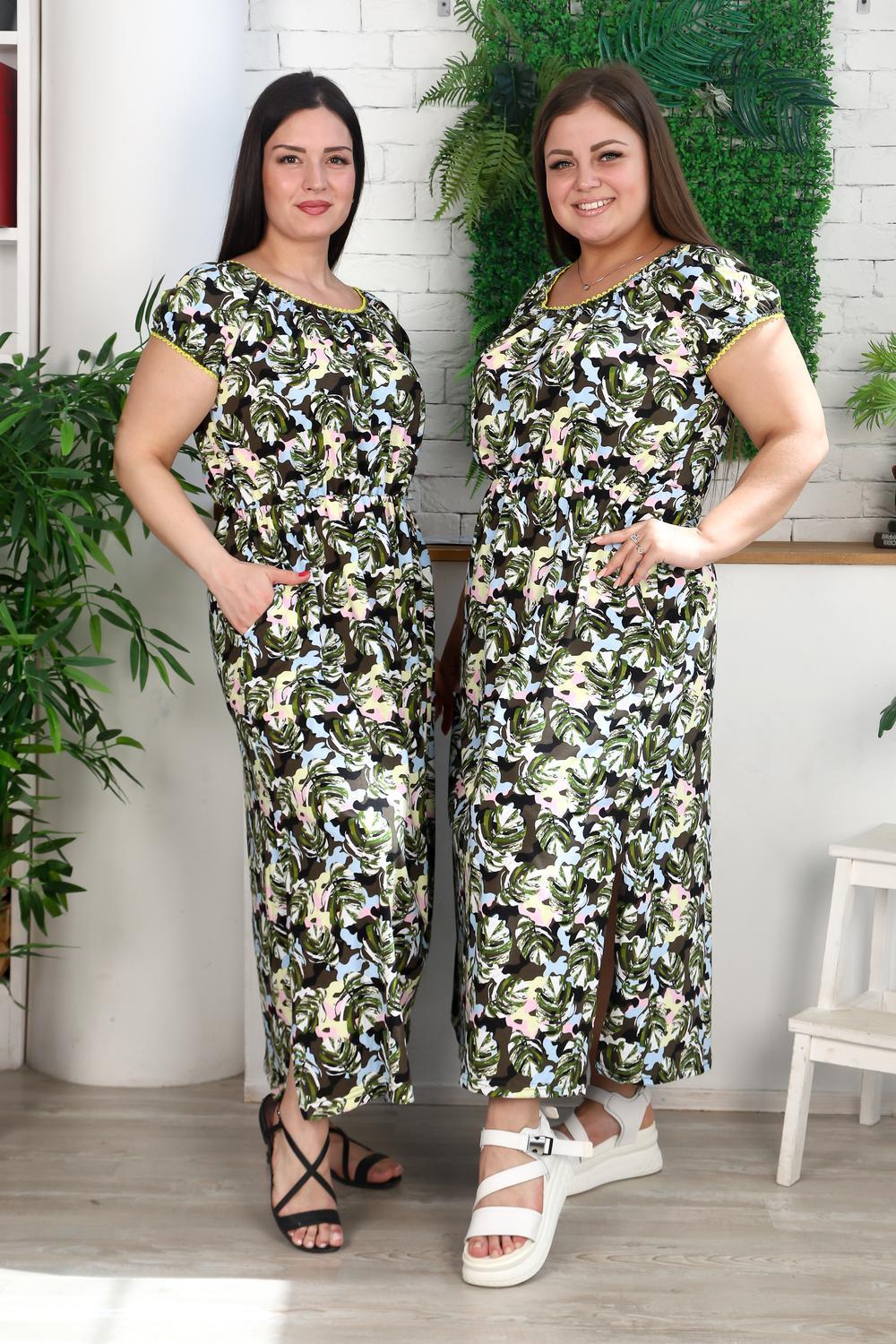 Платье женское приталенное эластичной тесьмой, горловина и низ рукавов обработаны эластичной кружевной тесьмой, два боковых кармана. По низу изделия высокие разрезы.