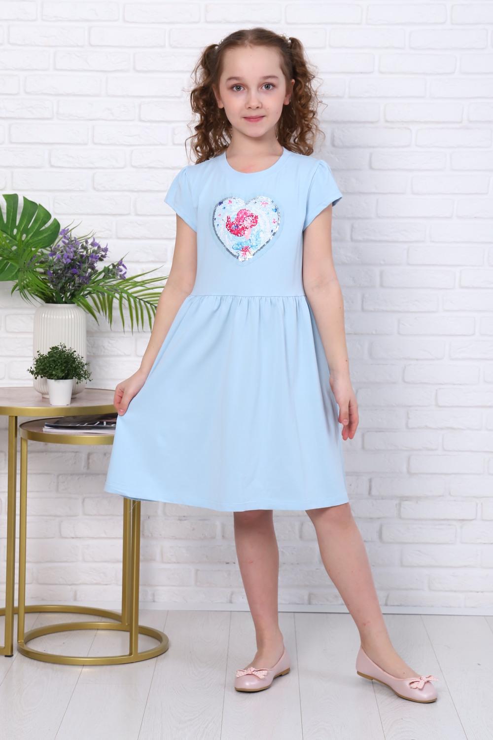 Платье для девочки в садик трикотажное с коротким рукавом, прилегающего силуэта, отрезное и расклешенное от линии талии, спереди на верхней части платья настрочена декоративная нашивка из пайеток. Сшито из мягкого однотонного хлопкового материала с добавлением в состав хлопка 92% и лайкры 8 %. Идеально для детского сада, для прогулок, для праздника и на каждый день, обладает прочностью, которая позволяет Вашей девочке активно играть и веселиться, не ограничивая движения. Прекрасная посадка позволяет использовать, как повседневное, а ещё наше платье для девочки не имеет застежек, что делает его легким в надевании и снятии, ребёнок сможет самостоятельно одеваться и чувствовать себя самой красивой принцессой. В нашей одежде не будет жарко в период включенного отопления осенью, весной и зимой. Подойдёт в качестве подарка на Новый 2024 Год, выпускной, день рождения, на праздник осени. Для выбора правильного размера необходимо определить параметры: обхват груди, длина изделия, длина рукава и рост, после чего обратиться к таблице размеров, расположенной фотогалерее. С признательностью, команда "Мурлыка".
