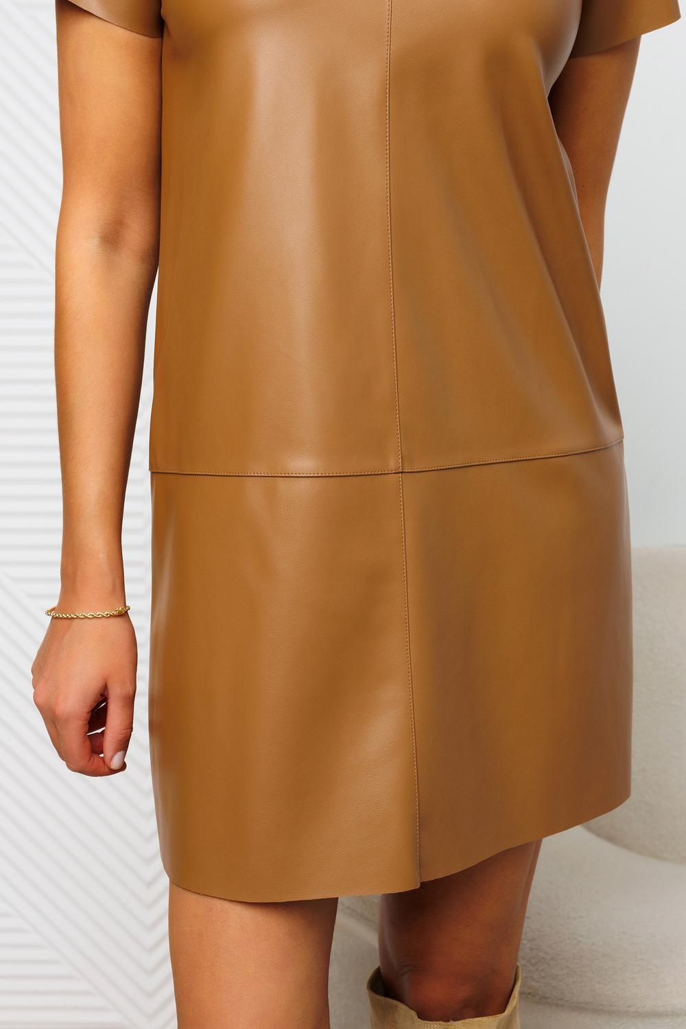 Необработанный срез рукавов и подола платье кэжуал – дизайнерское решение бренда. Экокожа не сыпется, не разбегается стрелками, поэтому Вы всегда можете подогнать платье по длине, мягкий срез материала не будет царапать кожу, колготки будут целы. Коктейльное платье свободного кроя легко комбинируется с различными аксессуарами и обувью. Не упустите возможность приобрести это осеннее кожаное офисное платье! Выбирайте маленькое черное платье или мокко олд мани на фотосессию для девушки или девочки подростка.
