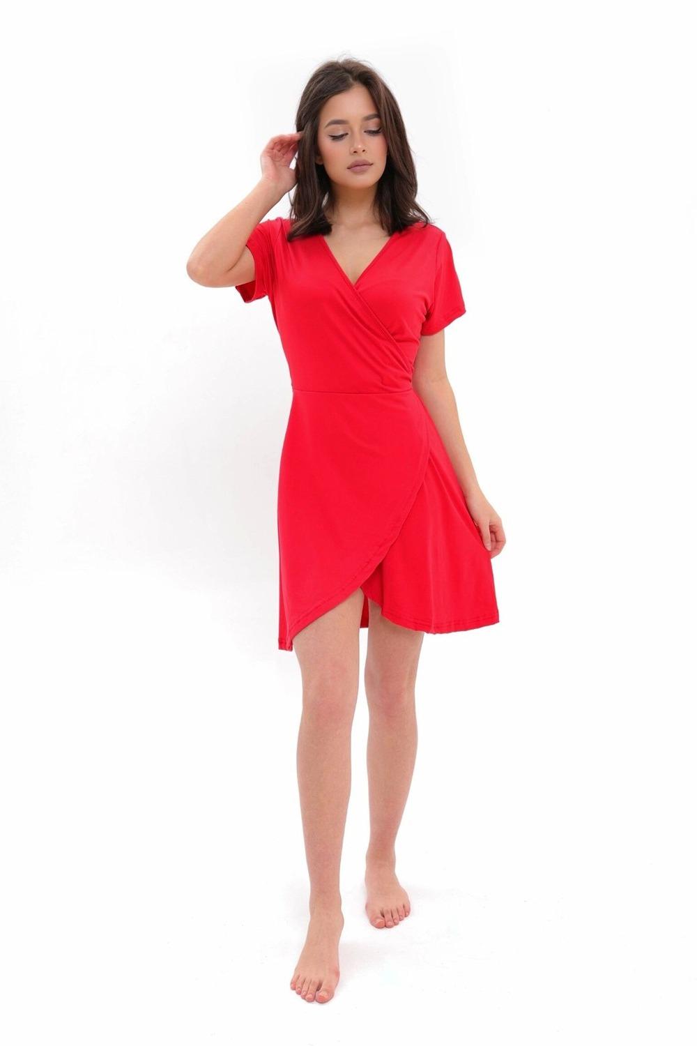 Стильное короткое платье из вискозы на запах - абсолютный хит продаж бренда CHEEZZY. В платье с облегающим верхом вы будете выглядеть сексуально и привлекательно. Не длинное платье с завязками и открытой линией шеи и удлиненной спиной можно использовать как повседневное платье. Подойдет на большие размеры для беременный и кормящих. Трикотаж более эластичен чем хлопок. Благодаря этому платье легко драпируется и мягко подчеркнет фигуру. Удобная и элегантная модель для отдыха. Струящаяся ткань позволяет коже дышать, не сковывает движений и не теряет форму после стирки. Наши изделия привлекают взгляд, делает образ эффектным. Вы с удовольствием будете заниматься домашними делами, чувствуя себя красивой.