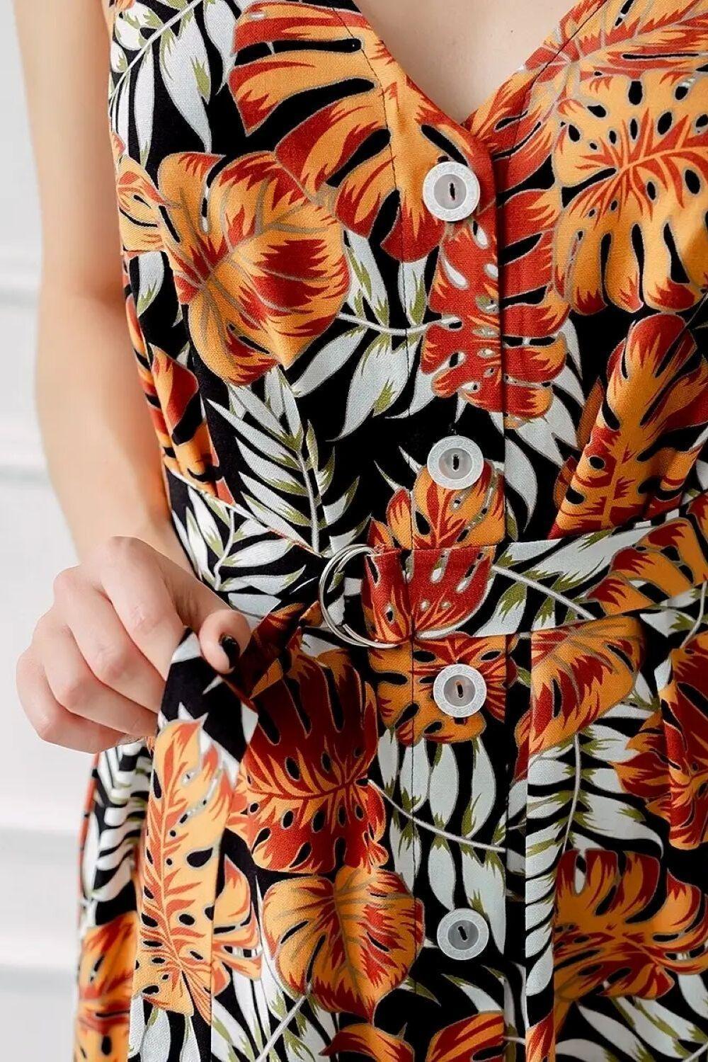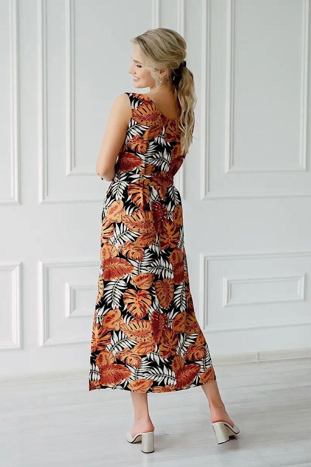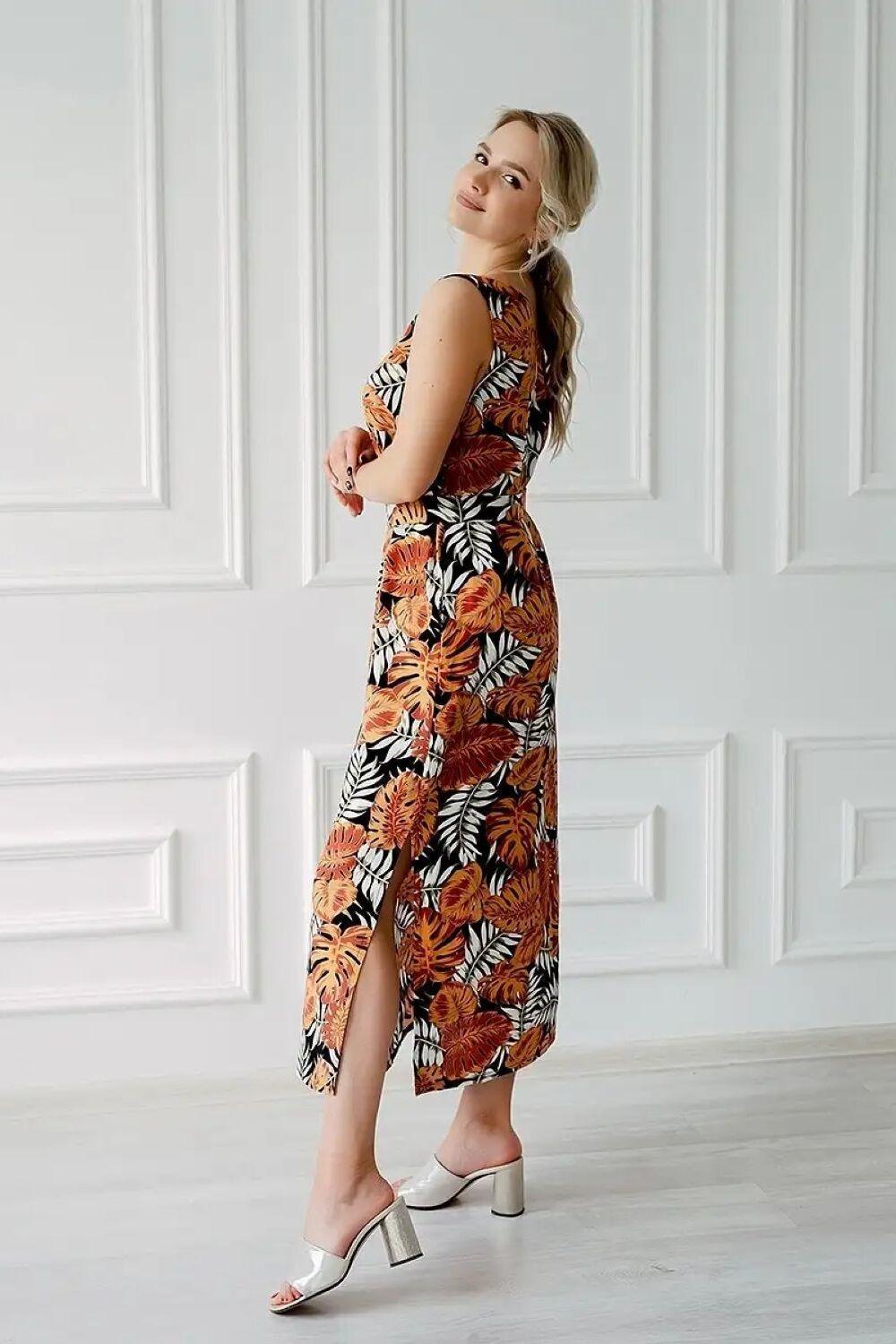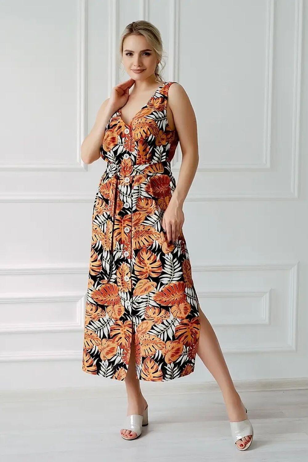 Женское платье полуприлегающего силуэта, длинною ниже колена, с эффектными высокими боковыми разрезами.Платье распашное, с застежкой на пуговицы. Платье выполнено из 100 % льна и поэтому легкое, и не просвечивает. Удобное, легкое платье на каждый день.