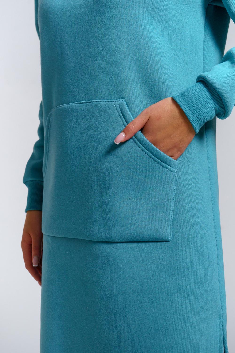 Платье женское утепленное с двойным капюшоном и накладным карманом. Манжеты выполнены из кашкорсе, в боковых швах по низу изделия разрезы.