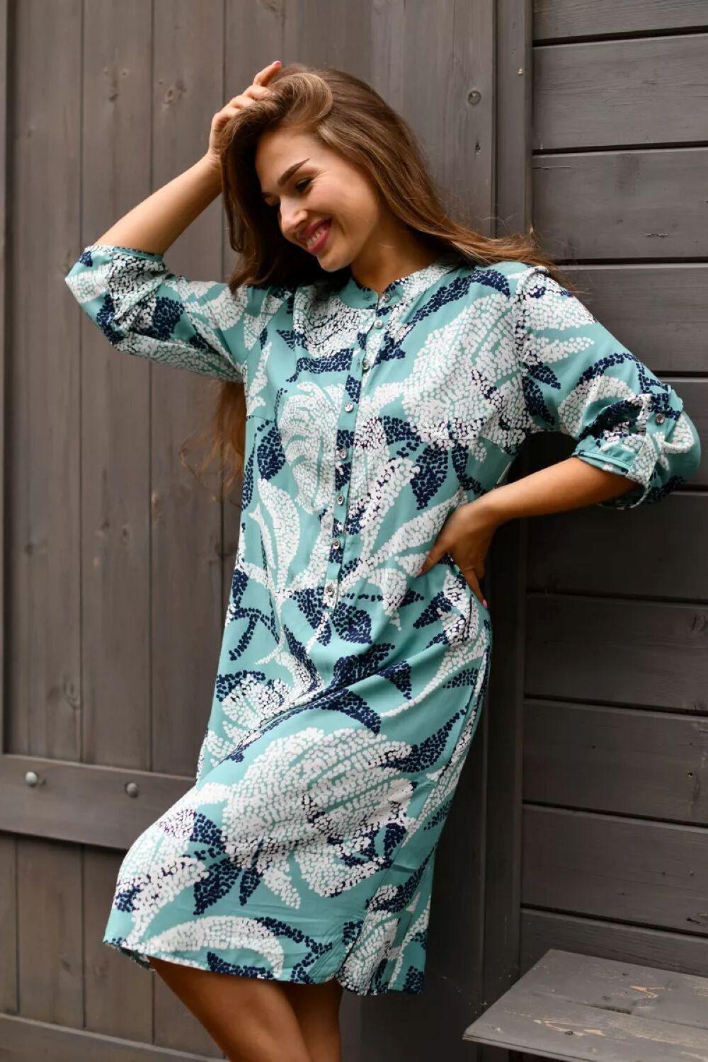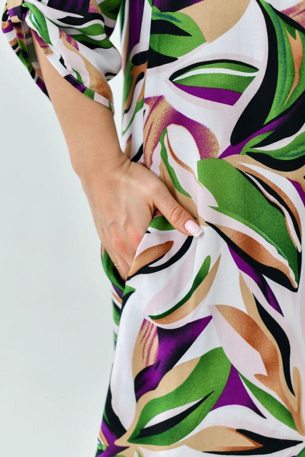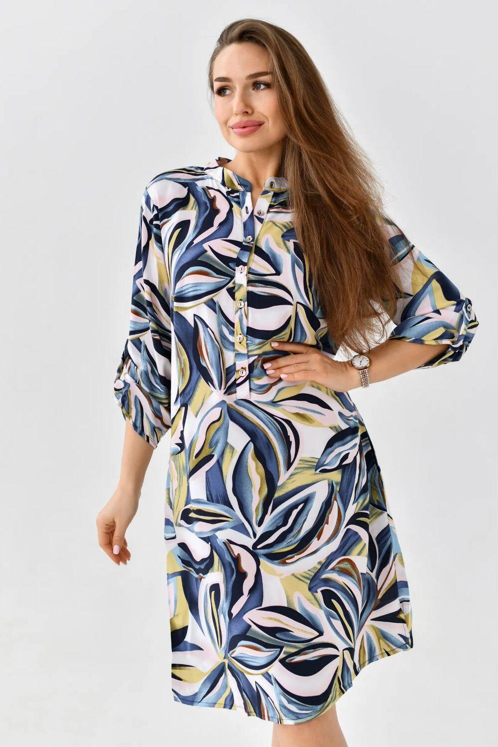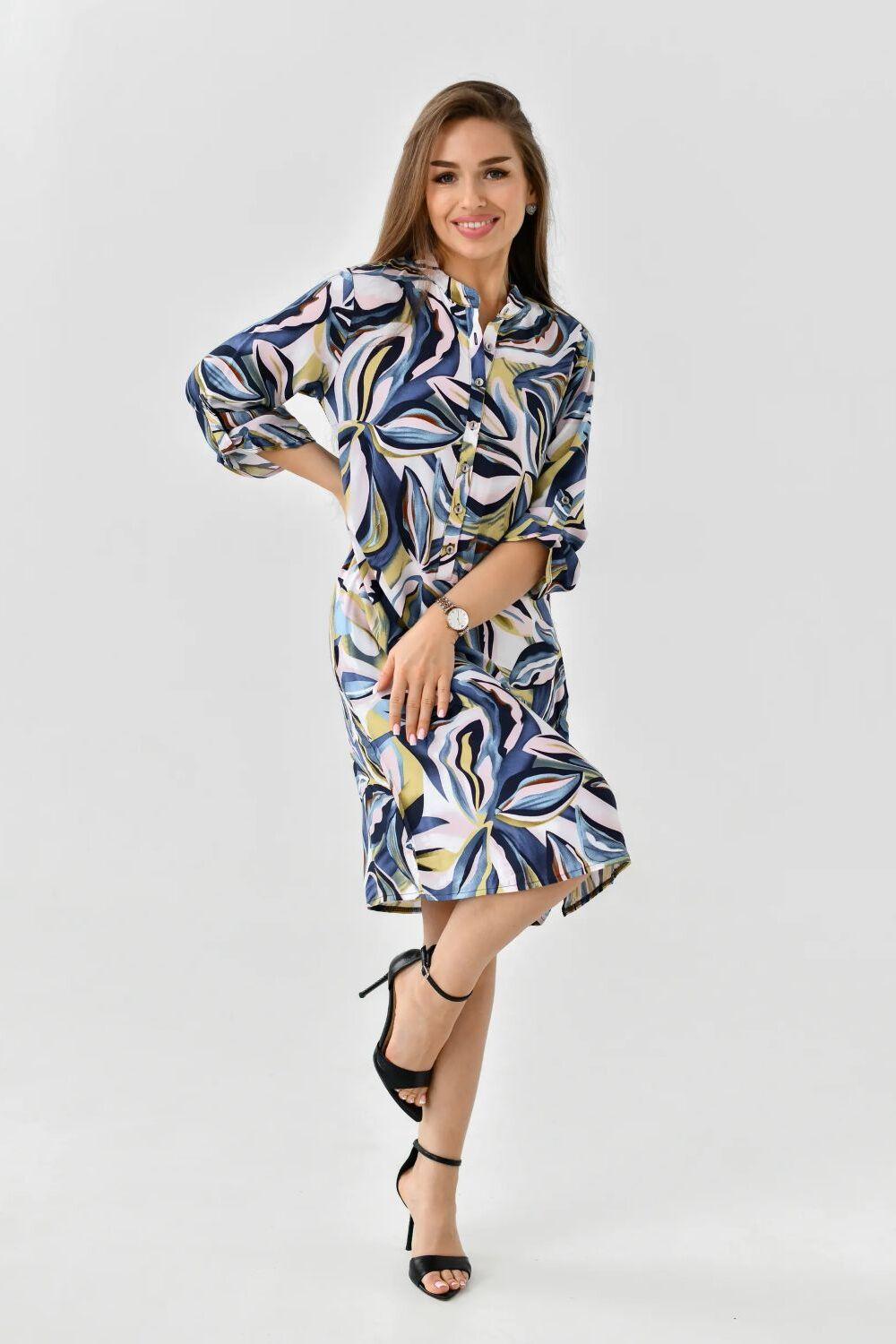 Летнее женское платье – туника от ивановского бренда Batistcorp (Батист). Платье Тропиканка прямого силуэта длинною чуть выше колена имеет снизу небольшие боковые разрезы для красоты и удобства. Оно невероятно универсальное и практичное. Идеально подходит для летней жары, а также для повседневной носки, встреч с подругами или, в некоторых случаях, даже для офиса. Горловина оформлена планкой с застёжкой на петли - пуговицы и стойкой. Рукава длинною 3/4 с регулировкой длины с помощью платы и петли-пуговицы. Вискозное платье-рубашка легкое и воздушное. Идеально подойдет на лето, в нем будет комфортно в жаркий летний день. Вискоза (штапель) – натуральная ткань растительного происхождения, приятная и мягкая на ощупь. Самое главное – это подобрать платье под свой стиль и фигуру. Молодежное модное платье миди (длина чуть выше колена) свободного кроя с укороченными рукавами длиной до середины предплечья подойдет для женщин разного возраста и размера. Скроет недостатки и подчеркнет достоинства. В глубокие карманы на боковых швах можно легко положить маленькие ценные вещи - телефон, ключи или помаду. Представлен широкий размерный ряд. Теплые светлые цвета, нежный цветочный принт, яркий дизайн – замечательный подарок для друзей и родных. Необычное платье рубашка в пляжном стиле. Подойдет как для юной девочки, так и для женщины в элегантном возрасте. Подарите маме, сестре, дочке - подростку, подруге, племяннице. Отлично сядет на худых, на полных дам, а также на беременных. Прекрасное поздравление с окончанием учебного года, с достижением важной цели, с днем рождения или даже без повода. Путешествуйте и проводите время дома, отдыхайте на даче или занимайтесь любимым хобби в городе, наше платье – универсальная одежда, которая подойдет для большинства случаев.