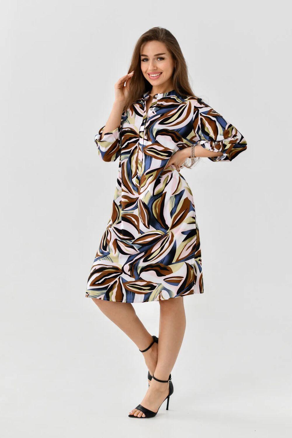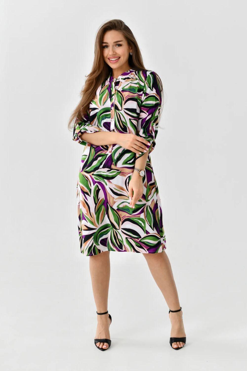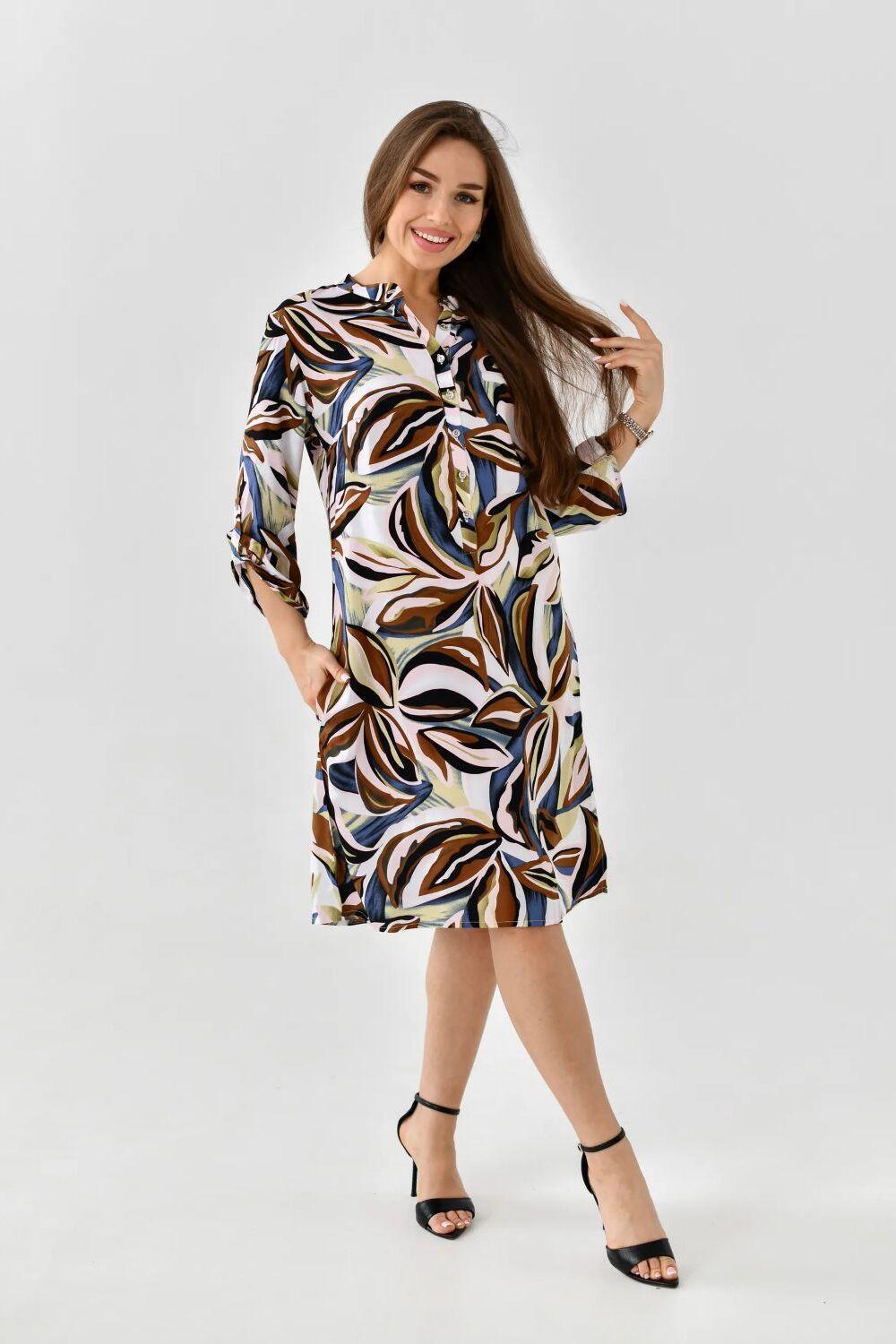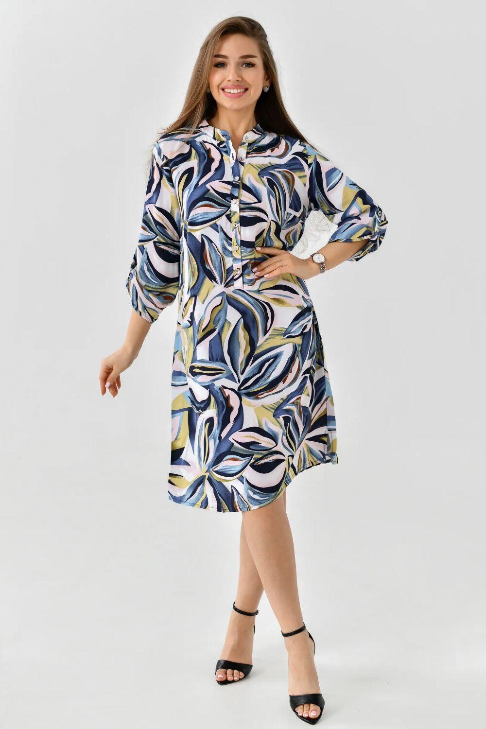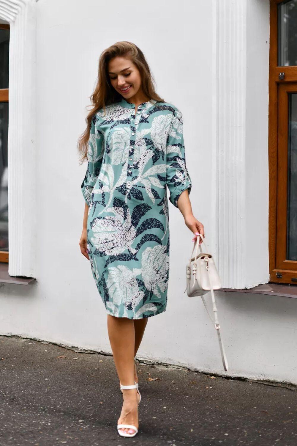 Летнее женское платье – туника от ивановского бренда Batistcorp (Батист). Платье Тропиканка прямого силуэта длинною чуть выше колена имеет снизу небольшие боковые разрезы для красоты и удобства. Оно невероятно универсальное и практичное. Идеально подходит для летней жары, а также для повседневной носки, встреч с подругами или, в некоторых случаях, даже для офиса. Горловина оформлена планкой с застёжкой на петли - пуговицы и стойкой. Рукава длинною 3/4 с регулировкой длины с помощью платы и петли-пуговицы. Вискозное платье-рубашка легкое и воздушное. Идеально подойдет на лето, в нем будет комфортно в жаркий летний день. Вискоза (штапель) – натуральная ткань растительного происхождения, приятная и мягкая на ощупь. Самое главное – это подобрать платье под свой стиль и фигуру. Молодежное модное платье миди (длина чуть выше колена) свободного кроя с укороченными рукавами длиной до середины предплечья подойдет для женщин разного возраста и размера. Скроет недостатки и подчеркнет достоинства. В глубокие карманы на боковых швах можно легко положить маленькие ценные вещи - телефон, ключи или помаду. Представлен широкий размерный ряд. Теплые светлые цвета, нежный цветочный принт, яркий дизайн – замечательный подарок для друзей и родных. Необычное платье рубашка в пляжном стиле. Подойдет как для юной девочки, так и для женщины в элегантном возрасте. Подарите маме, сестре, дочке - подростку, подруге, племяннице. Отлично сядет на худых, на полных дам, а также на беременных. Прекрасное поздравление с окончанием учебного года, с достижением важной цели, с днем рождения или даже без повода. Путешествуйте и проводите время дома, отдыхайте на даче или занимайтесь любимым хобби в городе, наше платье – универсальная одежда, которая подойдет для большинства случаев.