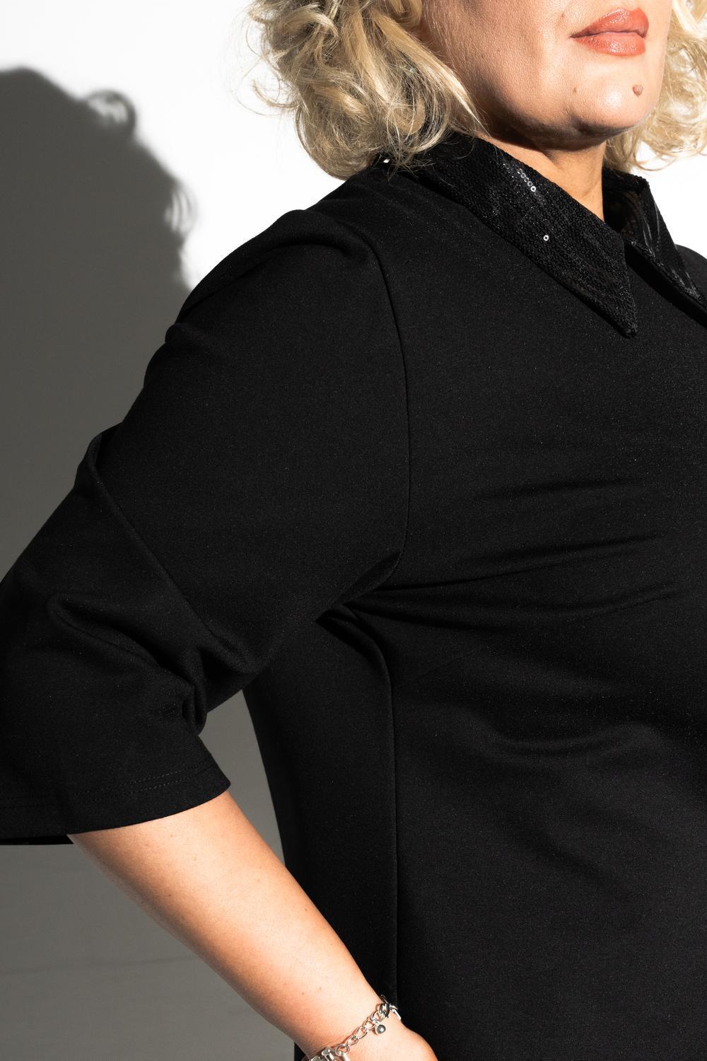 Это платье – не просто одежда, это заявление о вашем безупречном вкусе и чувстве стиля. Воротник, расшитый мерцающими пайетками, ловит каждый луч света, создавая завораживающий эффект и приковывая взгляды окружающих. Он словно рамка для вашего лица, подчеркивающая его красоту и выразительность.