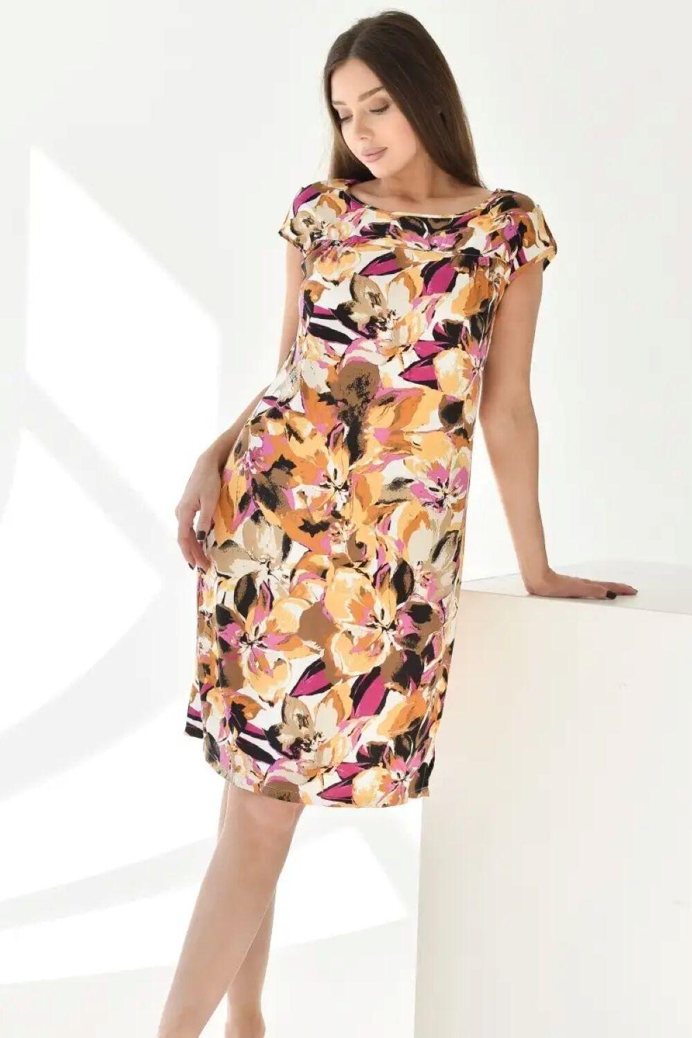 Легкое стильное летнее женское платье в цветочек «Триумф» из вискозы от российского текстильного бренда Batistcorp Ivanovo (Батист) станет идеальным выбором для жаркого летнего дня. Прямое воздушное платье длиной до колена и коротким рукавом обеспечит комфорт и свободу движений. Округлый вырез горловины, на плече расположены декоративные паты с застёжкой петли - пуговицы. За счет полуприлегающего покроя платье красиво смотрится на любом типе фигуры. В нём вы будете чувствовать себя комфортно и уверенно в любой ситуации. Размерный ряд этого платья представлен в широком спектре, что позволяет каждой женщине найти подходящий размер и насладиться стильным образом на лето. Это летнее платье сарафан от маленьких до больших размеров подходит как для полных женщин, так и для тех, кто ценит свободную и удобную одежду. Крой модели делает её универсальной для разных ситуаций: она подойдёт и для повседневного домашнего использования, и для выхода в свет. Модный принт с цветами придаст образу нежность и неповторимый шарм. Эта модель прекрасно подойдёт как высоким, так и невысоким девушкам. Покупая красивые вещи, вы создаете хорошее настроение и радуете себя и близких. Пусть ваш гардероб всегда будет наполнен стильными и удобными вещами на любой сезон!