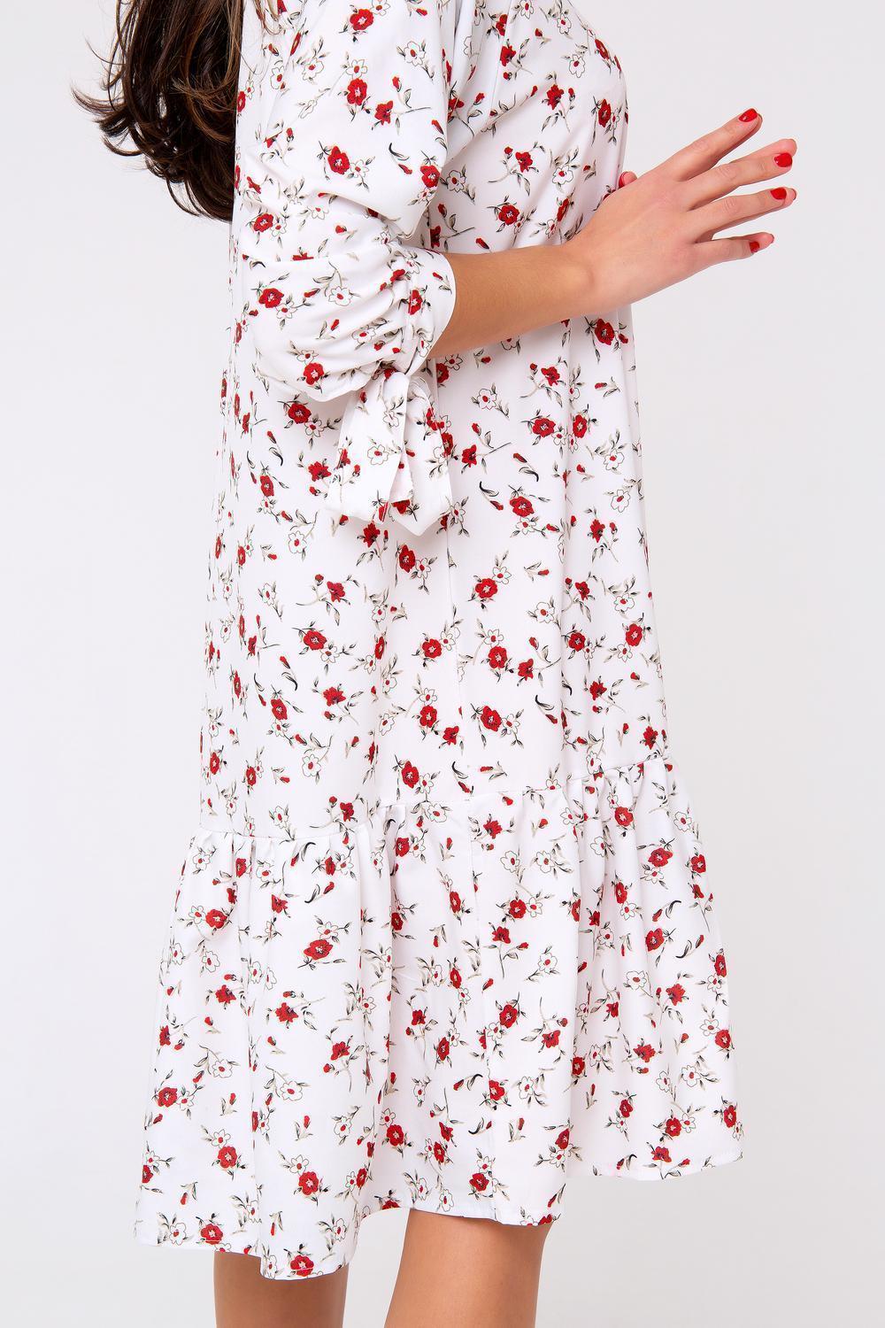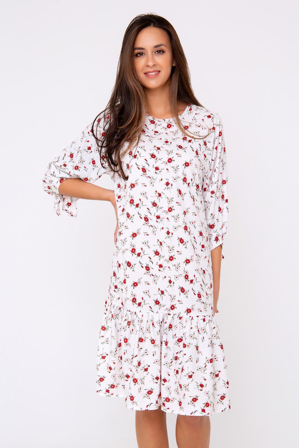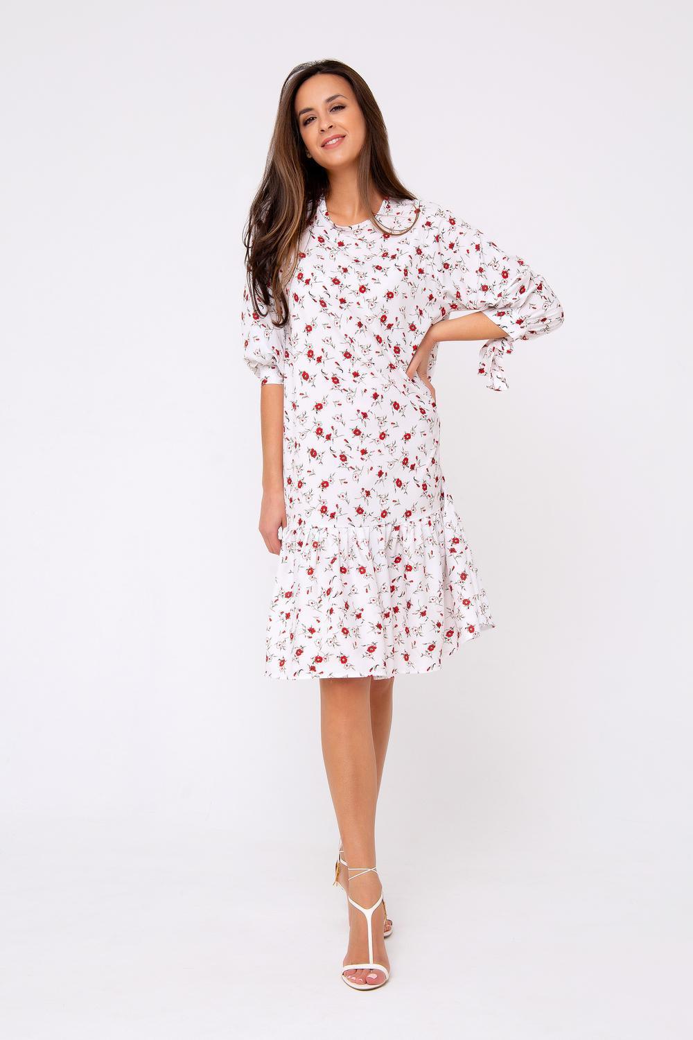 Платье-миди свободного кроя выполнено в нежнейшем молочно-белом цвете. Женственность модели подчеркивает оригинальный принт в стиле «petit fleur» по всей длине изделия. Свободный крой подчеркнет только достоинства фигуры и добавит легкости и игривости всему образу в целом. Рукав - реглан. Горловина округлая. Модель дополнена воланом по краю изделия. Приобретите легкость, комфорт и свободу на каждый день, ведь эта вещь полюбится Вами с первого прикосновения. Все товары бренда Raposa производятся в России, используются ткани только премиального качества. Ограниченная коллекция только для этой весны!
