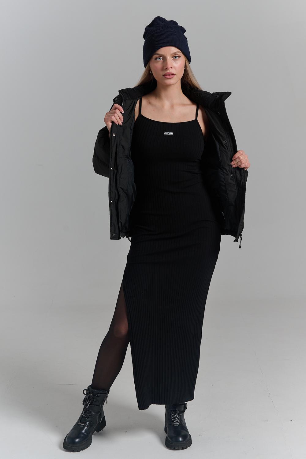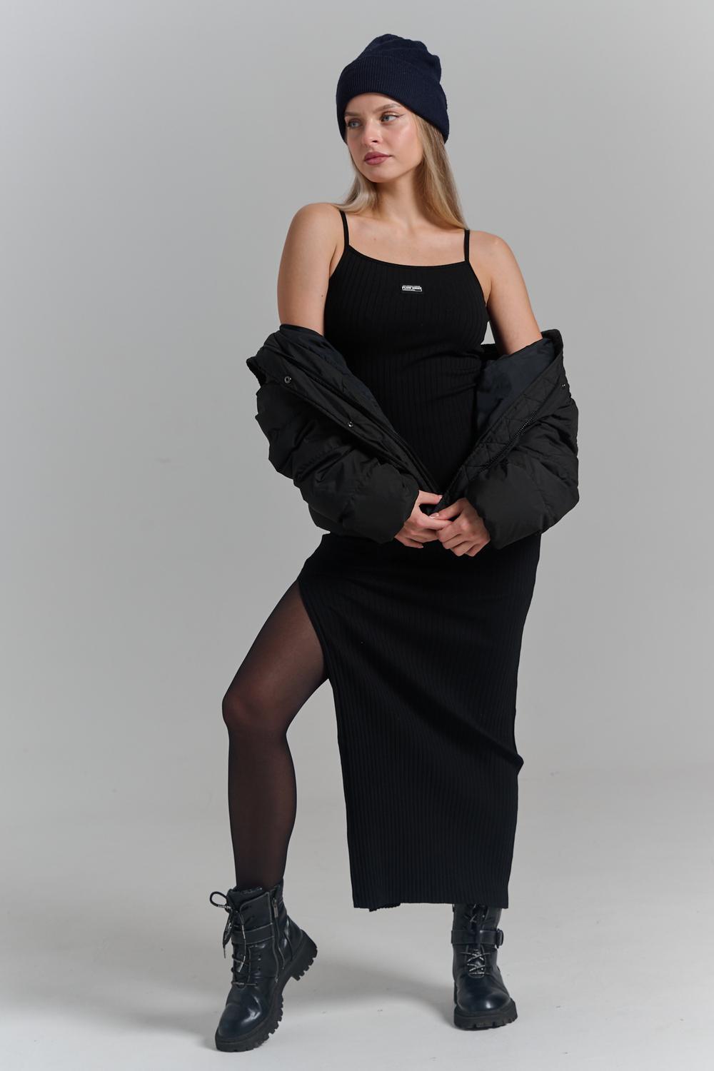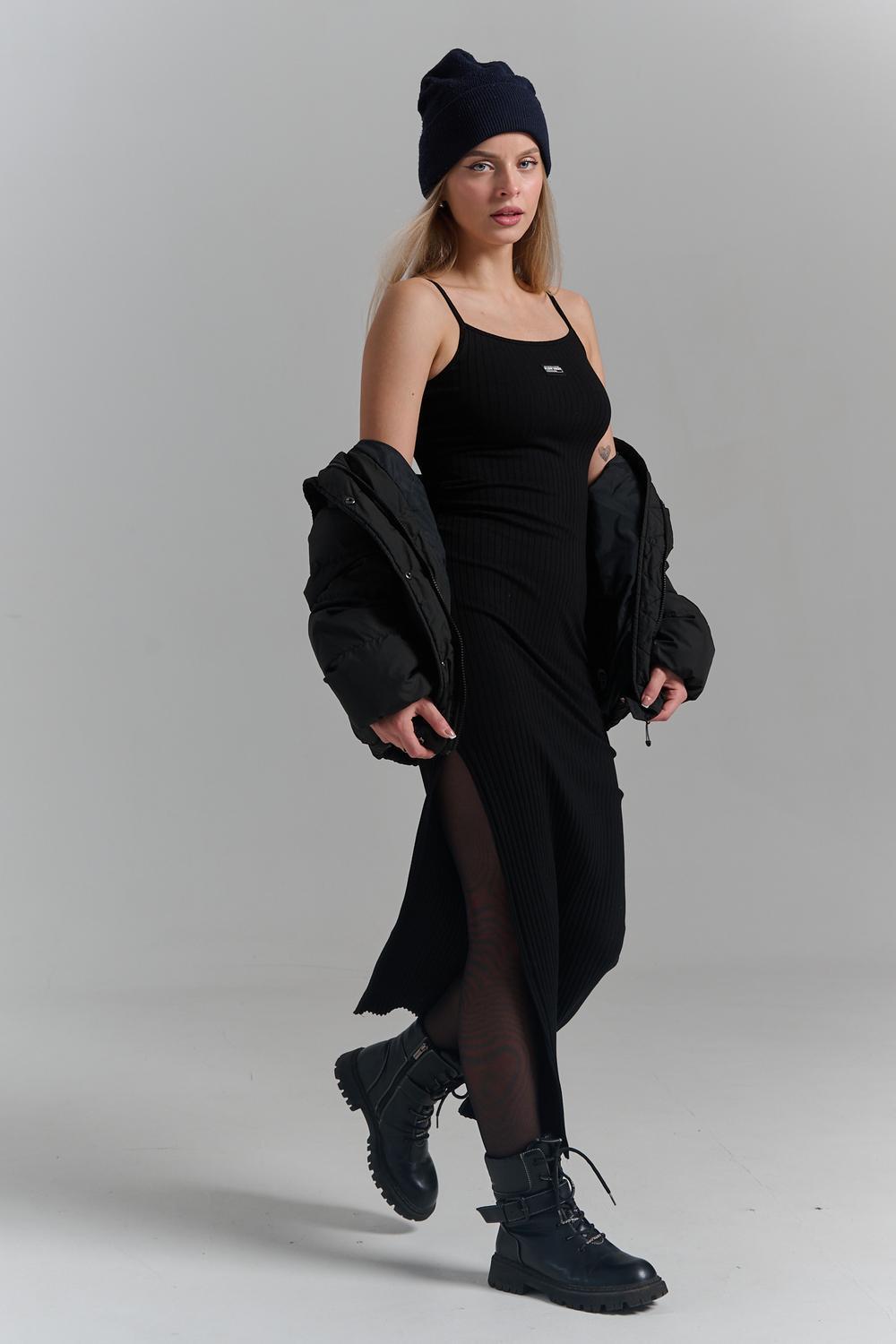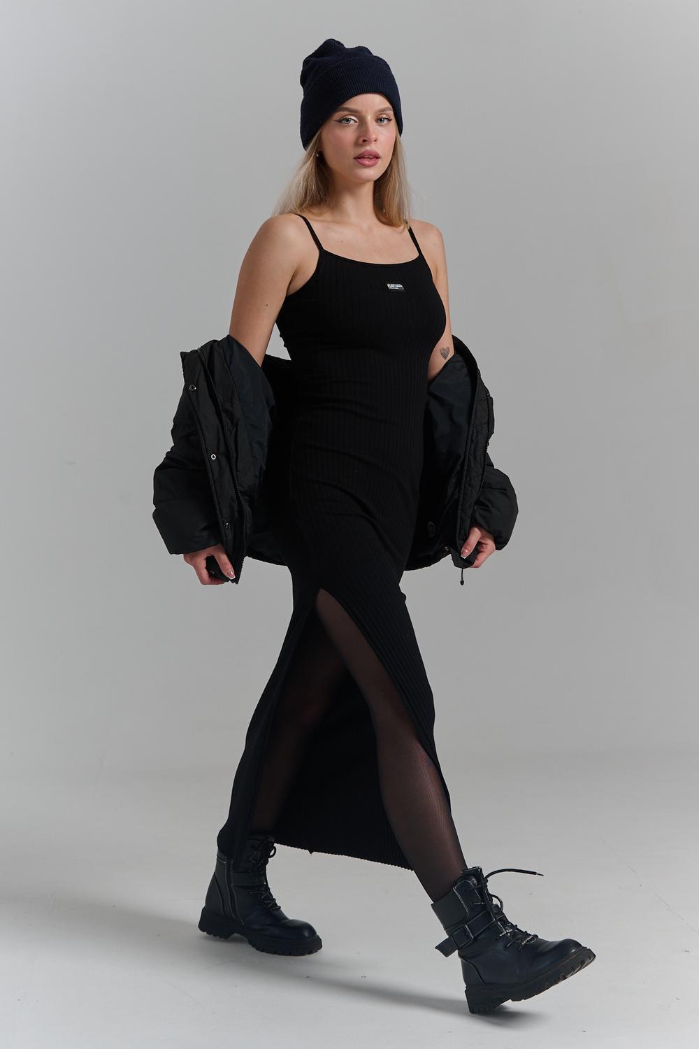 Длинное спортивное платье приталенного силуэта на тонких брительках.Мягкая ткань в рубчик обеспечивает комфорт.Идиальный вариант на каждый день или в отпуск,на море или путешествий и отдыха.Длинное сексуальное платье с разрезом идеально сочетается с любой спортивной обувью будь,то кросовки,кеды,сандали.