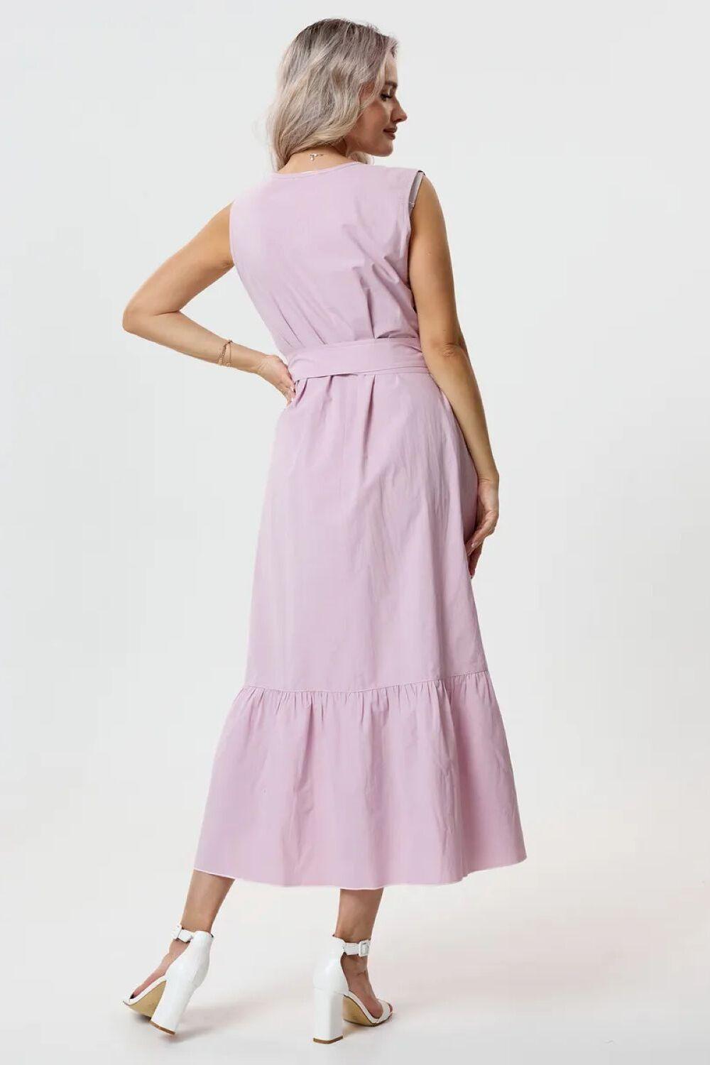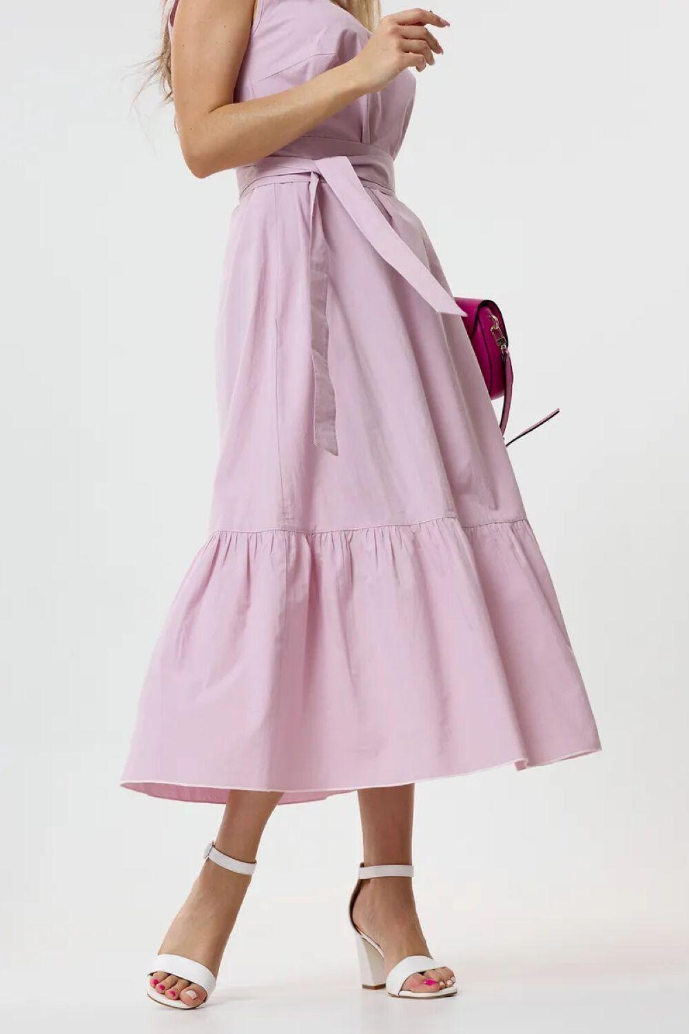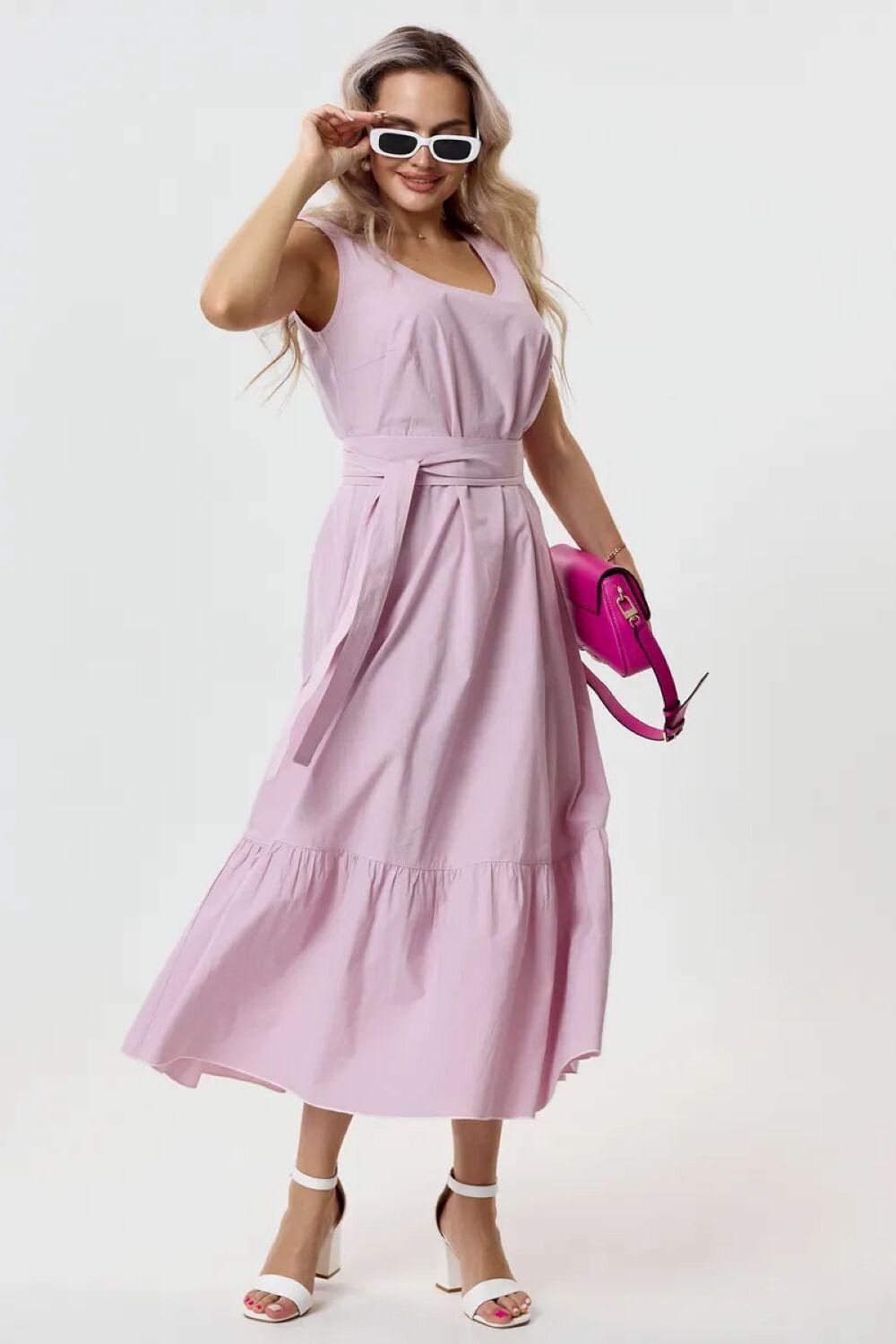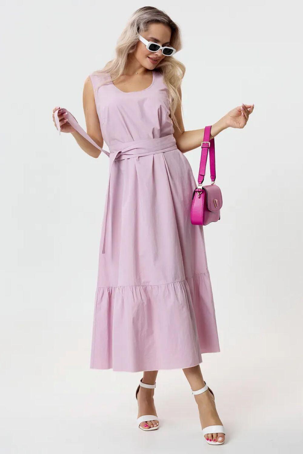 Сарафан выполнен из 100 % хлопка и поэтому легкий, но не просвечивает. Удобный, на каждый день, полуприлегающего силуэта, длинною ниже колена. Талия подчеркнута декоративным поясом, который идет в комплекте.