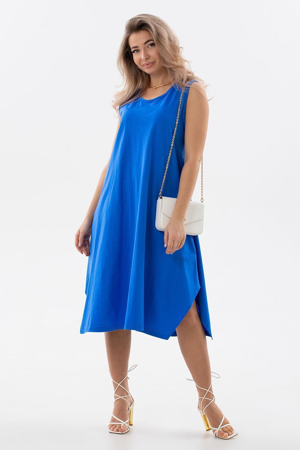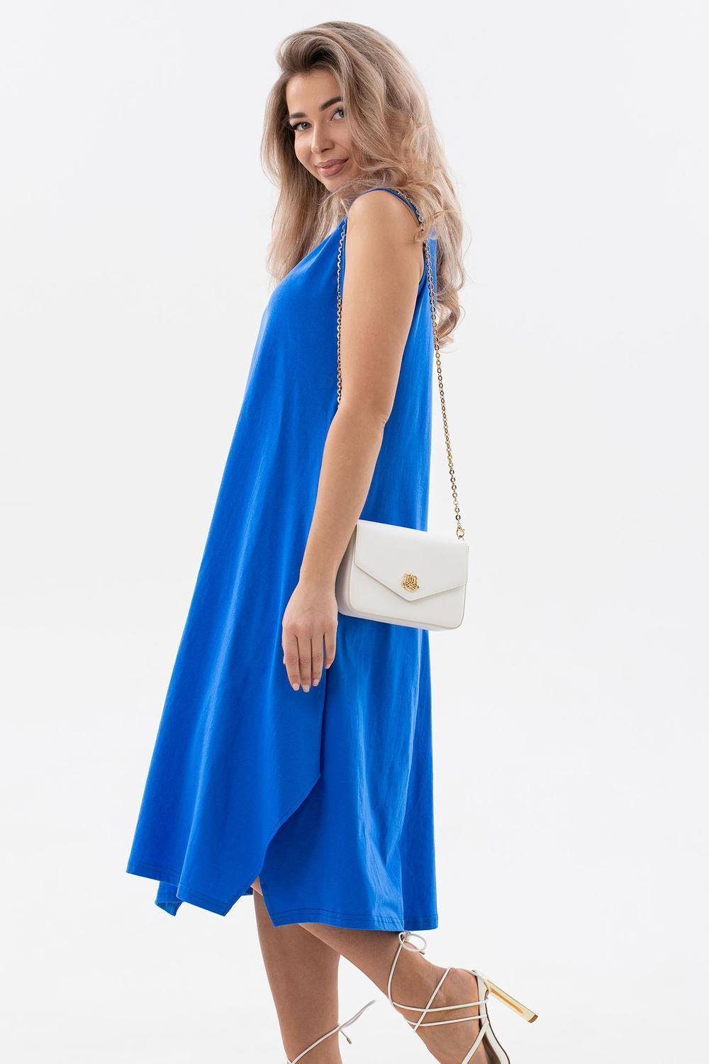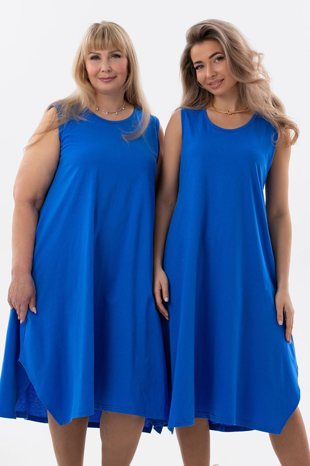 выполнен из трикотажного полотна -100% хлопка , комфортный и мягкий на ощупь, размерная сетка включает в себя большие размеры. Подол сарафана украшен ассиметричными вырезами. Удобный удлиненный хлопковый сарафан подойдет и как летний на прогулку или на пляж и как домашнее нарядное платье. Проверенный крой, свободный и не облегающий фигуру, не ограничивает движений, что немаловажно для беременных или полных женщин. А - силуэт с ассиметричной длиной миди, по колено интересно смотрится. Высокая посадка не акцентирует линию талии, расклешенный фасон сбалансирует фигуру с широкими плечами, скроет лишние сантиметры в бедрах. Женский сарафан - отличный подарок для девушек и женщин ! Мы отшиваем одежду на собственном производстве и гарантируем отличное качество и доступность цен. Сарафан летний нарядный домашний подчеркнет вашу индивидуальность и подарит комфорт и уверенность.