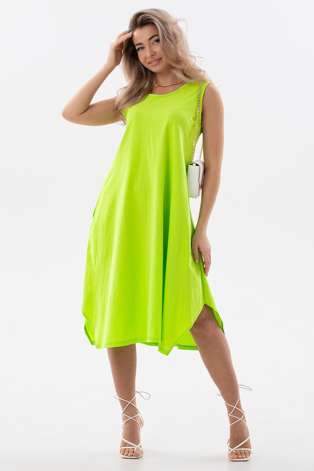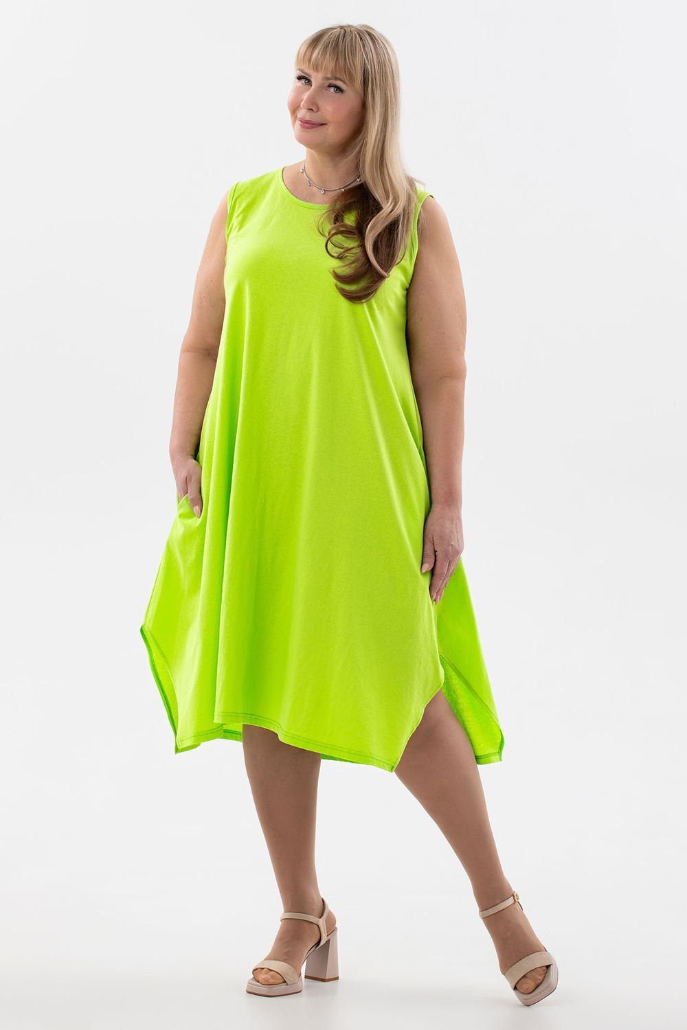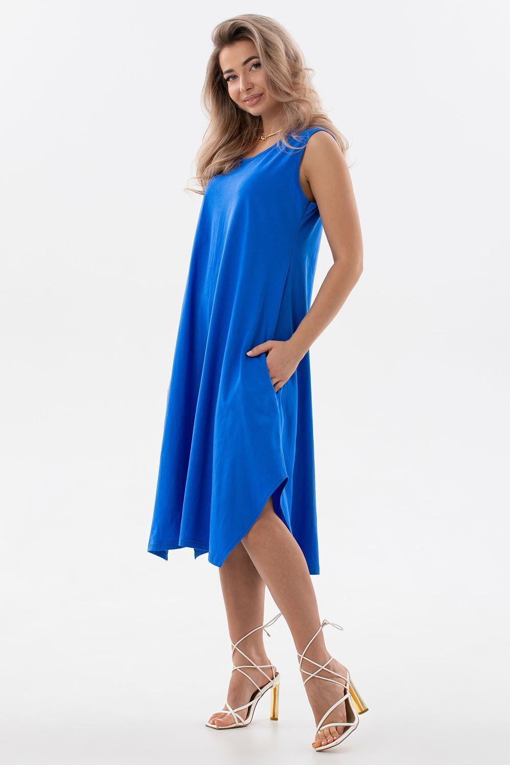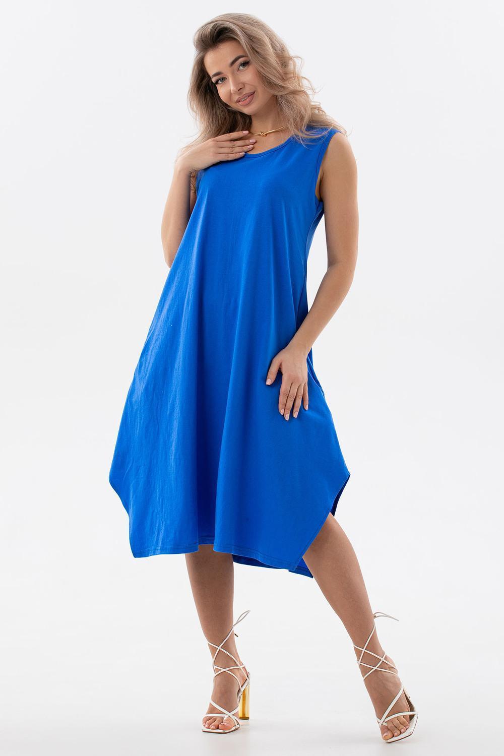 выполнен из трикотажного полотна -100% хлопка , комфортный и мягкий на ощупь, размерная сетка включает в себя большие размеры. Подол сарафана украшен ассиметричными вырезами. Удобный удлиненный хлопковый сарафан подойдет и как летний на прогулку или на пляж и как домашнее нарядное платье. Проверенный крой, свободный и не облегающий фигуру, не ограничивает движений, что немаловажно для беременных или полных женщин. А - силуэт с ассиметричной длиной миди, по колено интересно смотрится. Высокая посадка не акцентирует линию талии, расклешенный фасон сбалансирует фигуру с широкими плечами, скроет лишние сантиметры в бедрах. Женский сарафан - отличный подарок для девушек и женщин ! Мы отшиваем одежду на собственном производстве и гарантируем отличное качество и доступность цен. Сарафан летний нарядный домашний подчеркнет вашу индивидуальность и подарит комфорт и уверенность.