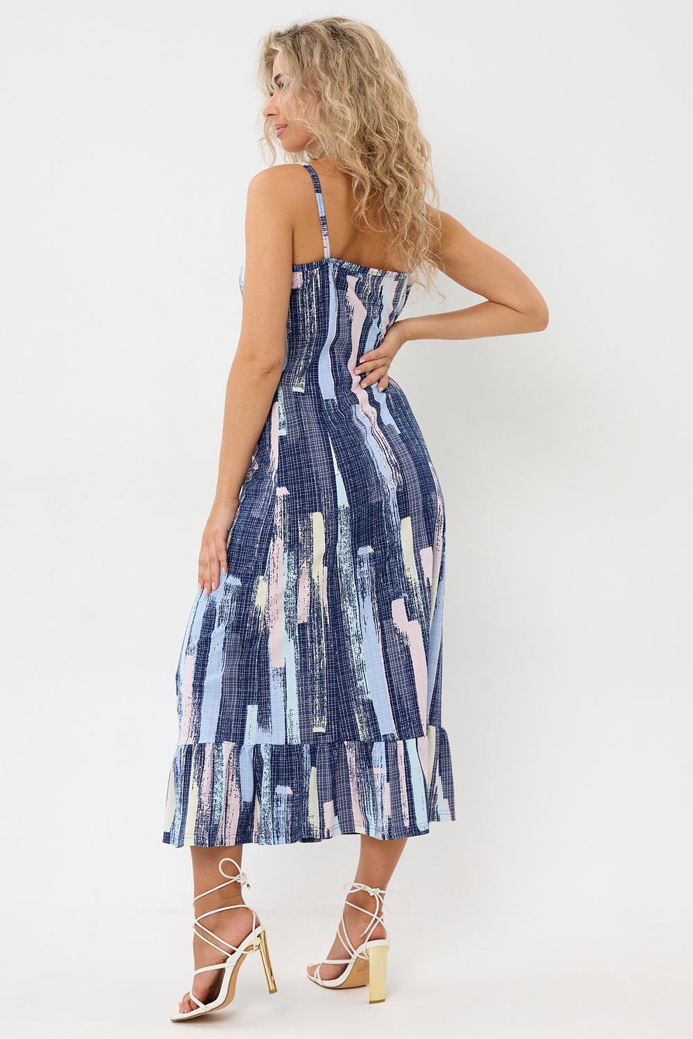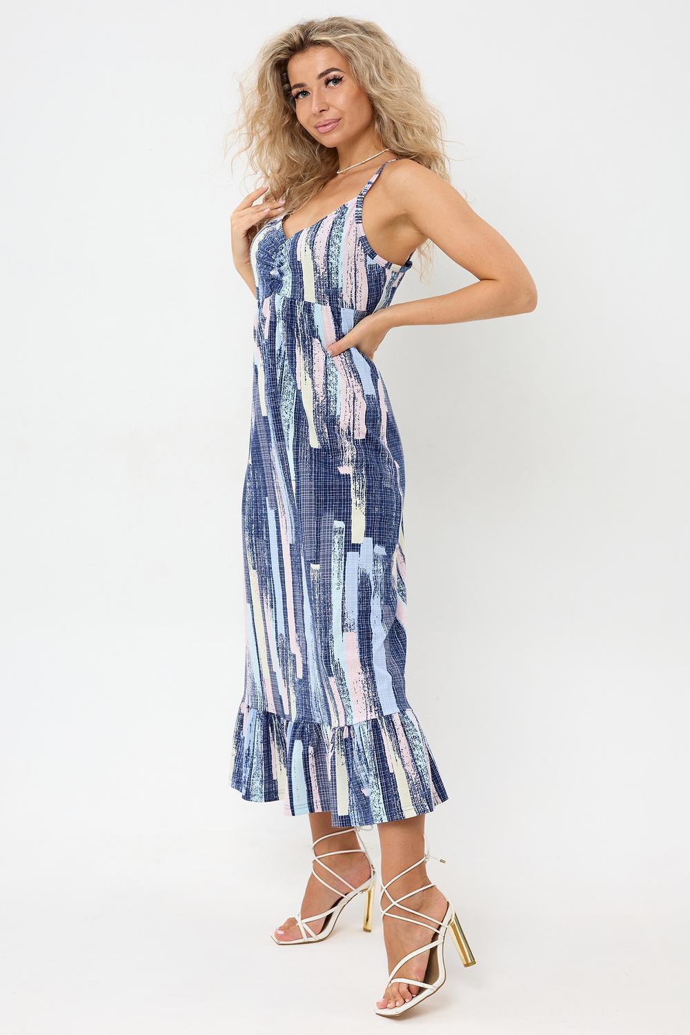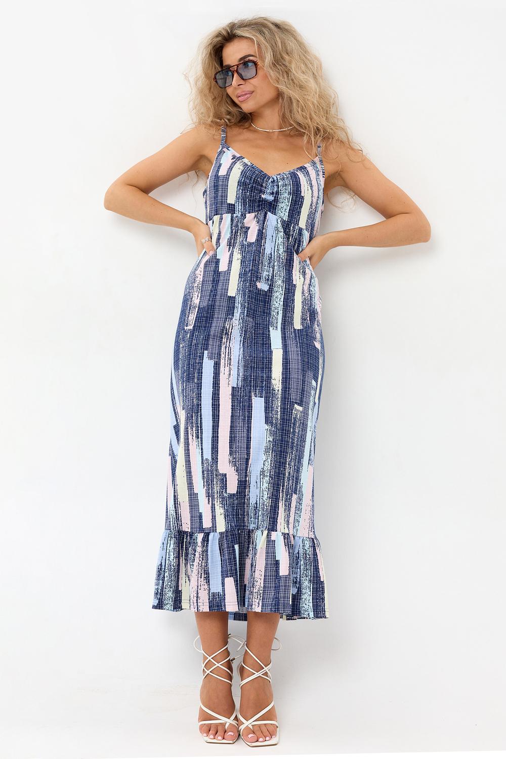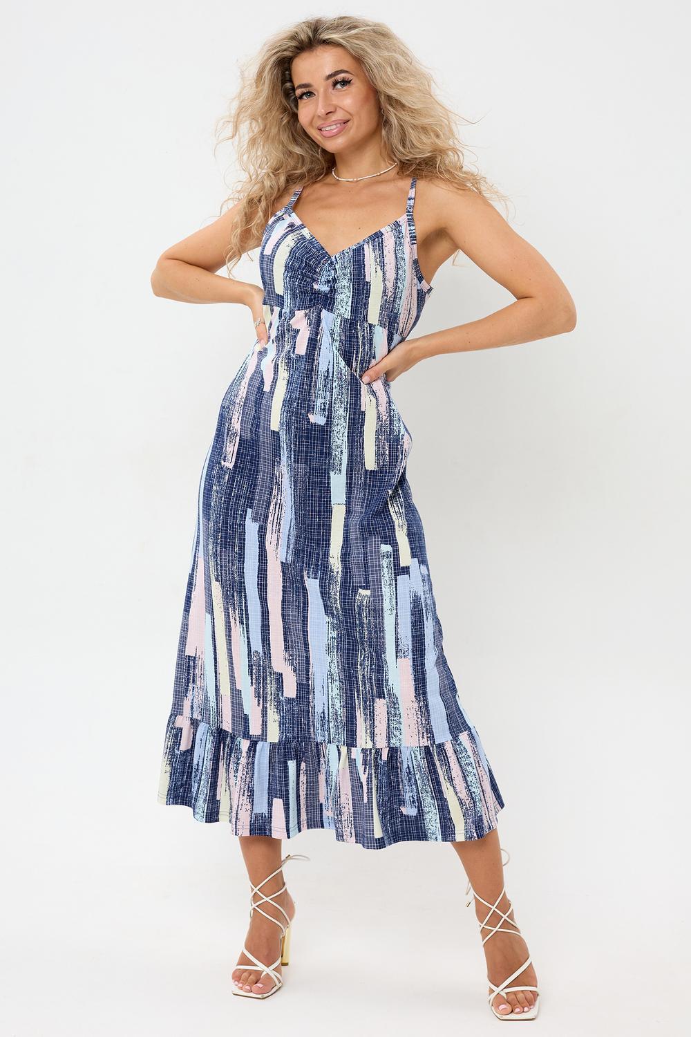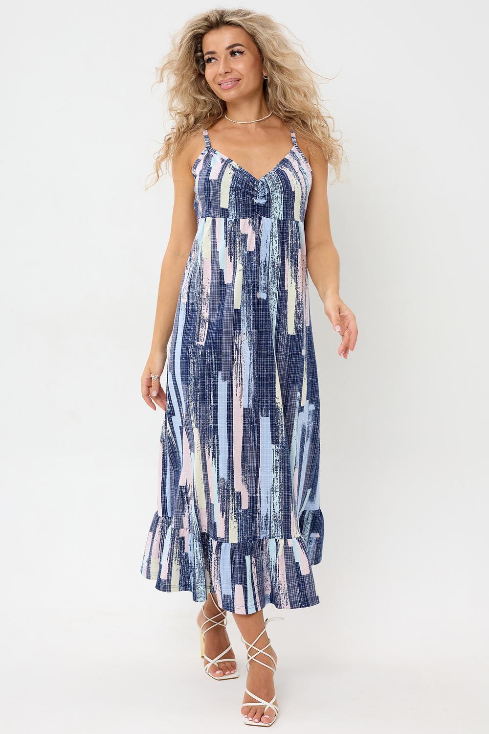 Рисунок абстракции на сарафане добавляет ему элегантности и универсальности, позволяя его сочетать с различными аксессуарами и обувью. Этот сарафан – отличный выбор для тех, кто ценит комфорт, стиль и качество.