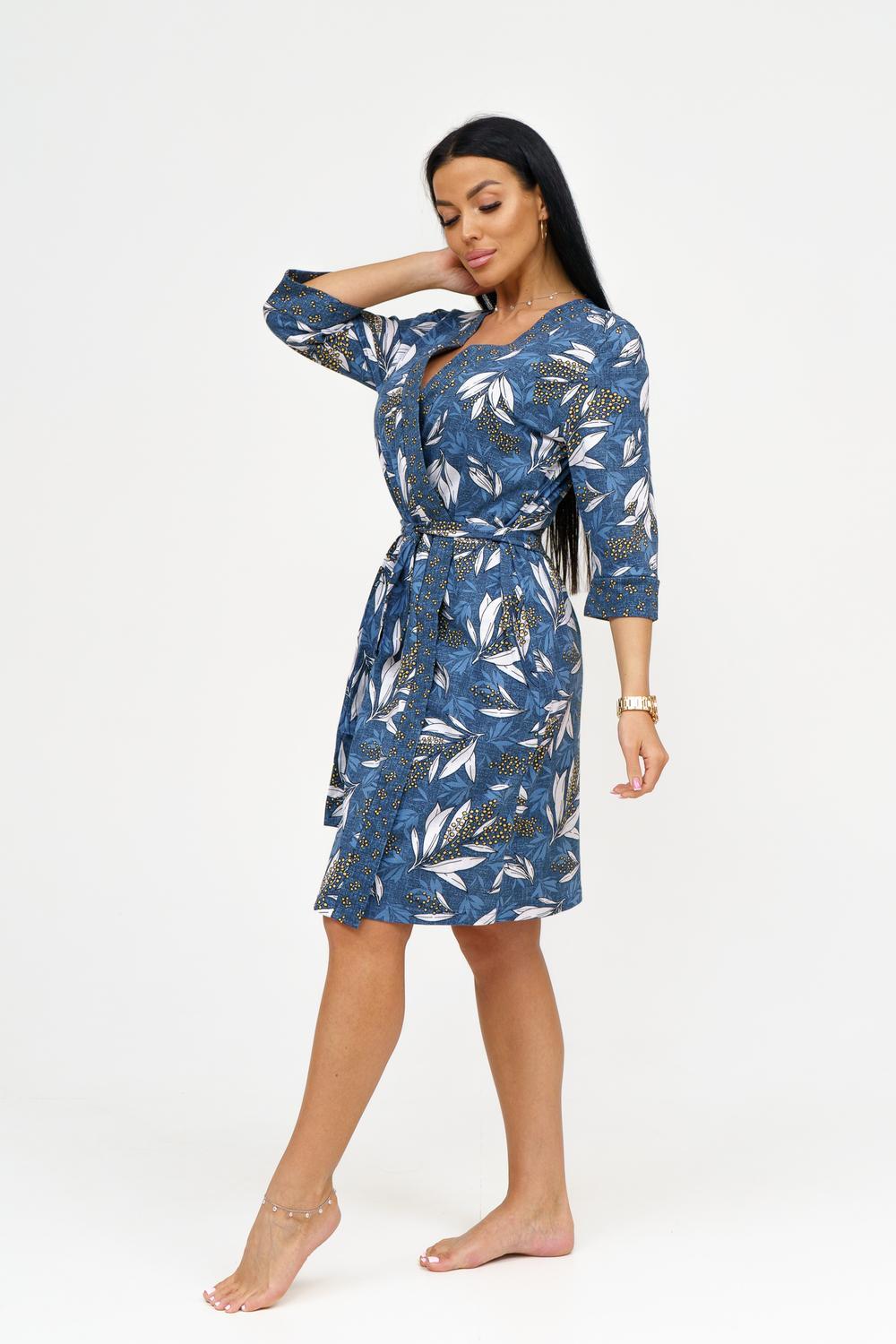 Представляем вашему вниманию изысканный комплект из сорочки и пеньюара, который станет идеальным дополнением к гардеробу каждой женщины. Выполненный из 100% хлопка, этот комплект обеспечивает комфорт и стиль, позволяя чувствовать себя уверенно и привлекательно. Основные характеристики: Сорочка на тонких бретелях: Элегантная сорочка с отрезными чашками обеспечивает идеальную посадку и поддержку. Удобные тонкие бретели придают образу легкость и изящество. Декор в виде бантика: Вырез сорочки украшен нежным бантиком, добавляющим романтичности и игривости в образ. Это делает сорочку не только удобной, но и привлекательной. Запашной пеньюар: Пеньюар с втачным рукавом длиной ¾ на манжете обеспечивает удобство и свободу движений. Он идеально дополняет сорочку, создавая гармоничный и стильный комплект. Подчеркнутая линия талии: Пояс на пеньюаре акцентирует внимание на линии талии, придавая силуэту женственность и элегантность. Качественный материал: Изготовленный из кулирки, 100% хлопка, комплект обеспечивает отличную воздухопроницаемость и комфорт при носке, идеально подходя для домашнего использования. Широкий размерный ряд: Доступен в размерах 46-56, что позволяет каждой женщине найти идеальный вариант для себя. Этот комплект из сорочки и пеньюара станет отличным дополнением к вашему ассортименту и привлечет внимание клиентов, ищущих стильную и комфортную домашнюю одежду. Заказывайте оптом и предложите своим покупателям уникальный вариант для уютных вечеров и романтических моментов!