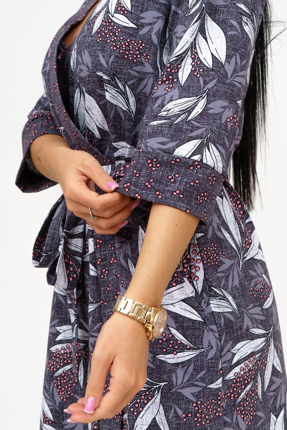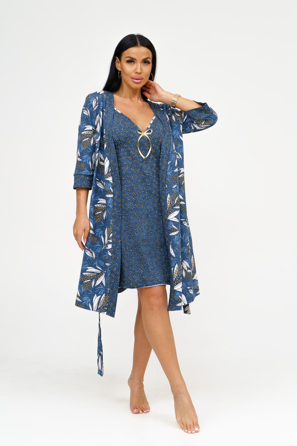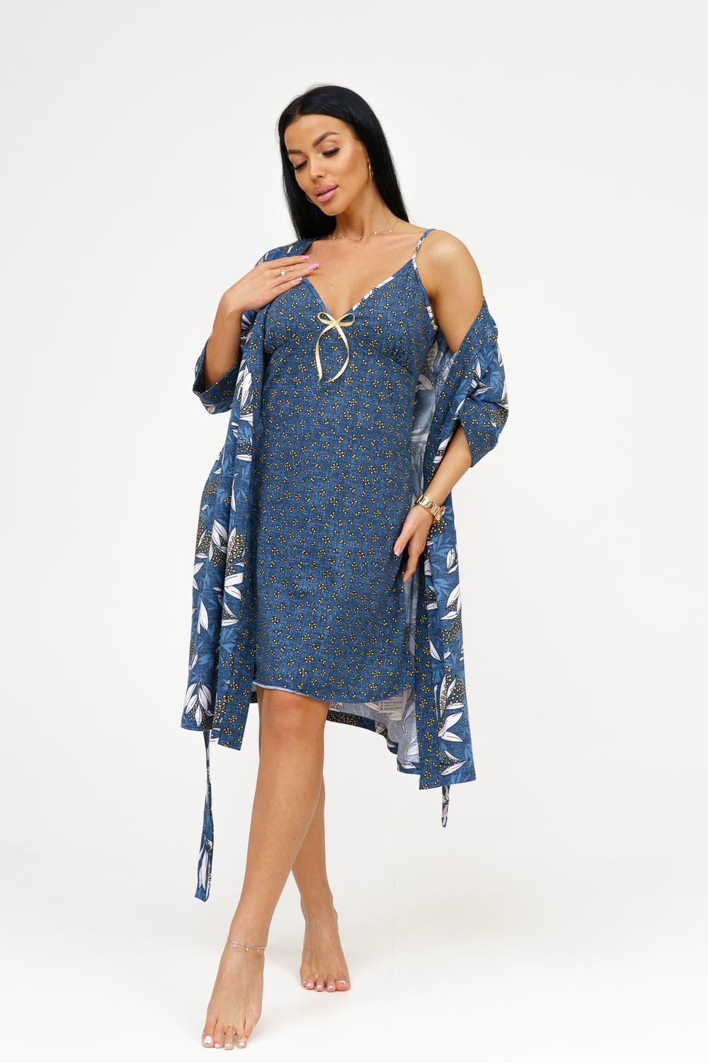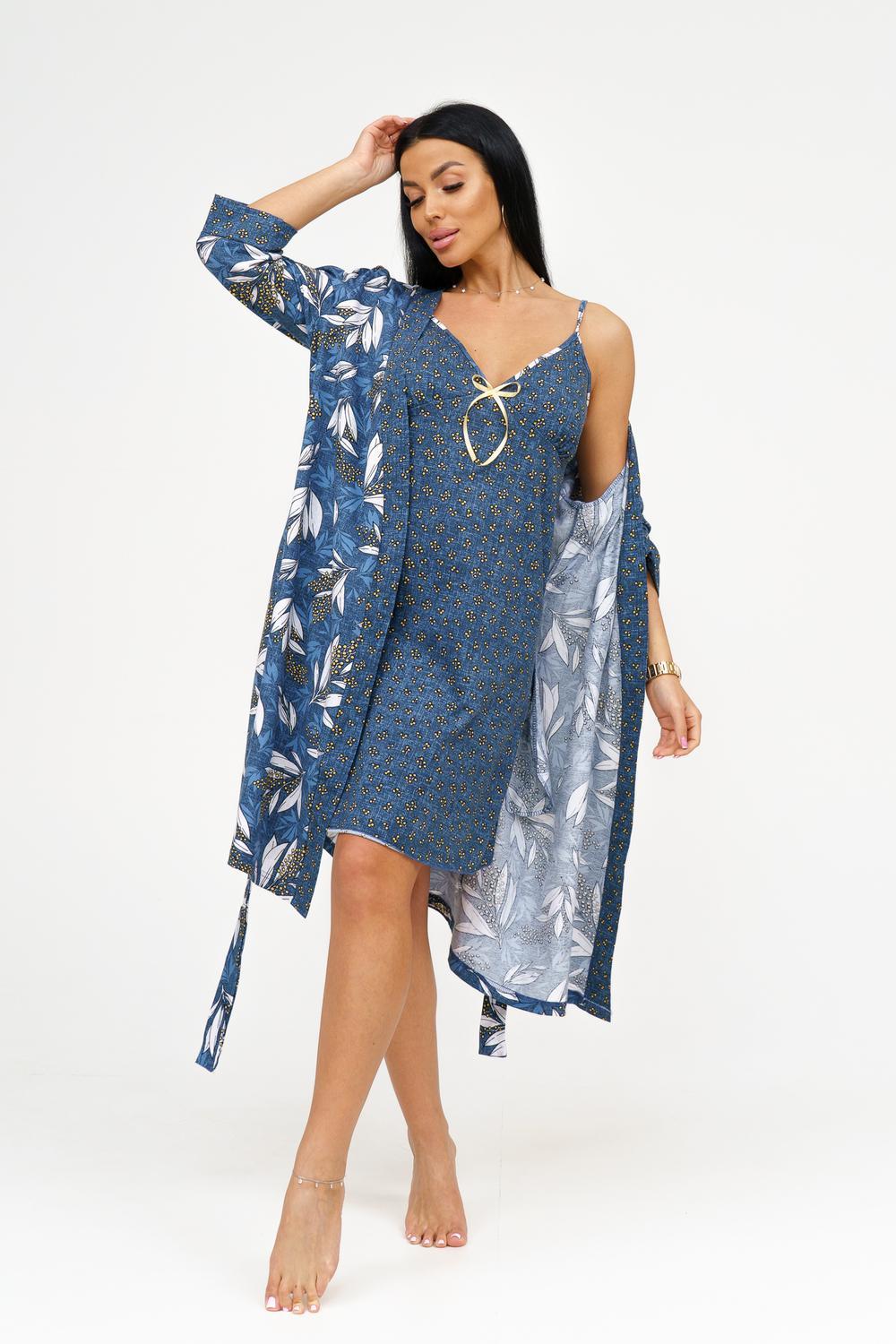 Представляем вашему вниманию изысканный комплект из сорочки и пеньюара, который станет идеальным дополнением к гардеробу каждой женщины. Выполненный из 100% хлопка, этот комплект обеспечивает комфорт и стиль, позволяя чувствовать себя уверенно и привлекательно. Основные характеристики: Сорочка на тонких бретелях: Элегантная сорочка с отрезными чашками обеспечивает идеальную посадку и поддержку. Удобные тонкие бретели придают образу легкость и изящество. Декор в виде бантика: Вырез сорочки украшен нежным бантиком, добавляющим романтичности и игривости в образ. Это делает сорочку не только удобной, но и привлекательной. Запашной пеньюар: Пеньюар с втачным рукавом длиной ¾ на манжете обеспечивает удобство и свободу движений. Он идеально дополняет сорочку, создавая гармоничный и стильный комплект. Подчеркнутая линия талии: Пояс на пеньюаре акцентирует внимание на линии талии, придавая силуэту женственность и элегантность. Качественный материал: Изготовленный из кулирки, 100% хлопка, комплект обеспечивает отличную воздухопроницаемость и комфорт при носке, идеально подходя для домашнего использования. Широкий размерный ряд: Доступен в размерах 46-56, что позволяет каждой женщине найти идеальный вариант для себя. Этот комплект из сорочки и пеньюара станет отличным дополнением к вашему ассортименту и привлечет внимание клиентов, ищущих стильную и комфортную домашнюю одежду. Заказывайте оптом и предложите своим покупателям уникальный вариант для уютных вечеров и романтических моментов!