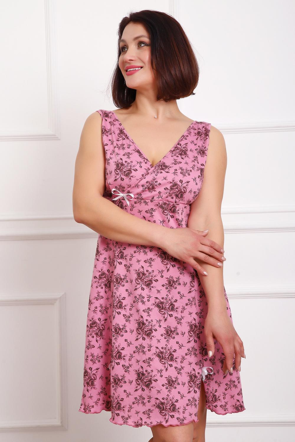 Сорочка с V образным вырезом. Полочка отрезная под грудью. Юбка с рельефами. Нашиты бантики. Подходит для кормления малыша.