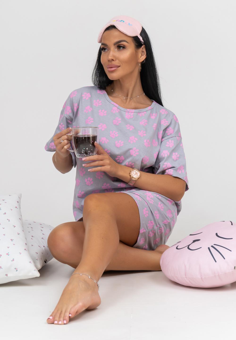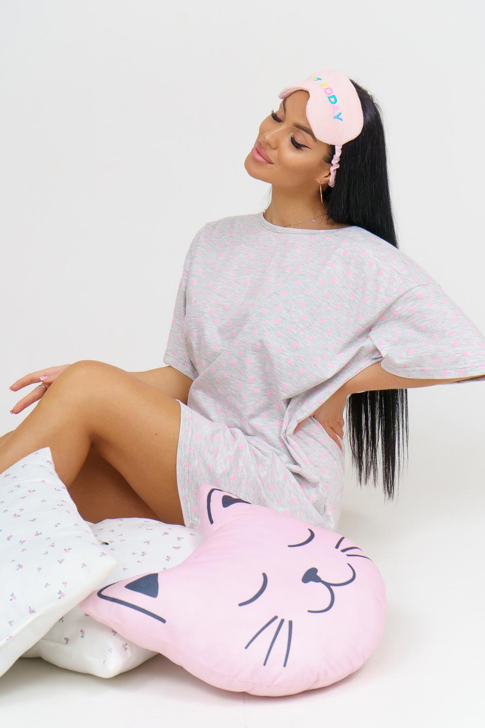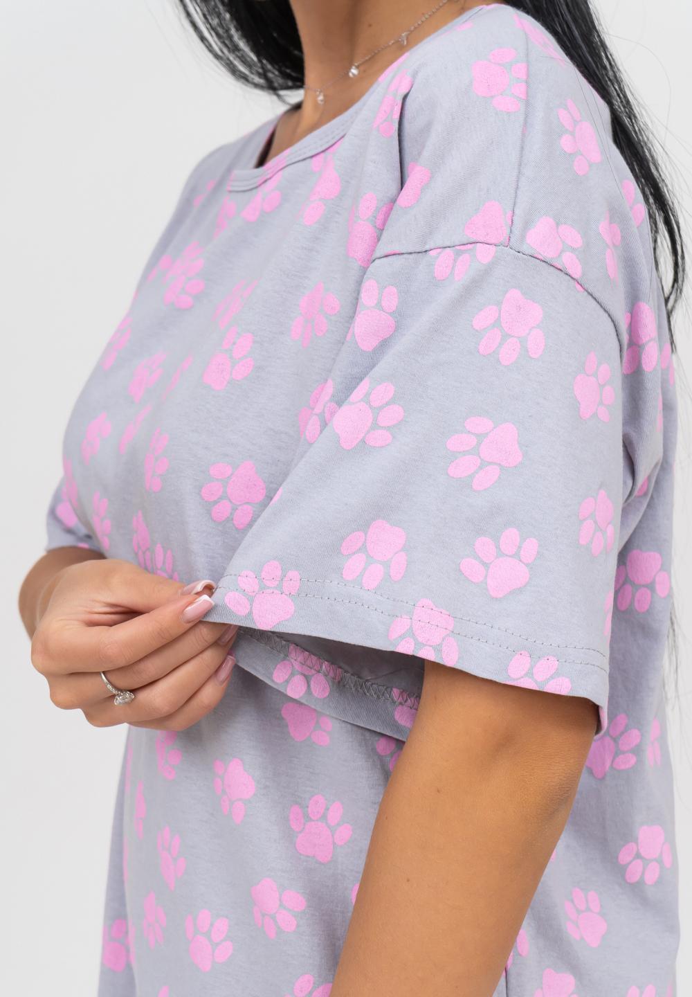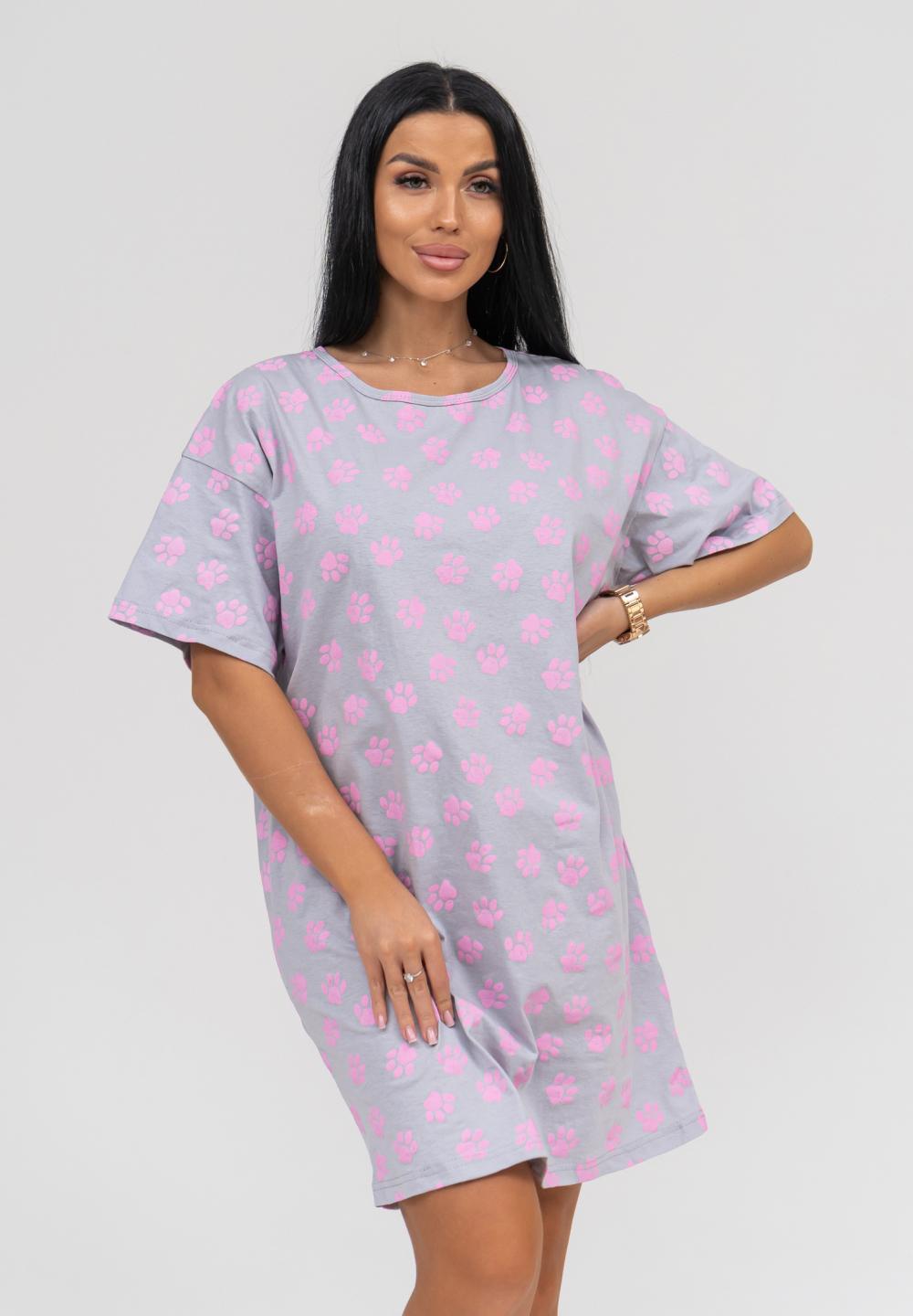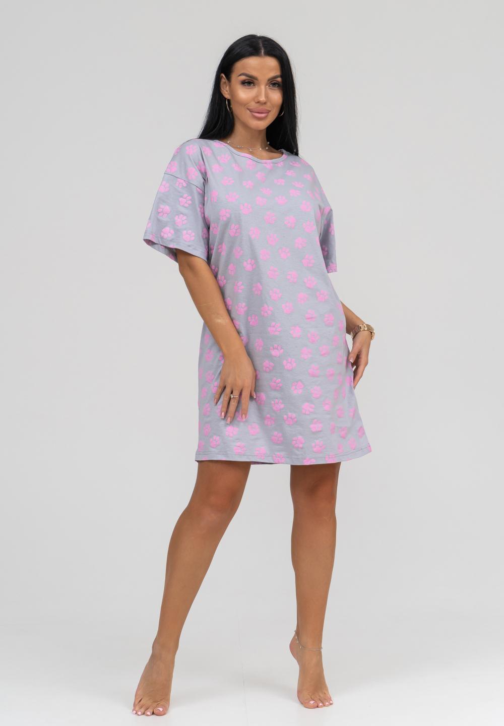 Сорочка женская свободного покроя со спущенным плечом, втачным рукавом до линии локтя. Горловина круглой формы.