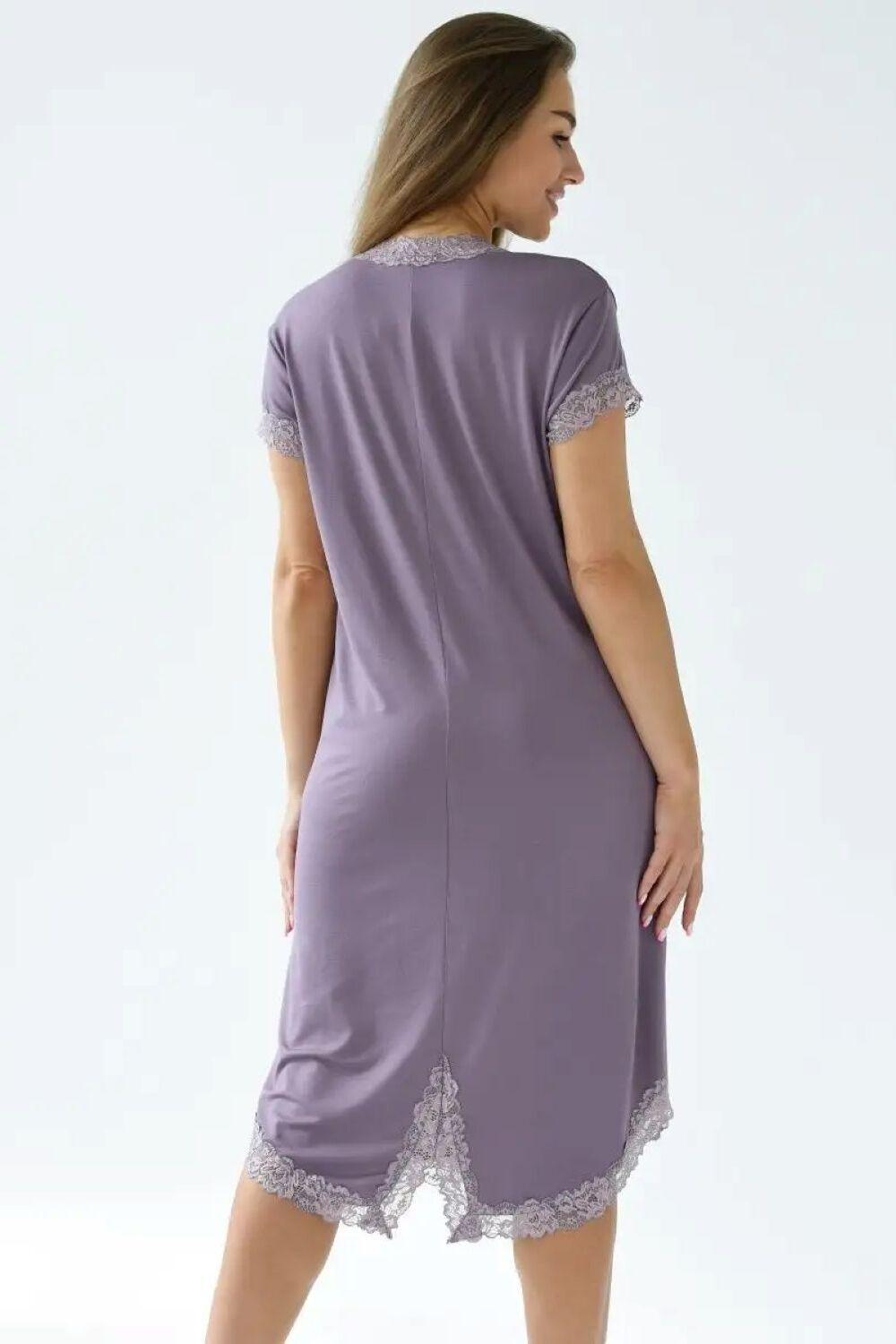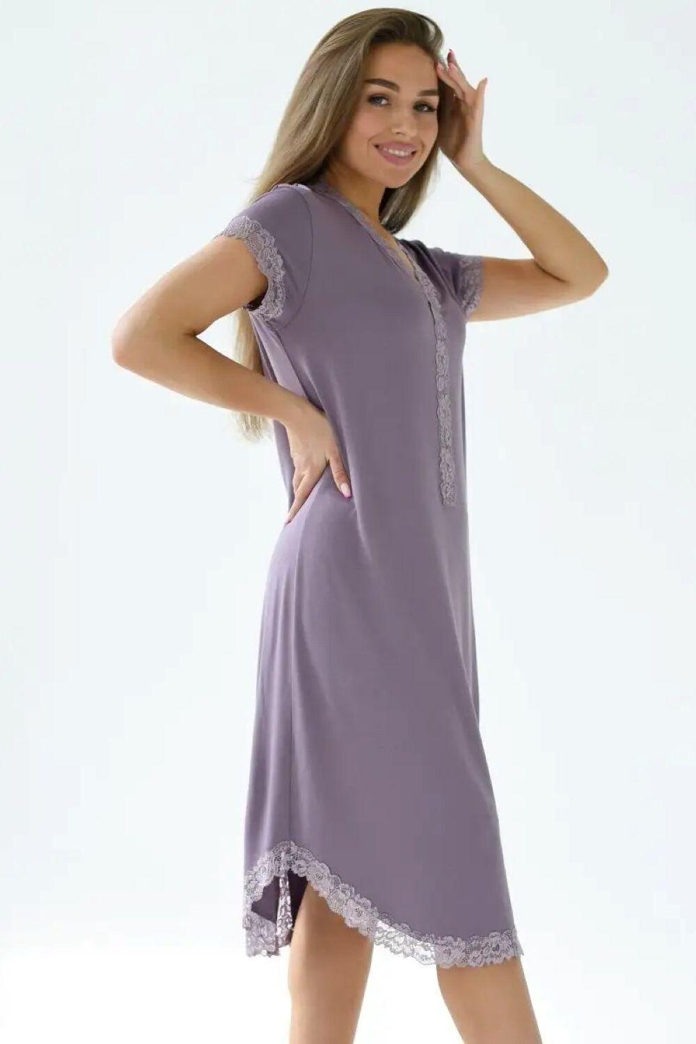 Трикотажная ночная сорочка женская "Одри", длиной чуть ниже колена и короткими рукавами - стильная и элегантная спальная вещь для дома.
