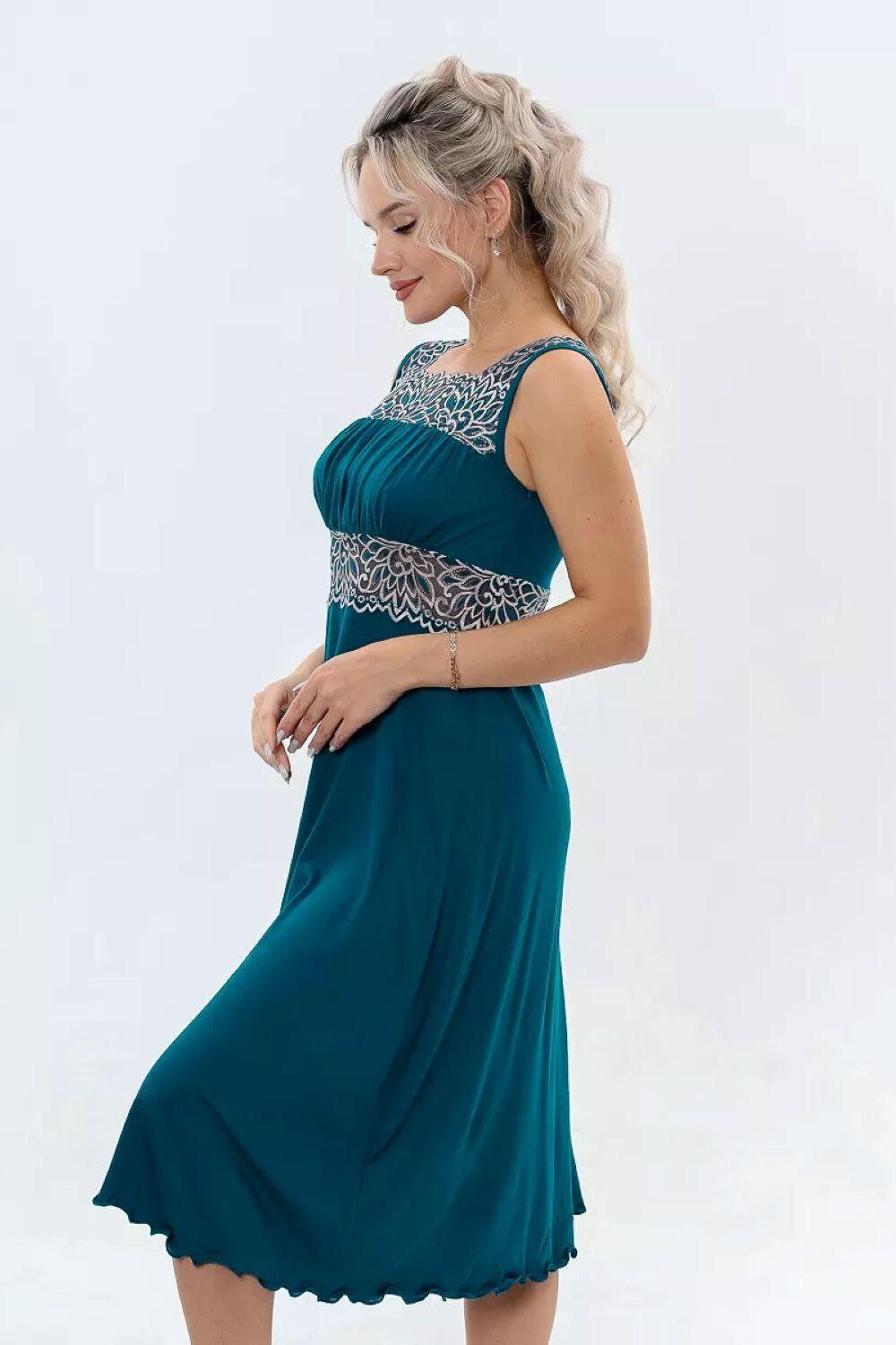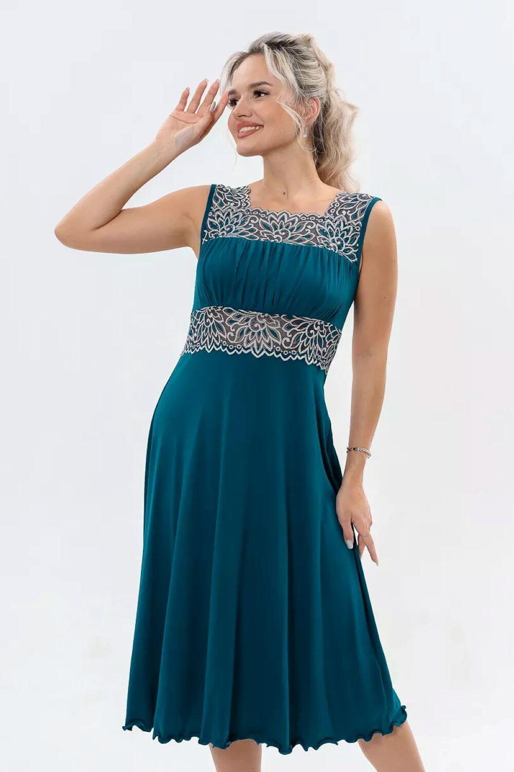 Ночная сорочка длинная прилегающего силуэта, расклешенная к низу от груди – модная и стильная модель, выполненная из мягкой ткани и украшенная эластичным кружевом. Двойная кокетка с верхней задрапированной частью, удачно поддерживает грудь, создавая при этом приятное и комфортное ощущение. Верхние и нижние срезы кокеток и широкие бретели, выполненные из эластичного кружева, обеспечивают отличную посадку на плечах, не сковывают движения и мягко обхватывают тело. Ночнушка изготовлена из вискозной ткани, она мягкая и нежная для осязания, имеет малый вес, хорошо регулирует теплообмен, пропускает воздух, не электризуется, не вызывает раздражение кожи, удерживает цвет. Эта модель рубашки для сна больших размеров прилегающего силуэта является прекрасным выбором для женщин, которые хотят выглядеть красиво и чувствовать себя уютно и расслабленно дома. Она подходит для тех, кто ищет удобную и красивую ночную одежду. Данная модель подходит для девушек и женщин всех возрастов. Рубашка, благодарю крою подойдет для беременных и кормящих мам. Благодаря своей универсальности может использоваться как уютное домашнее платье. Стильное, современное и комфортное платье для дома, которое необходимо в любой сезон. Широкий размерный ряд: от маленьких до больших, сорочка сядет на любую фигуру. Подойдет на любой рост: для высоких, для невысоких и дам среднего роста. Подходящий вариант для каждого возраста. Приобретайте нашу одежду для дома и почувствуйте себя Королевой. Эффектная кружевная ночнушка станет отличным подарком. Ночнушка подойдет для походов в роддом. Сделайте выбор в пользу качественной и стильной одежды и наслаждайтесь приятным сном и отдыхом.