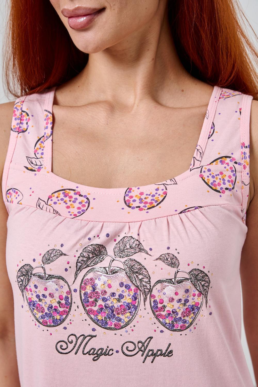 Лёгкая сорочка на бретелях, спинка цельнокроеная. Использованы ткани-компаньоны. Принт - три яблочка, полноцветная печать