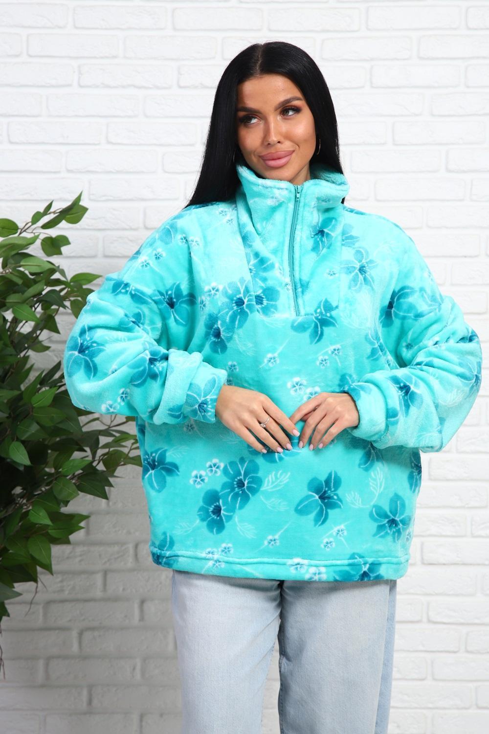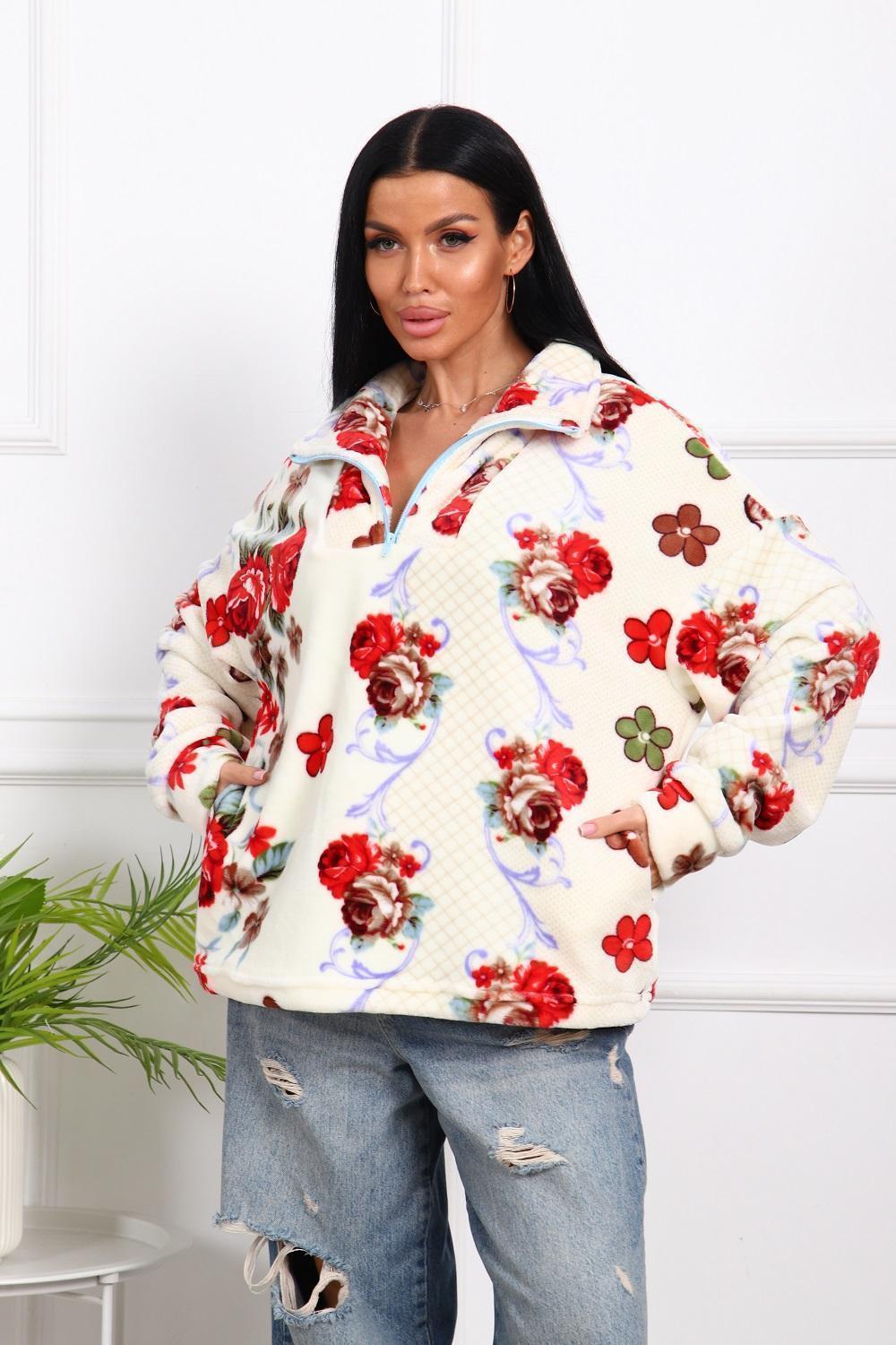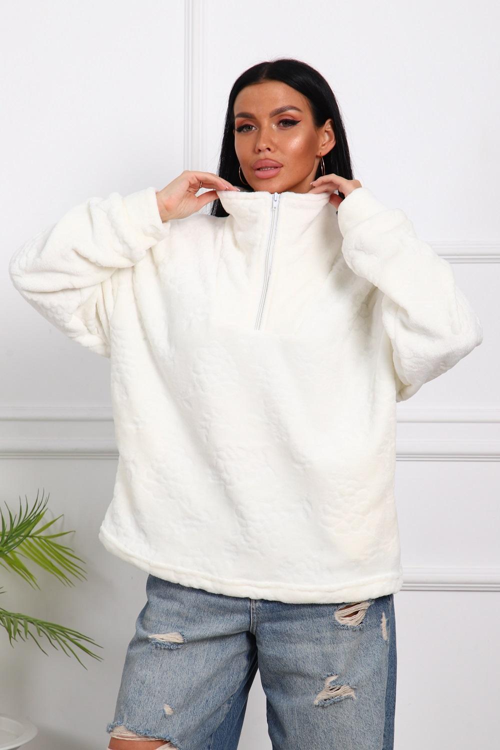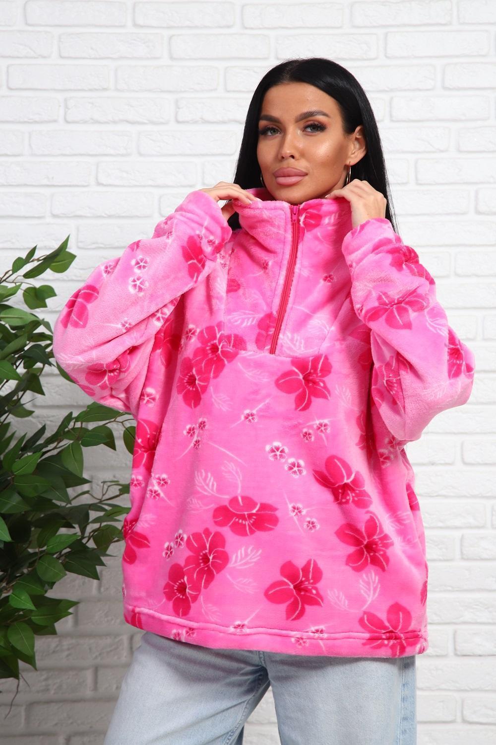 Толстовка женская свободного кроя, из уютного теплого велсофта, с комфортным воротом на молнии, с двумя боковыми карманами. Не мнётся, легко стирается.