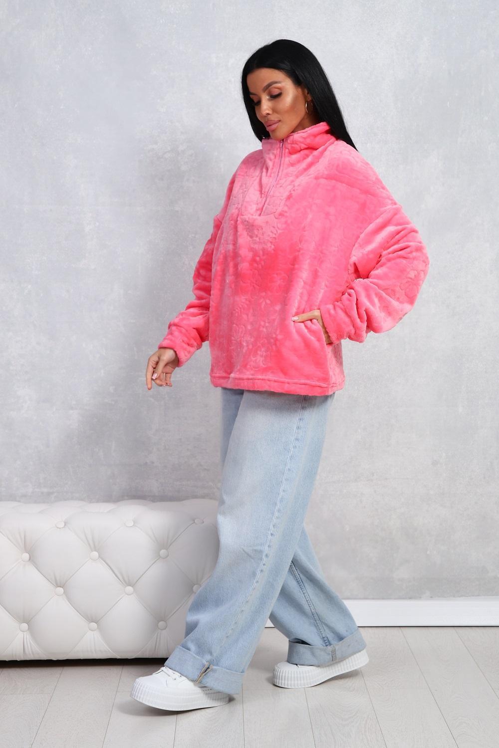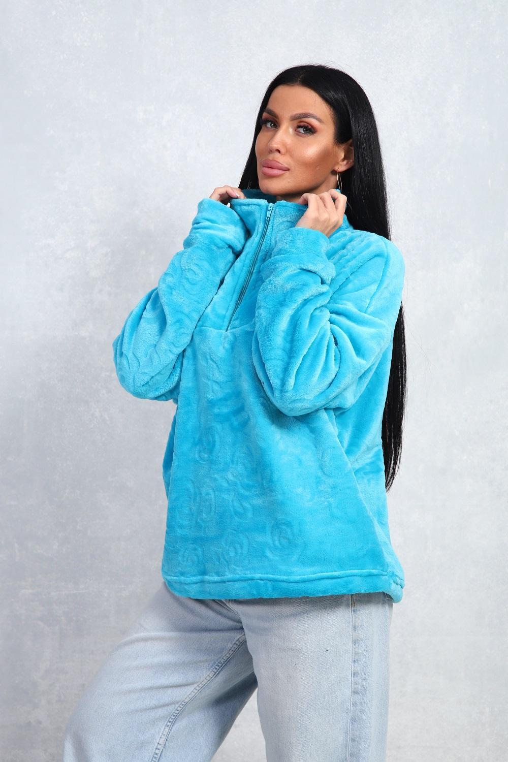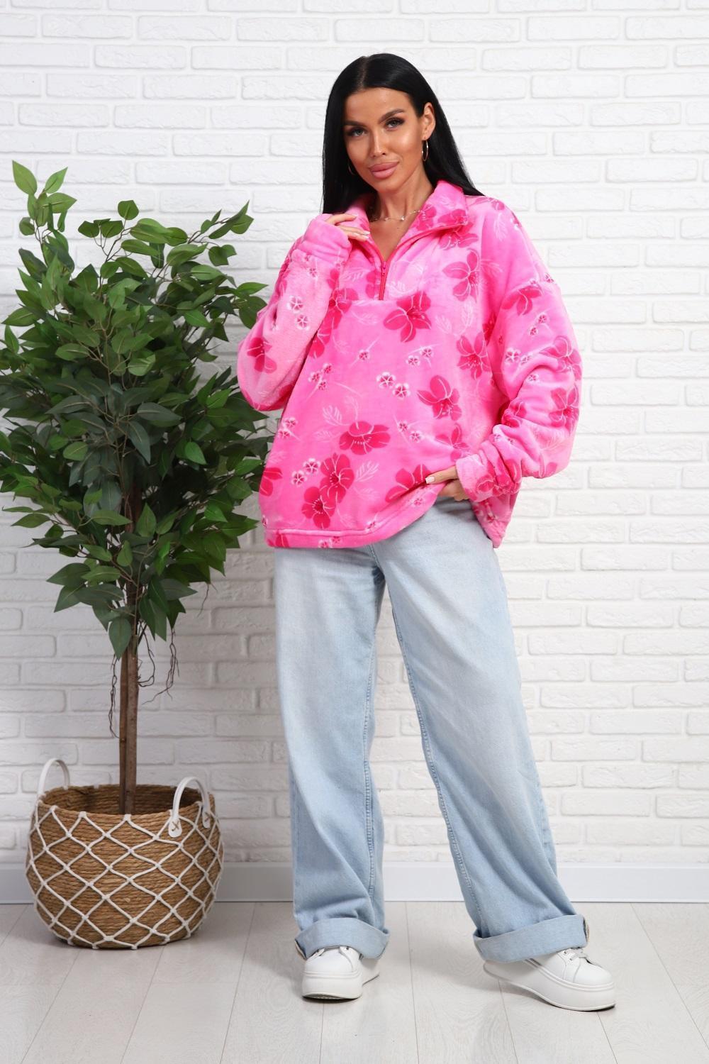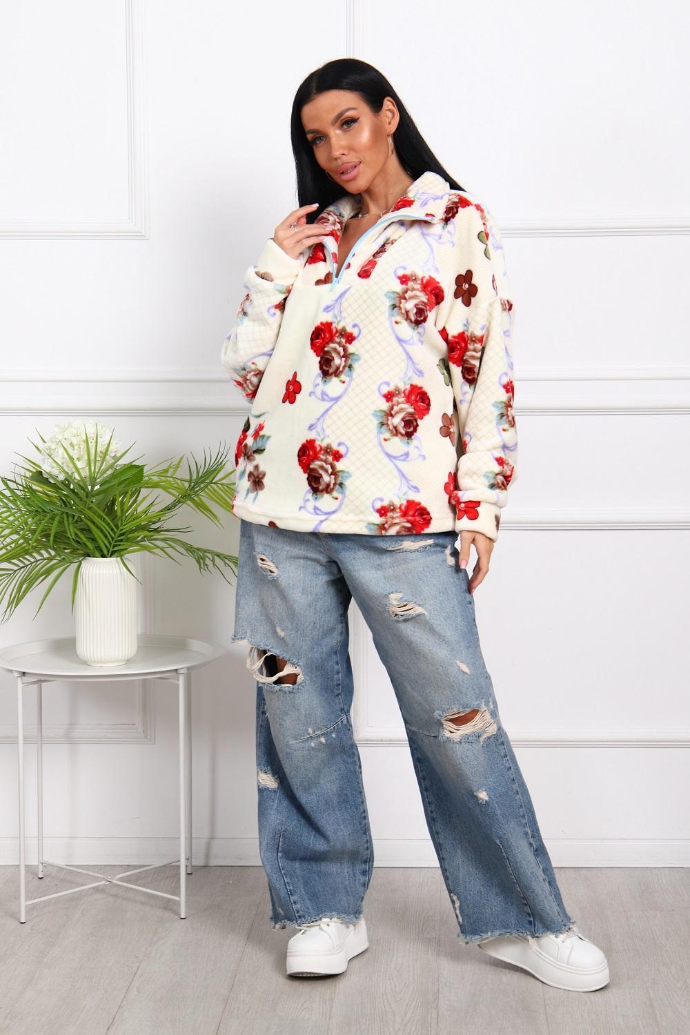 Толстовка женская свободного кроя, из уютного теплого велсофта, с комфортным воротом на молнии, с двумя боковыми карманами. Не мнётся, легко стирается.