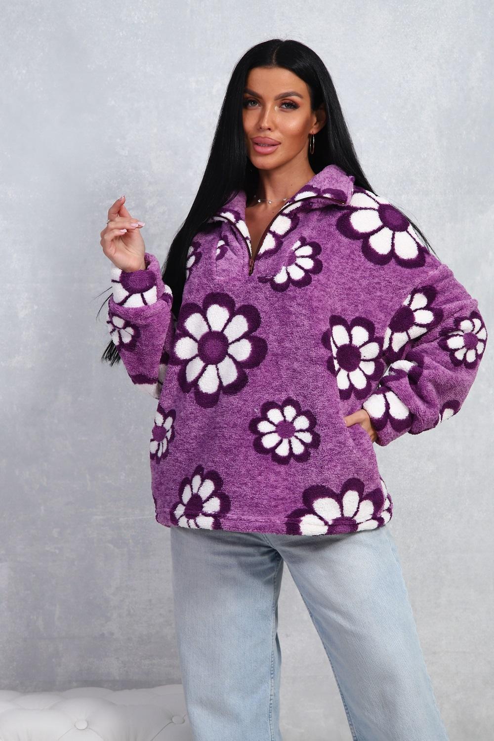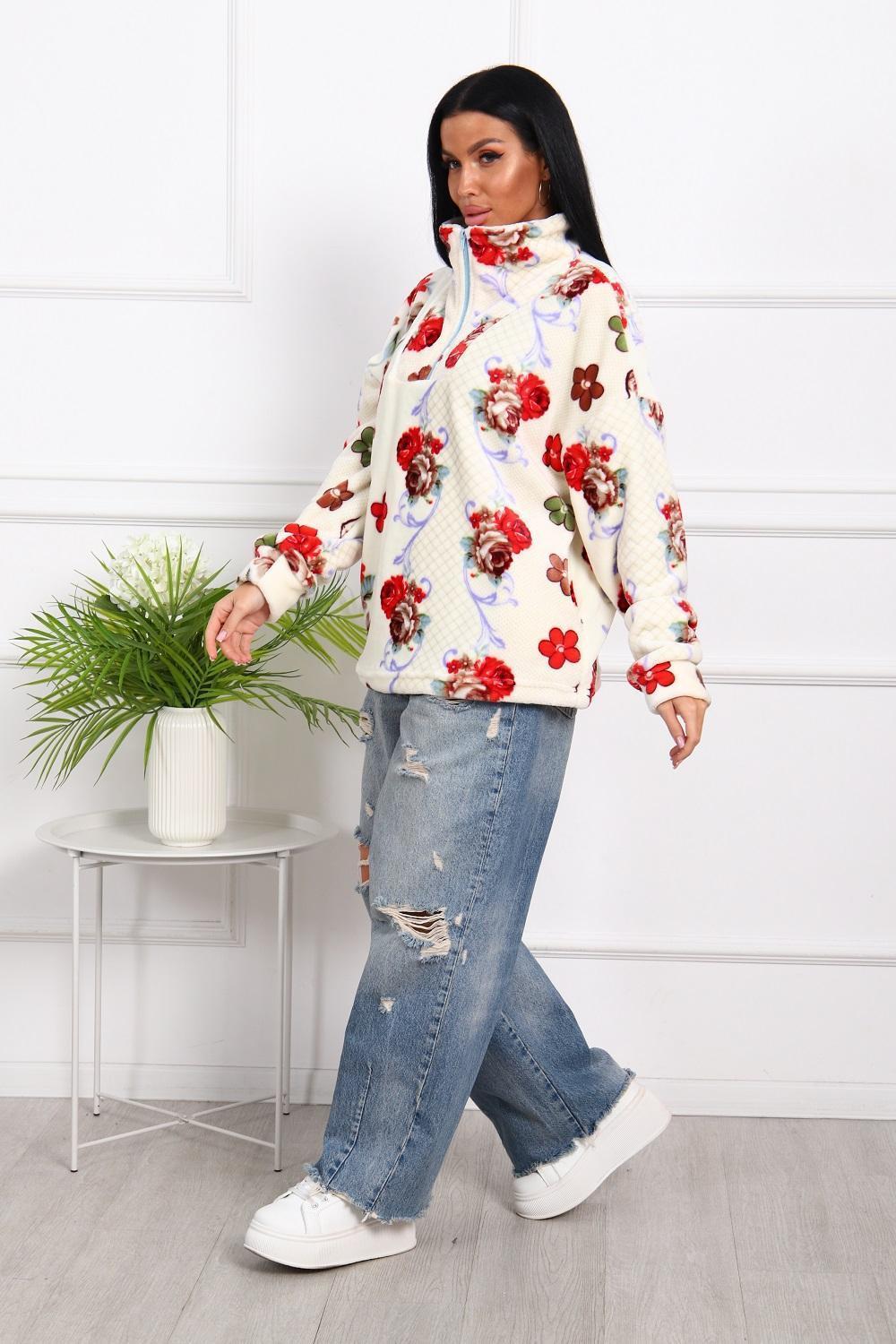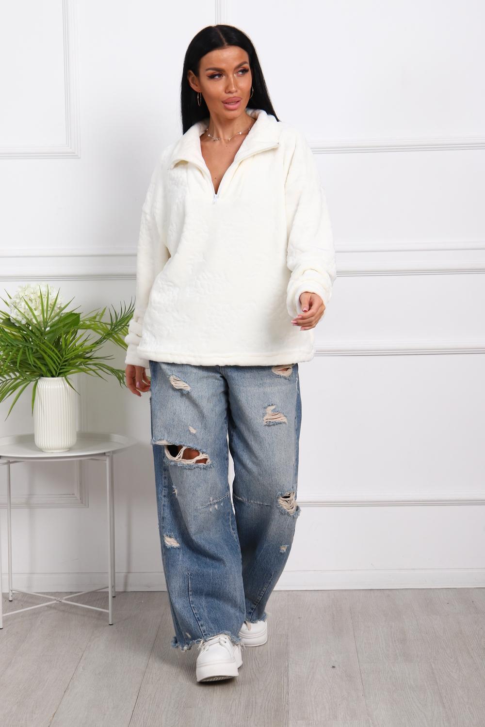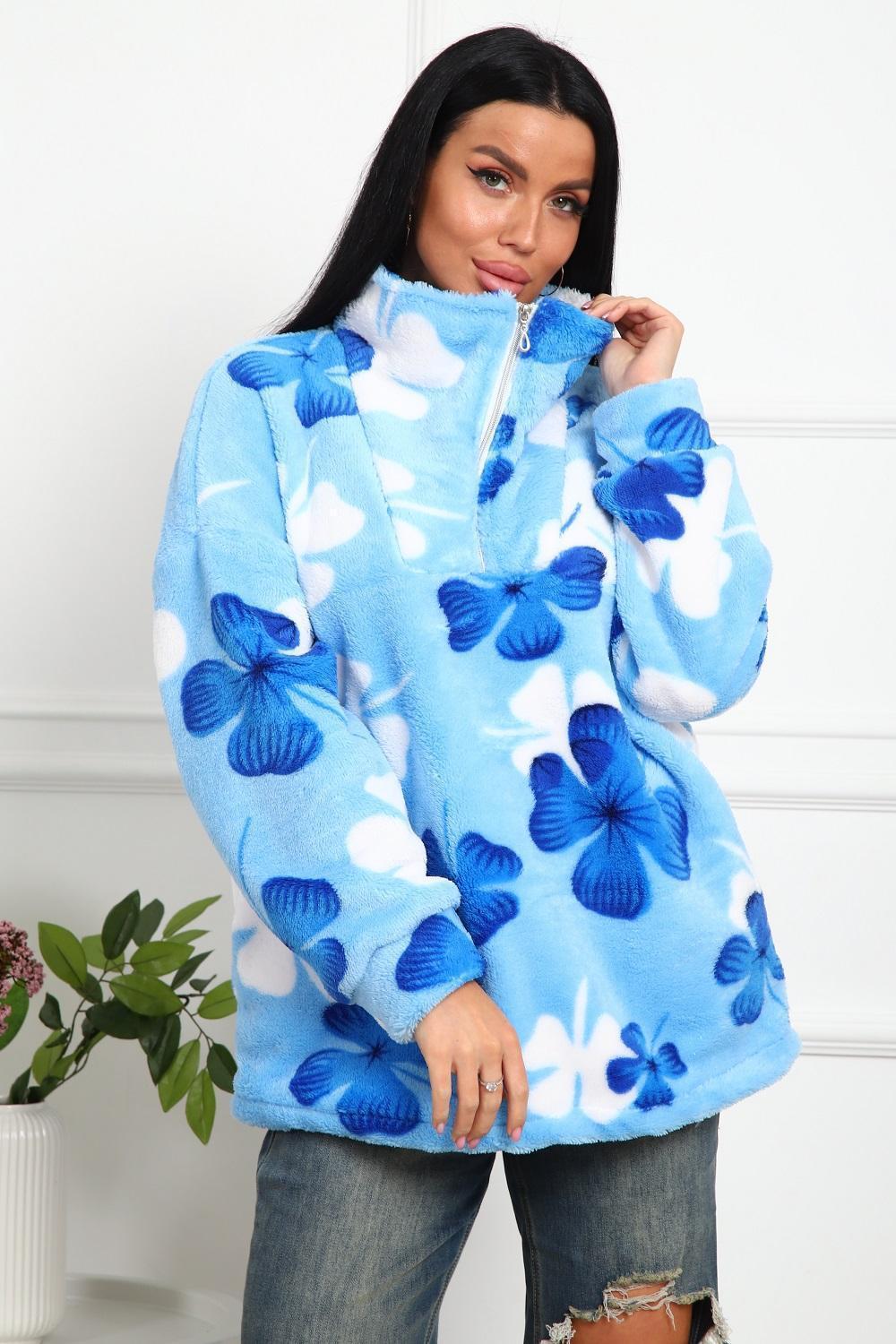 Толстовка женская свободного кроя, из уютного теплого велсофта, с комфортным воротом на молнии, с двумя боковыми карманами. Не мнётся, легко стирается.