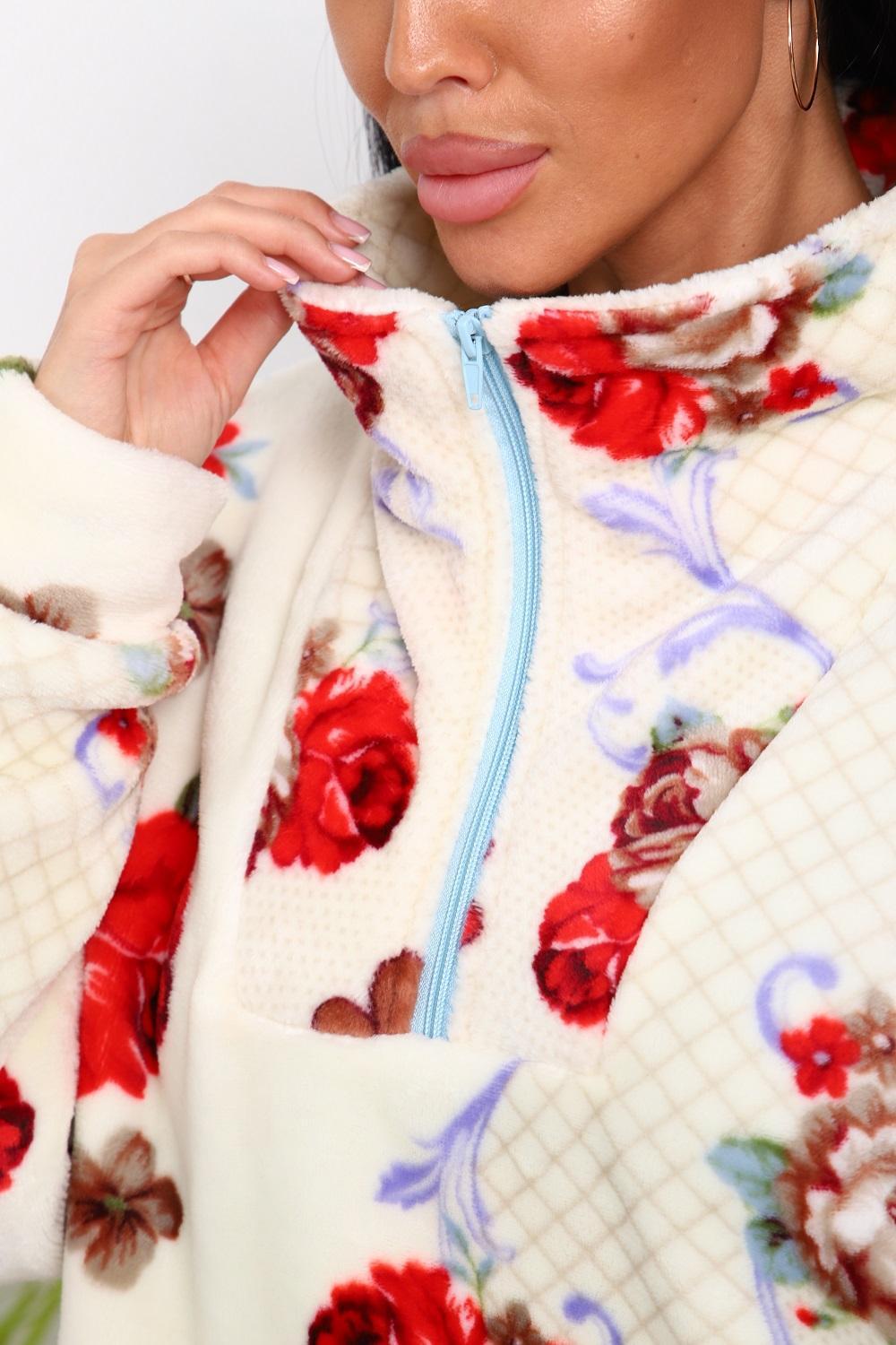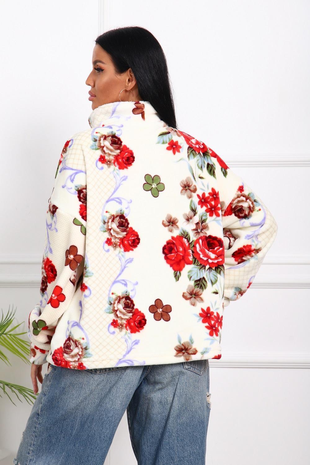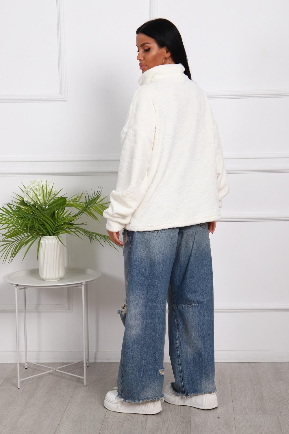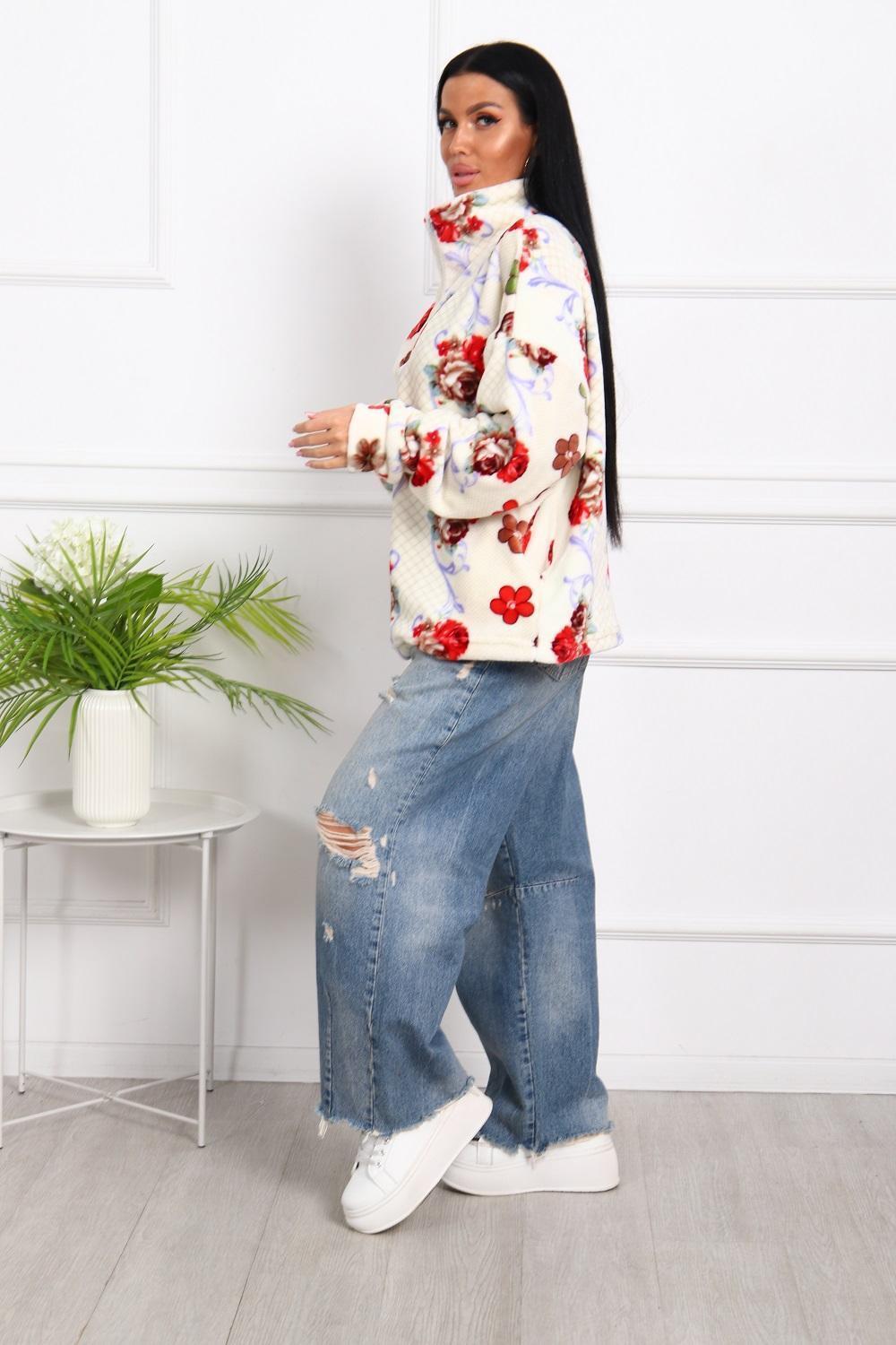 Толстовка женская свободного кроя, из уютного теплого велсофта, с комфортным воротом на молнии, с двумя боковыми карманами. Не мнётся, легко стирается.