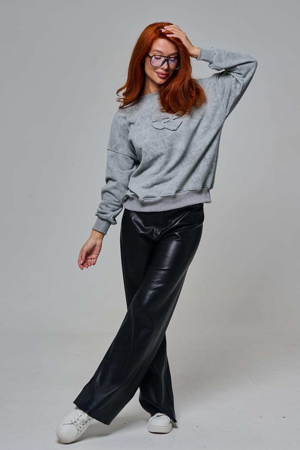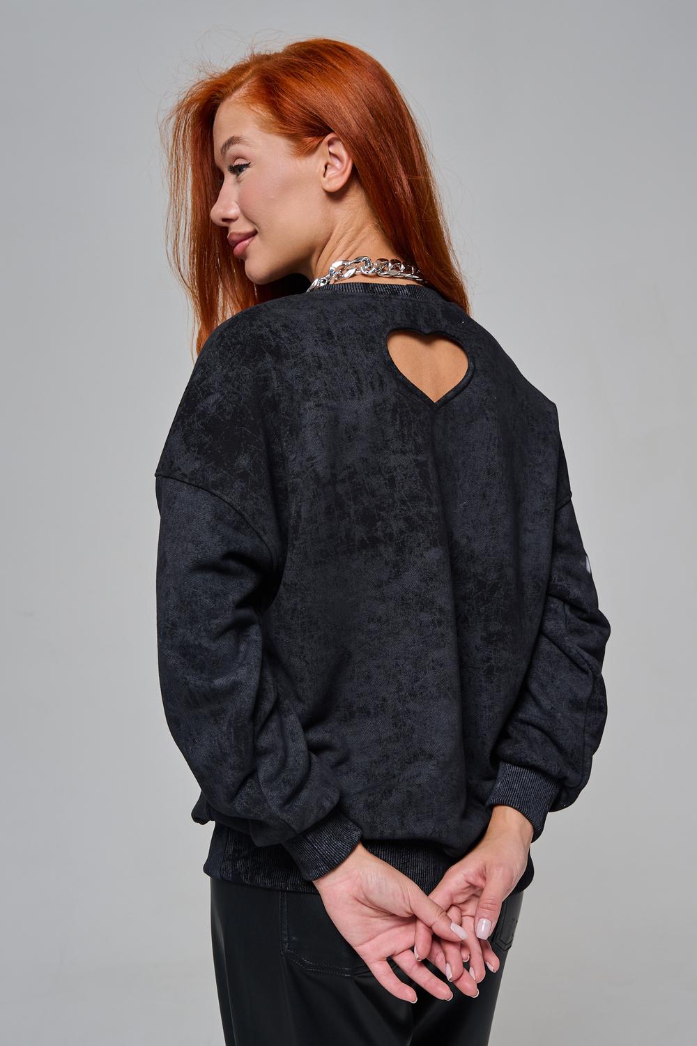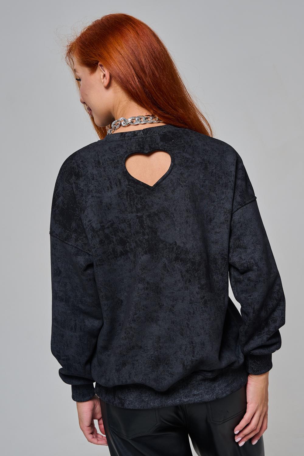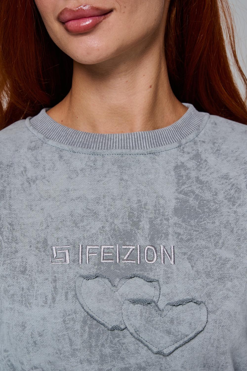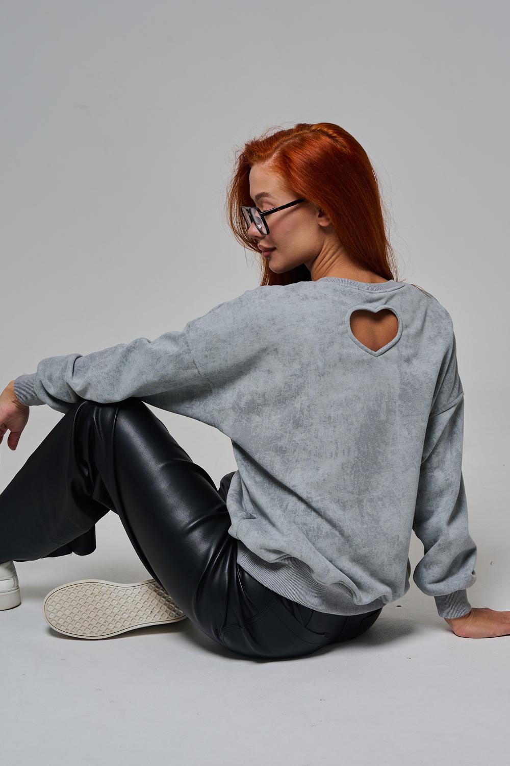 Толстовка женская оверсайз с вышивкой на полочке. Горловина, пояс, манжеты из кашкорсе в цвет основной ткани. Вверху по центру спинки - элемент в виде сердца.