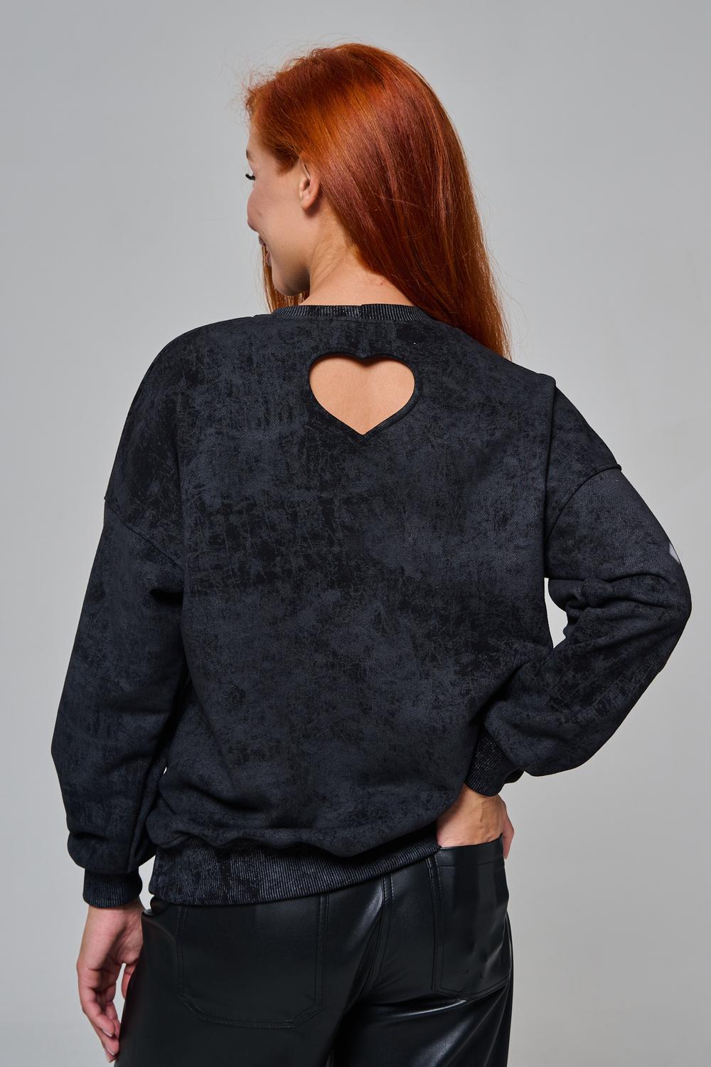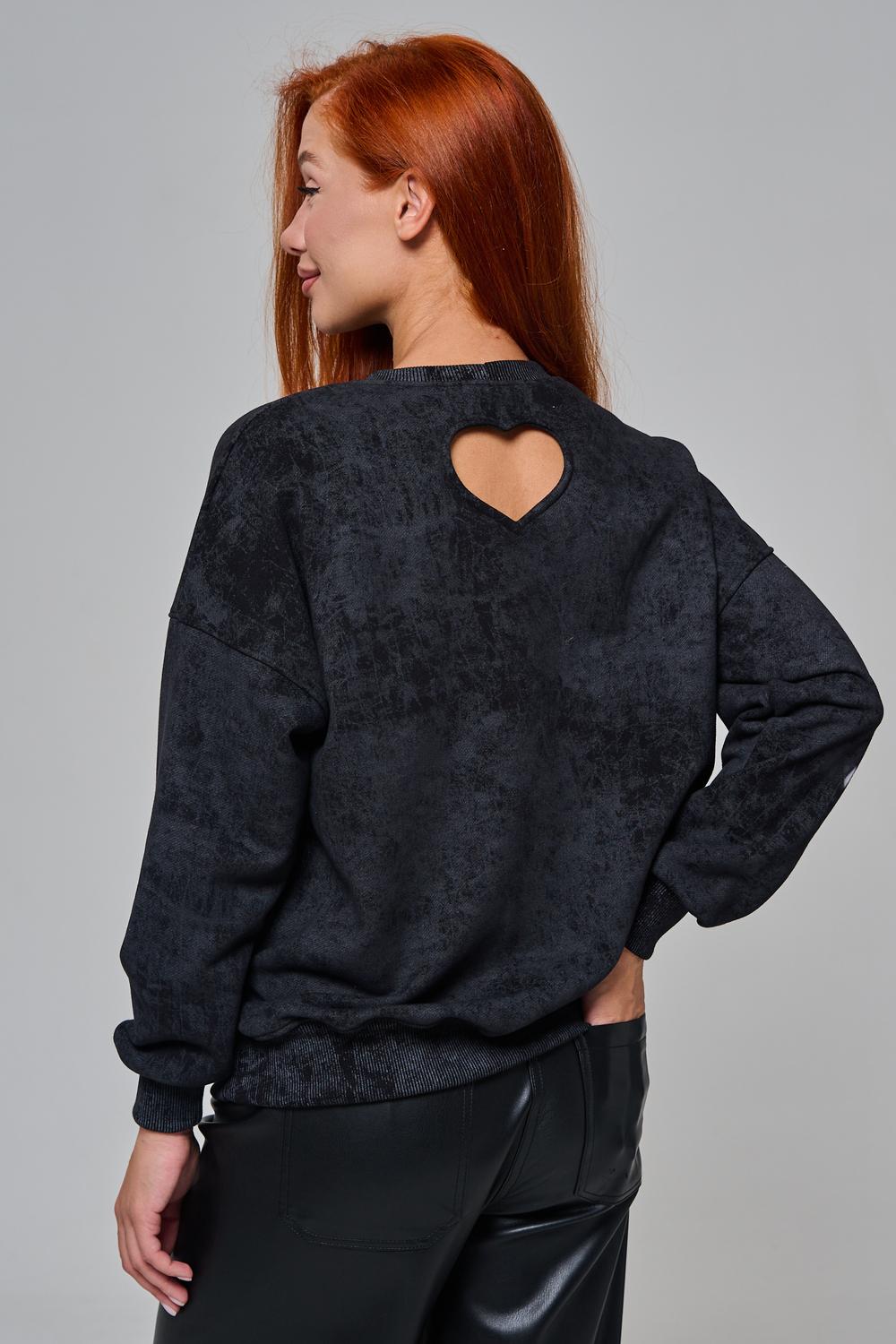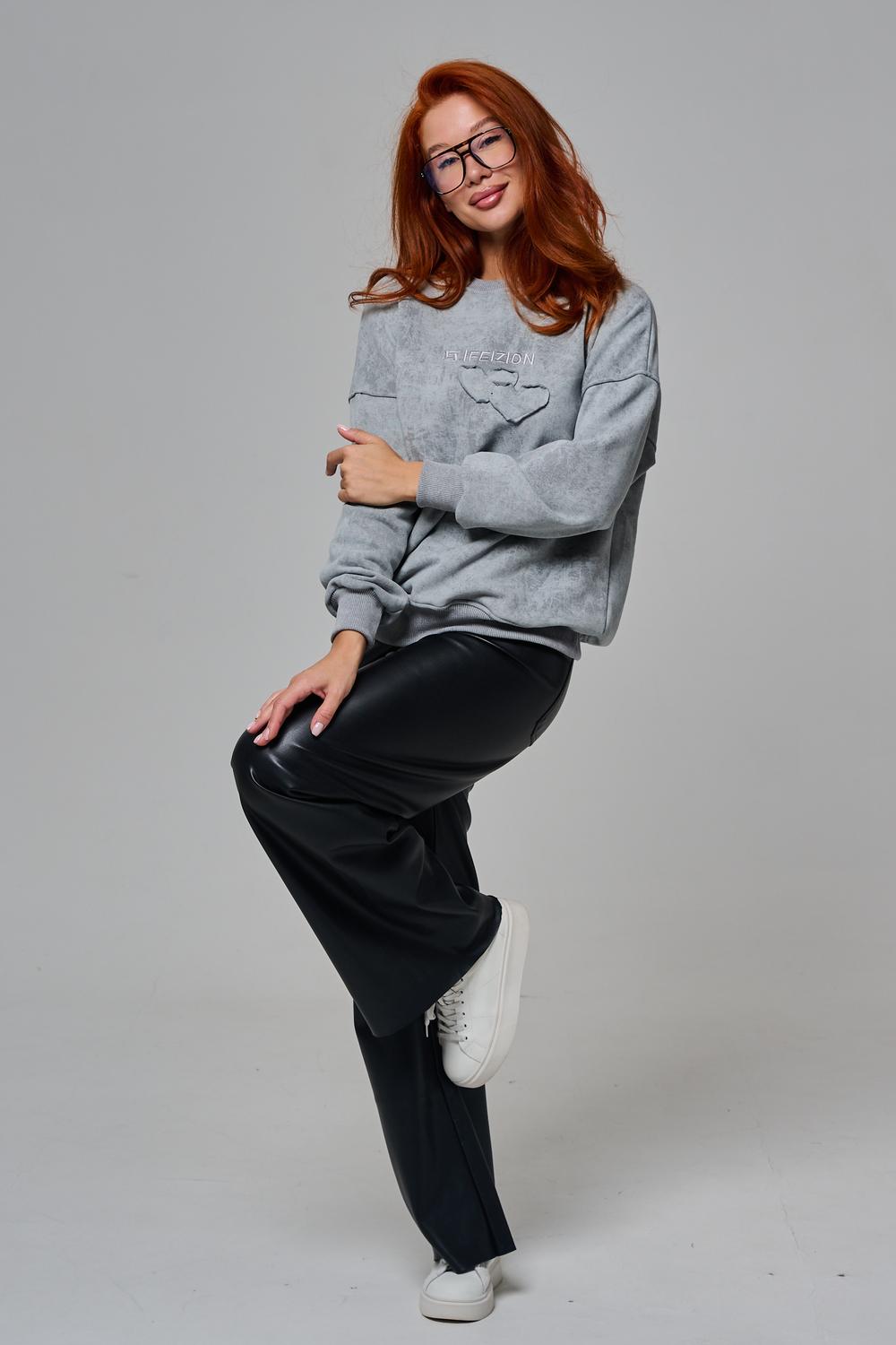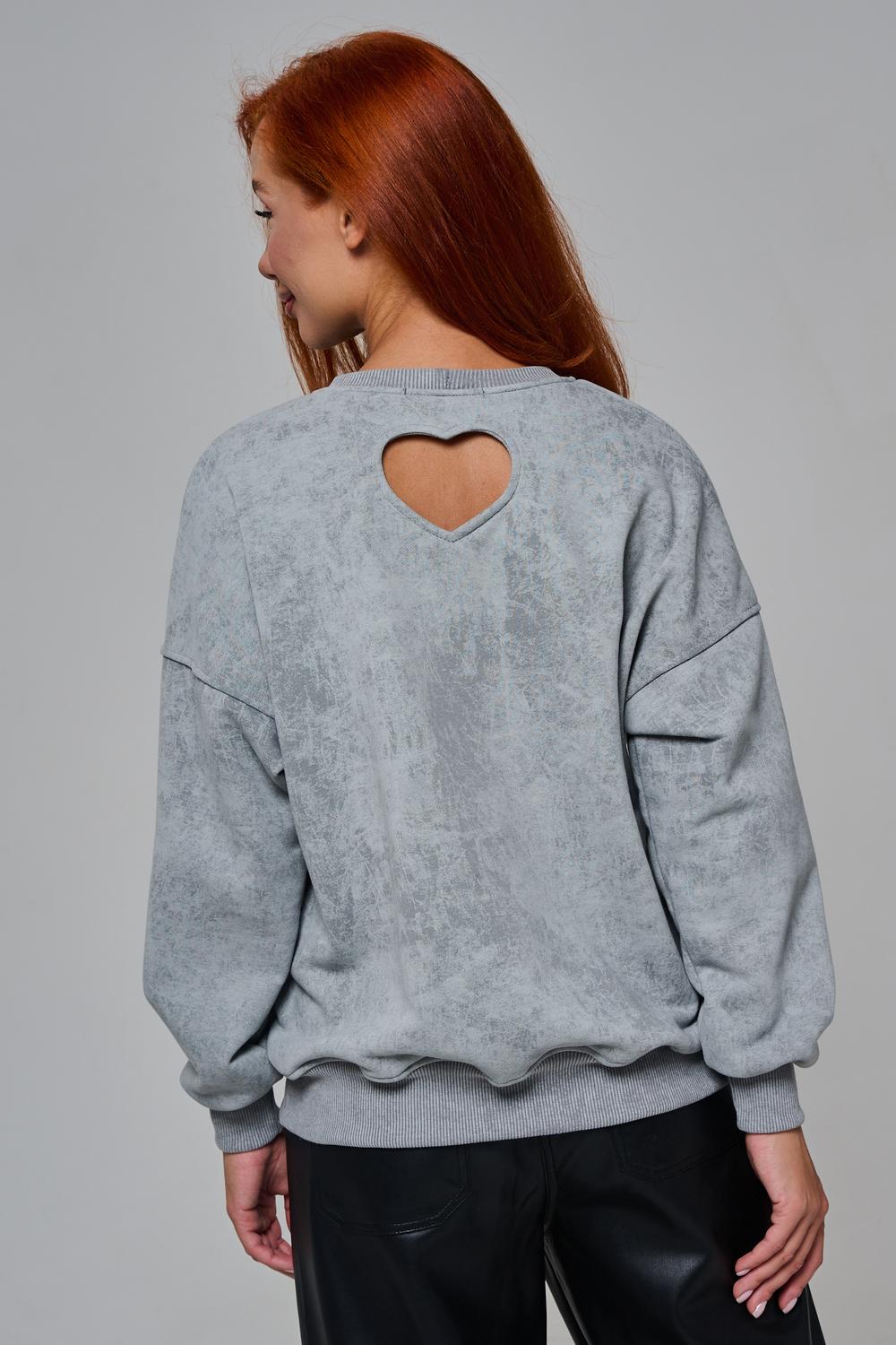 Толстовка женская оверсайз с вышивкой на полочке. Горловина, пояс, манжеты из кашкорсе в цвет основной ткани. Вверху по центру спинки - элемент в виде сердца.