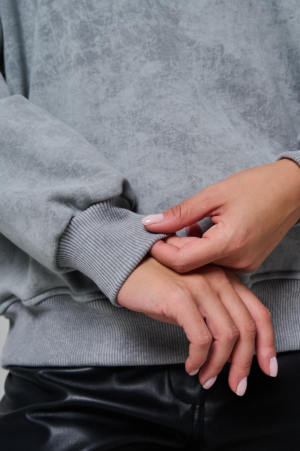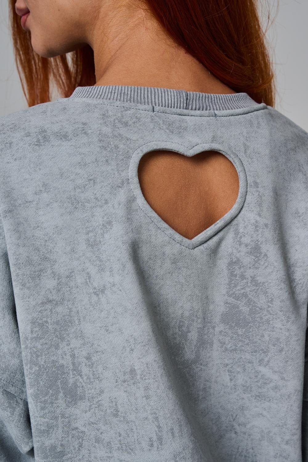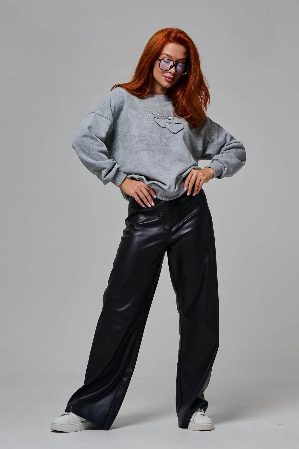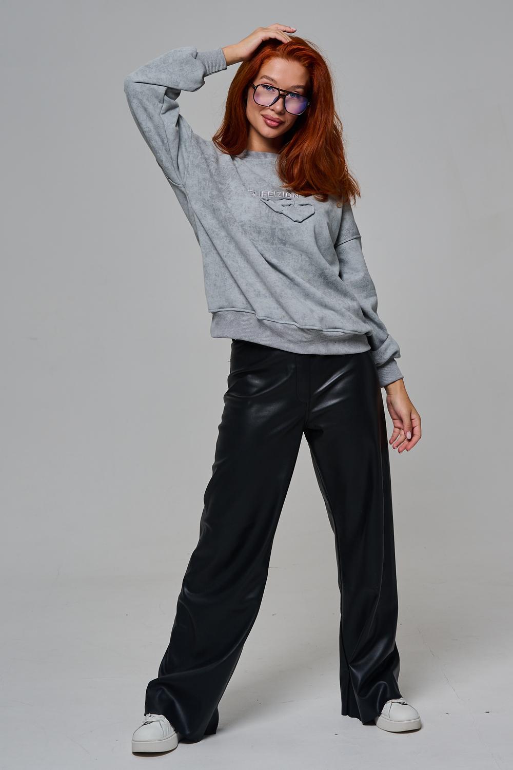 Толстовка женская оверсайз с вышивкой на полочке. Горловина, пояс, манжеты из кашкорсе в цвет основной ткани. Вверху по центру спинки - элемент в виде сердца.