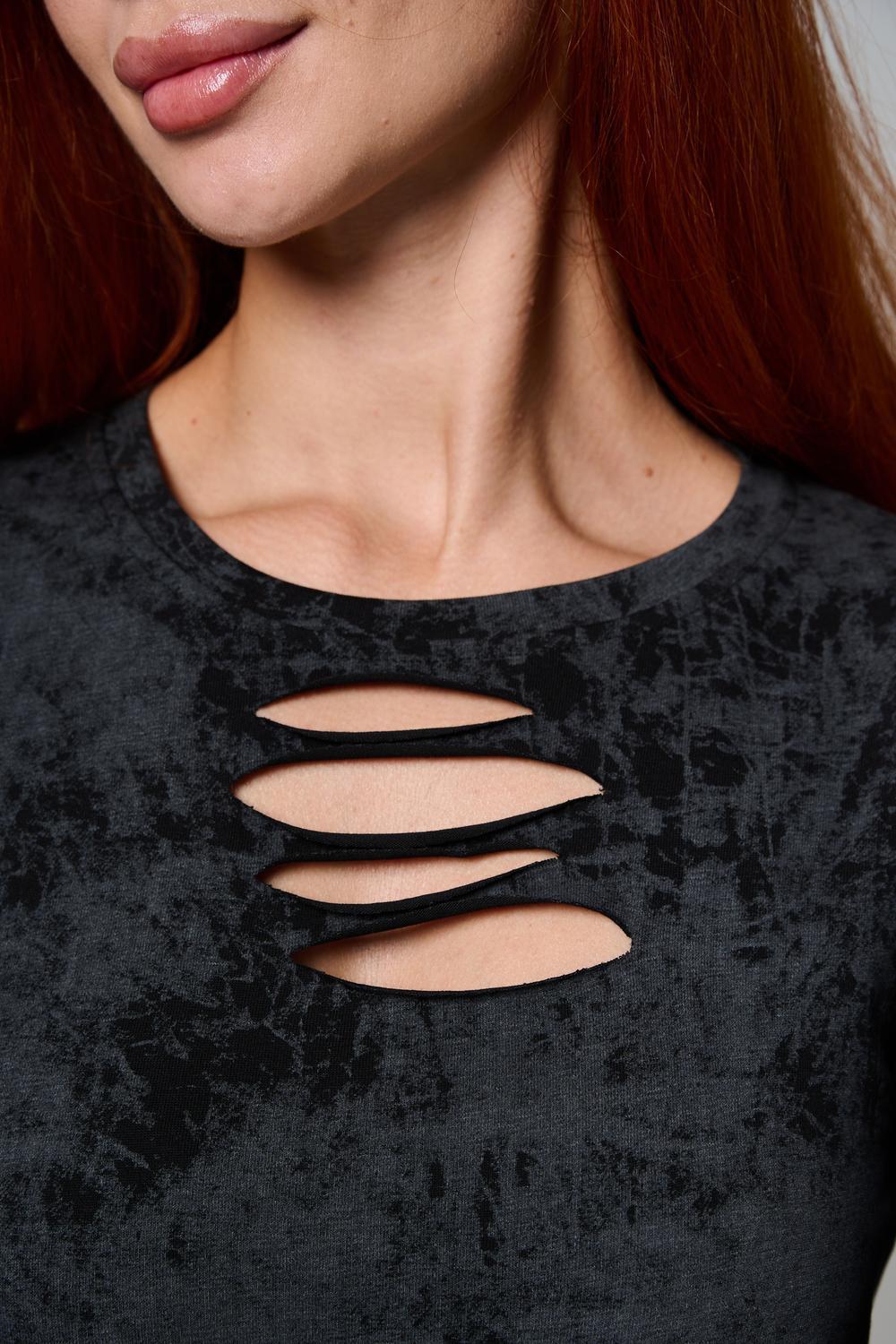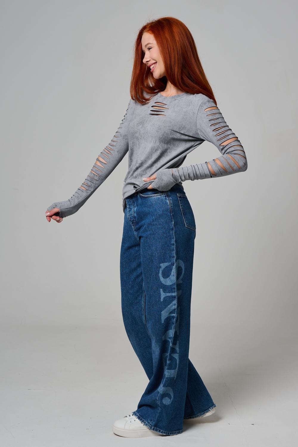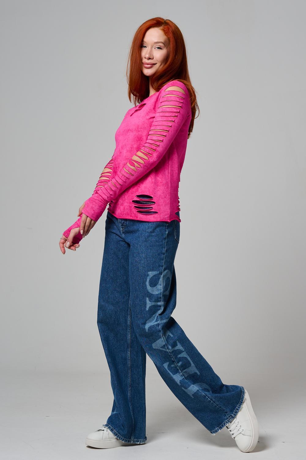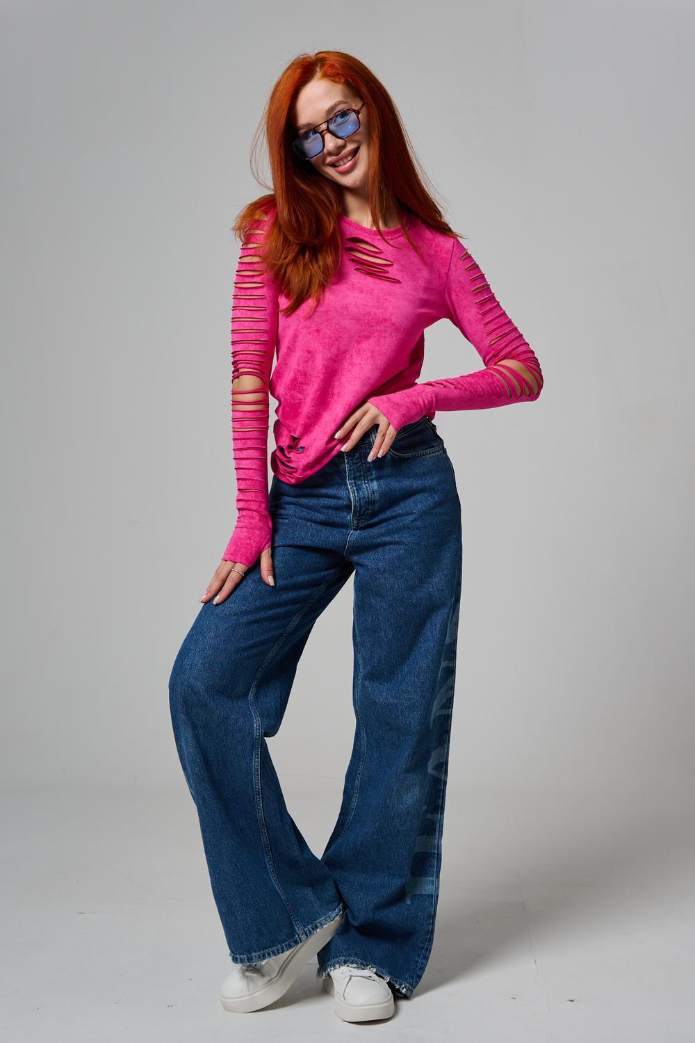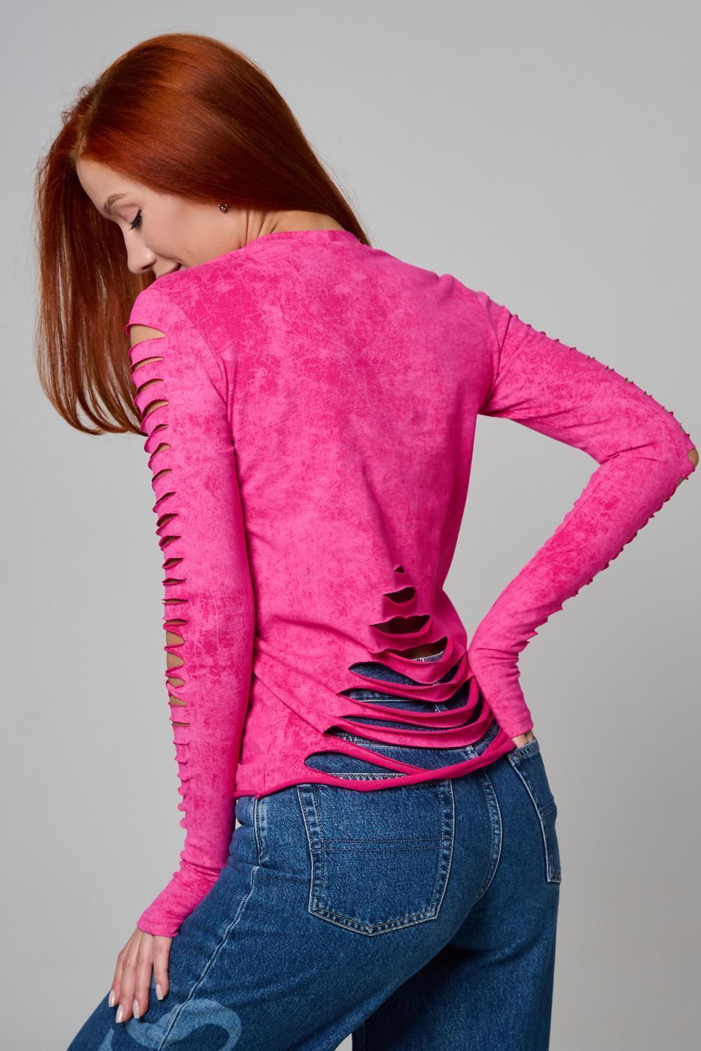 Женский лонгслив с длинными рукавами с из качественного хлопкового трикотажа. Необычный дизайнерский лонгслив с декоративным разрезами станет ярким дополнением к Вашему образу.