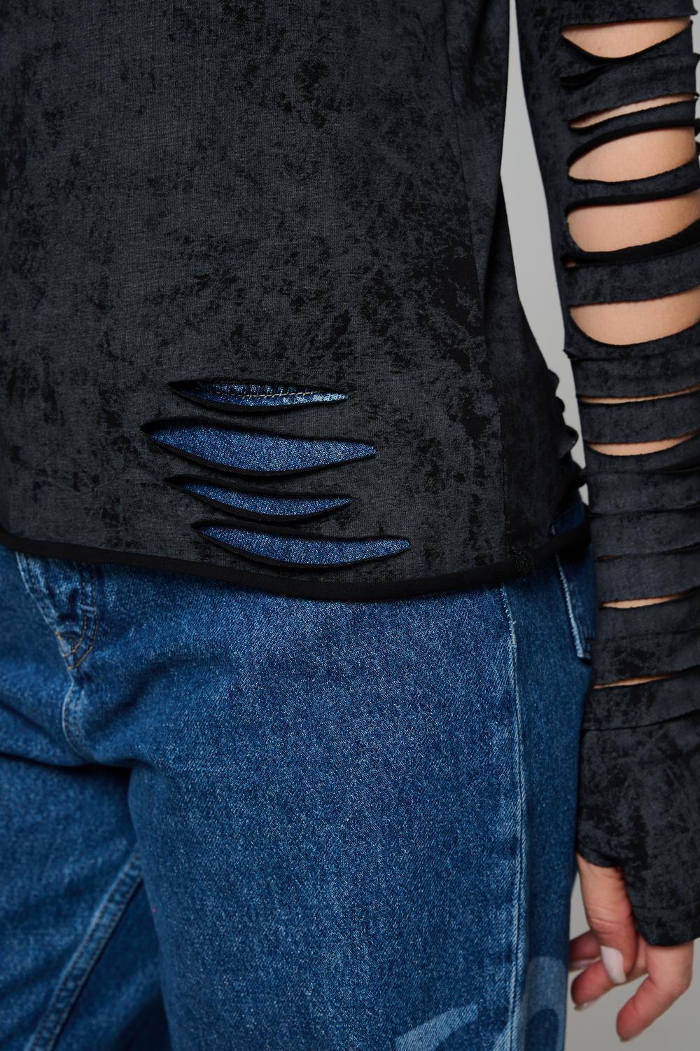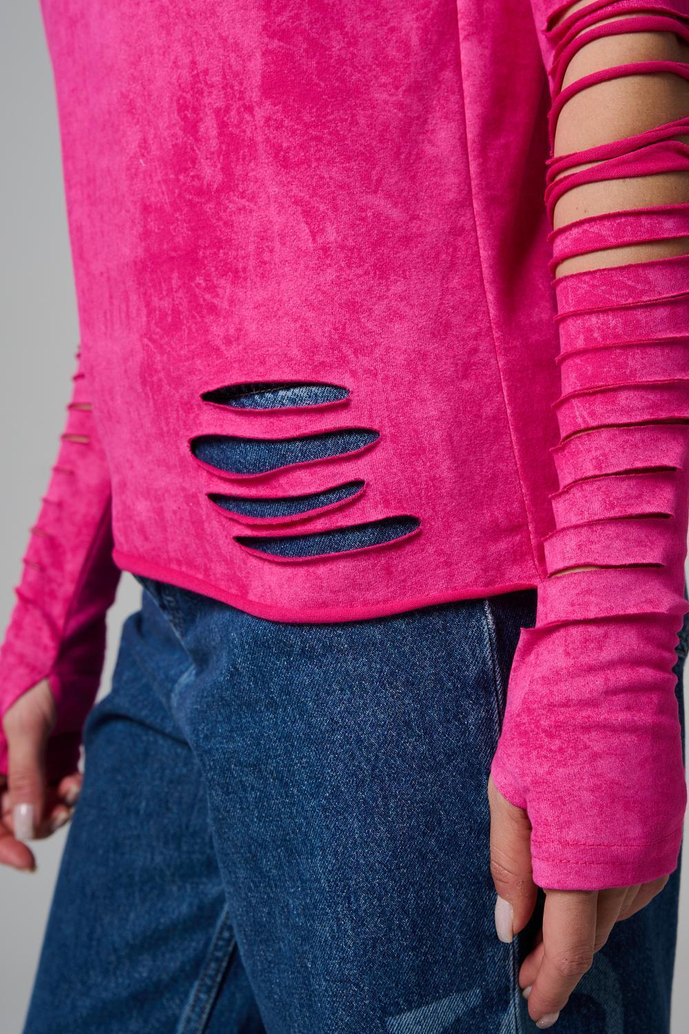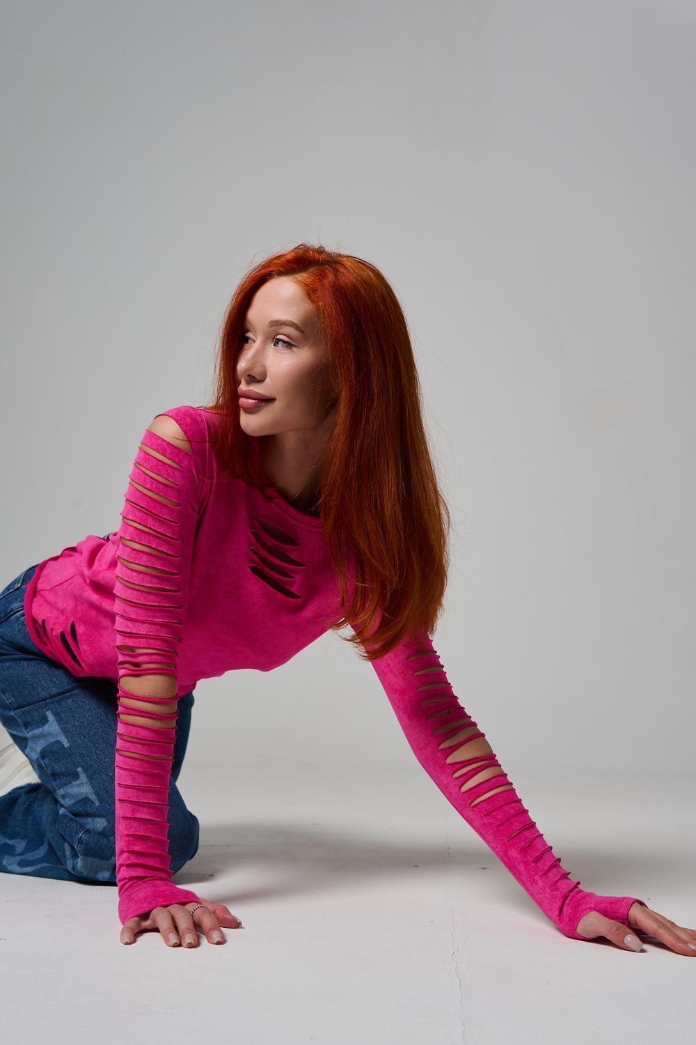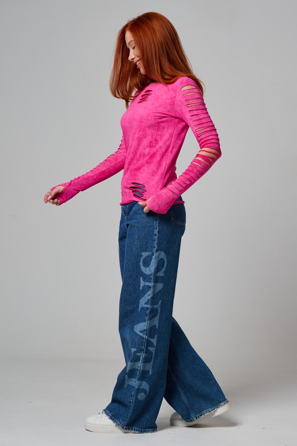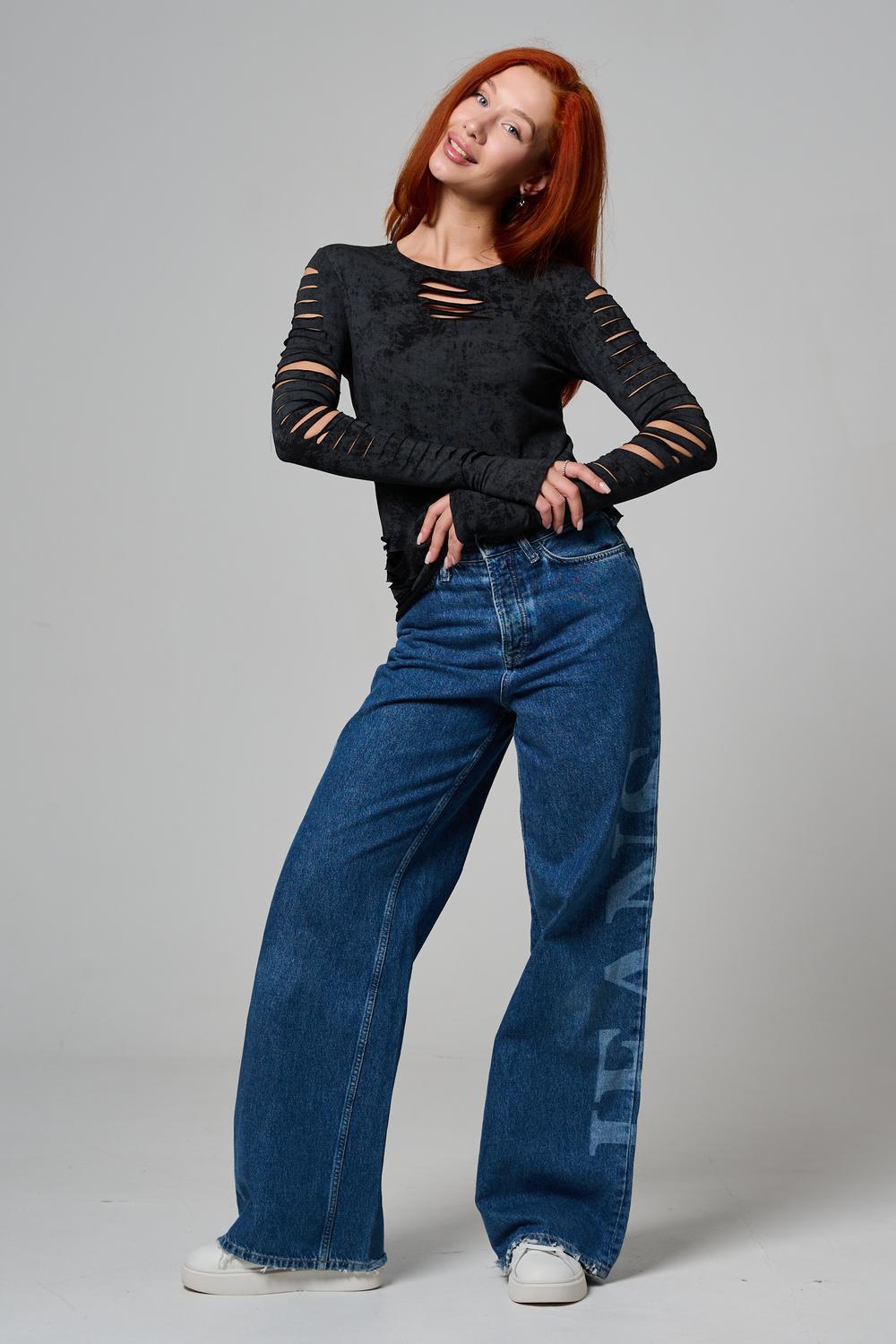 Женский лонгслив с длинными рукавами с из качественного хлопкового трикотажа. Необычный дизайнерский лонгслив с декоративным разрезами станет ярким дополнением к Вашему образу.