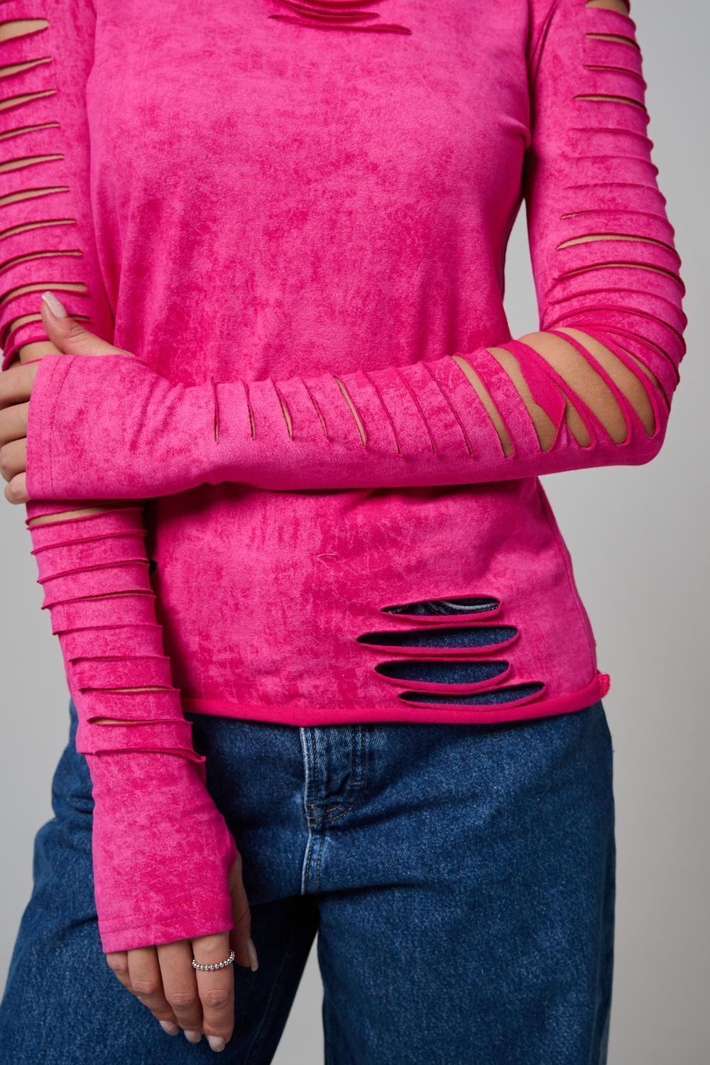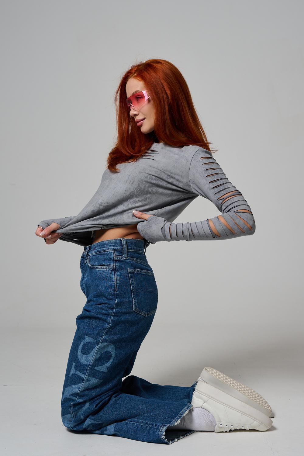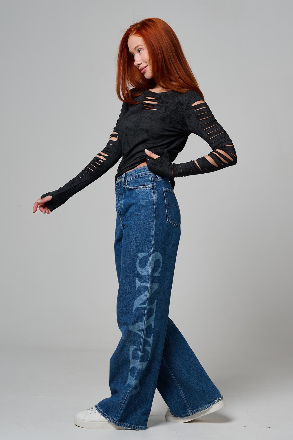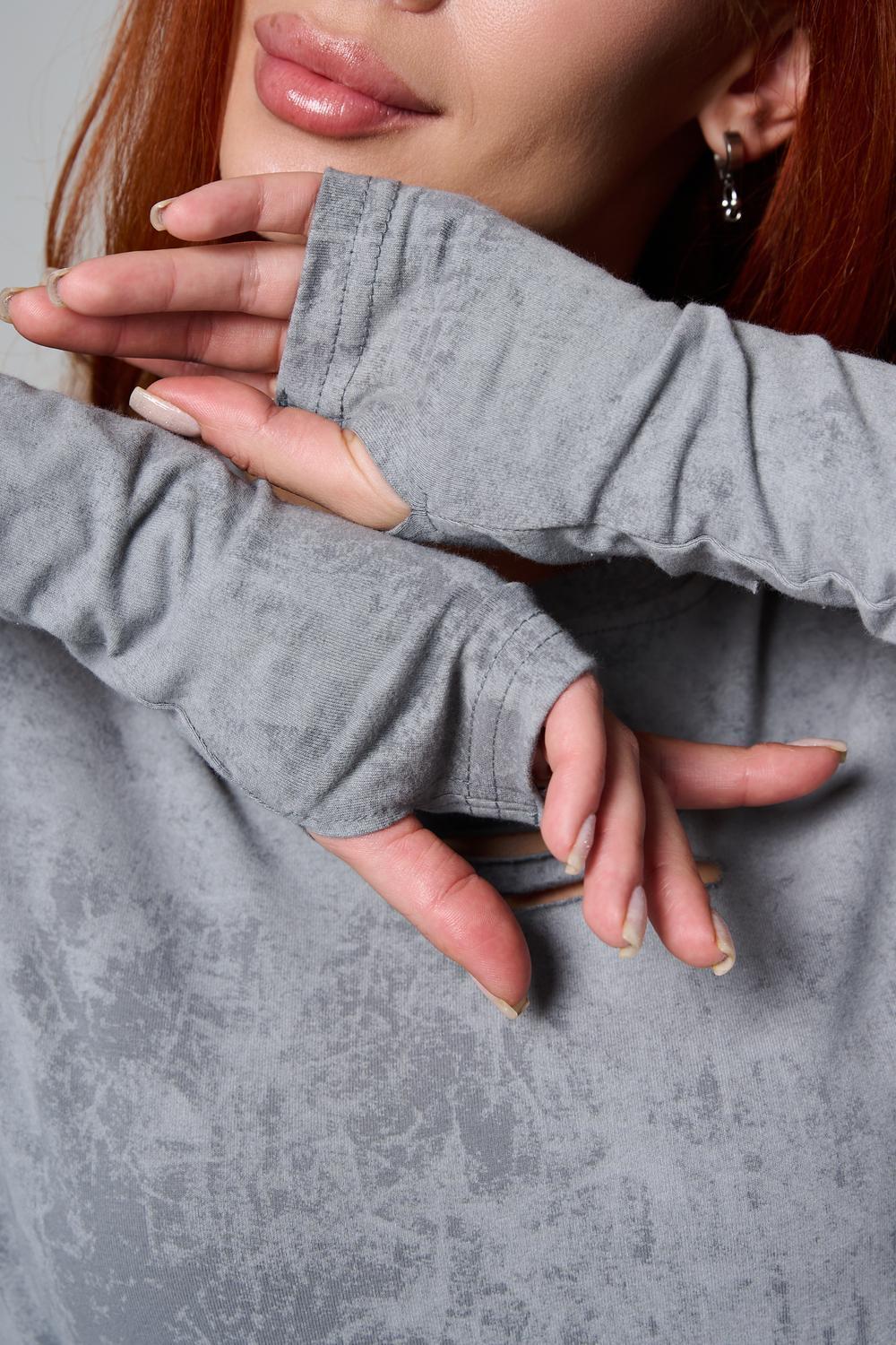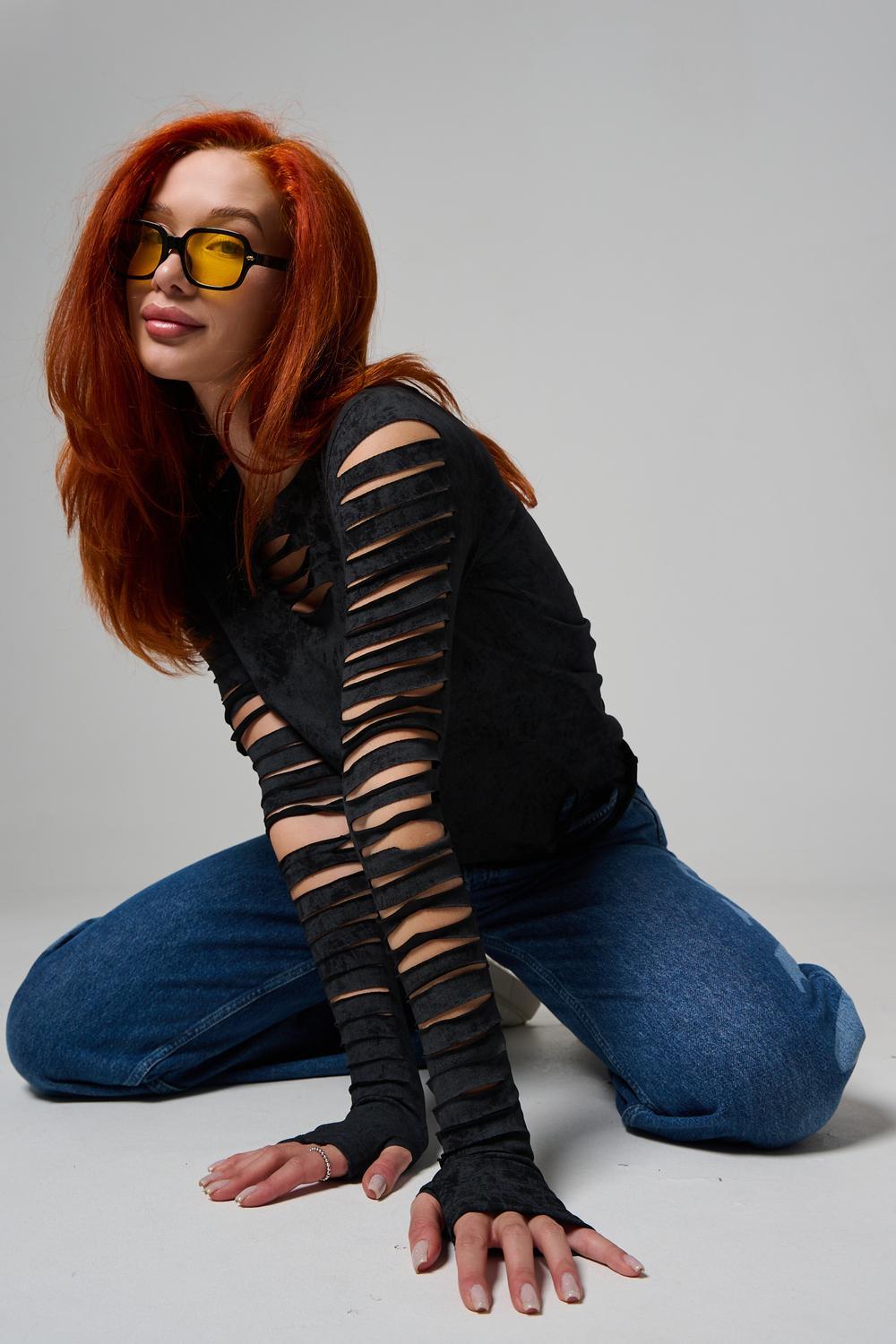 Женский лонгслив с длинными рукавами с из качественного хлопкового трикотажа. Необычный дизайнерский лонгслив с декоративным разрезами станет ярким дополнением к Вашему образу.