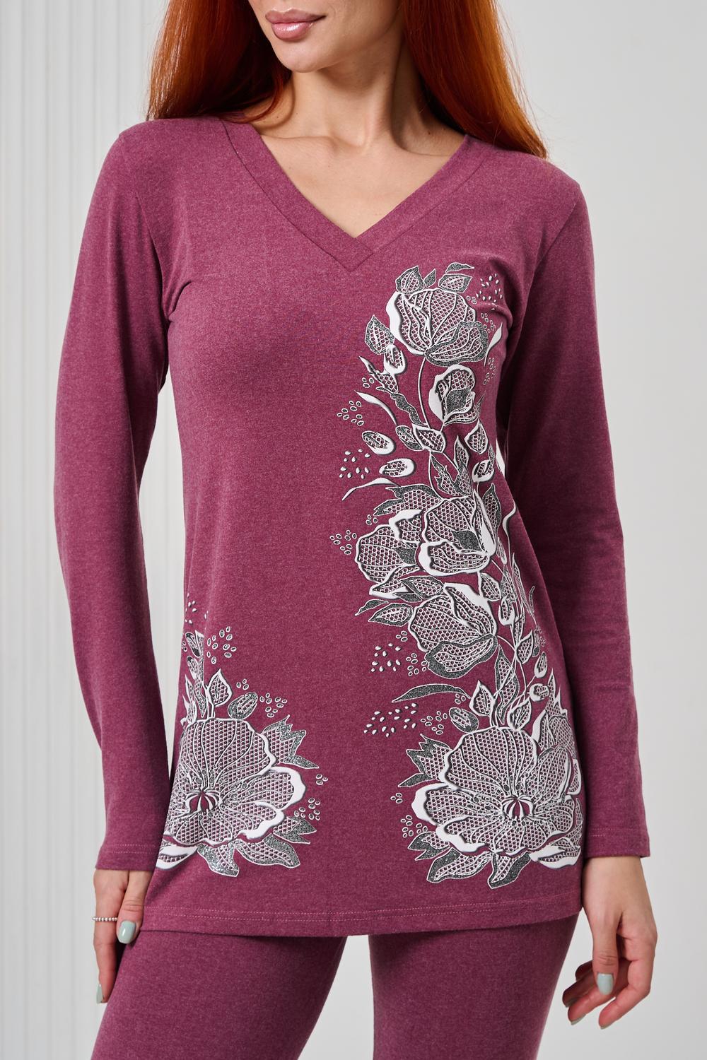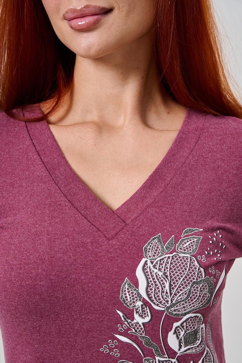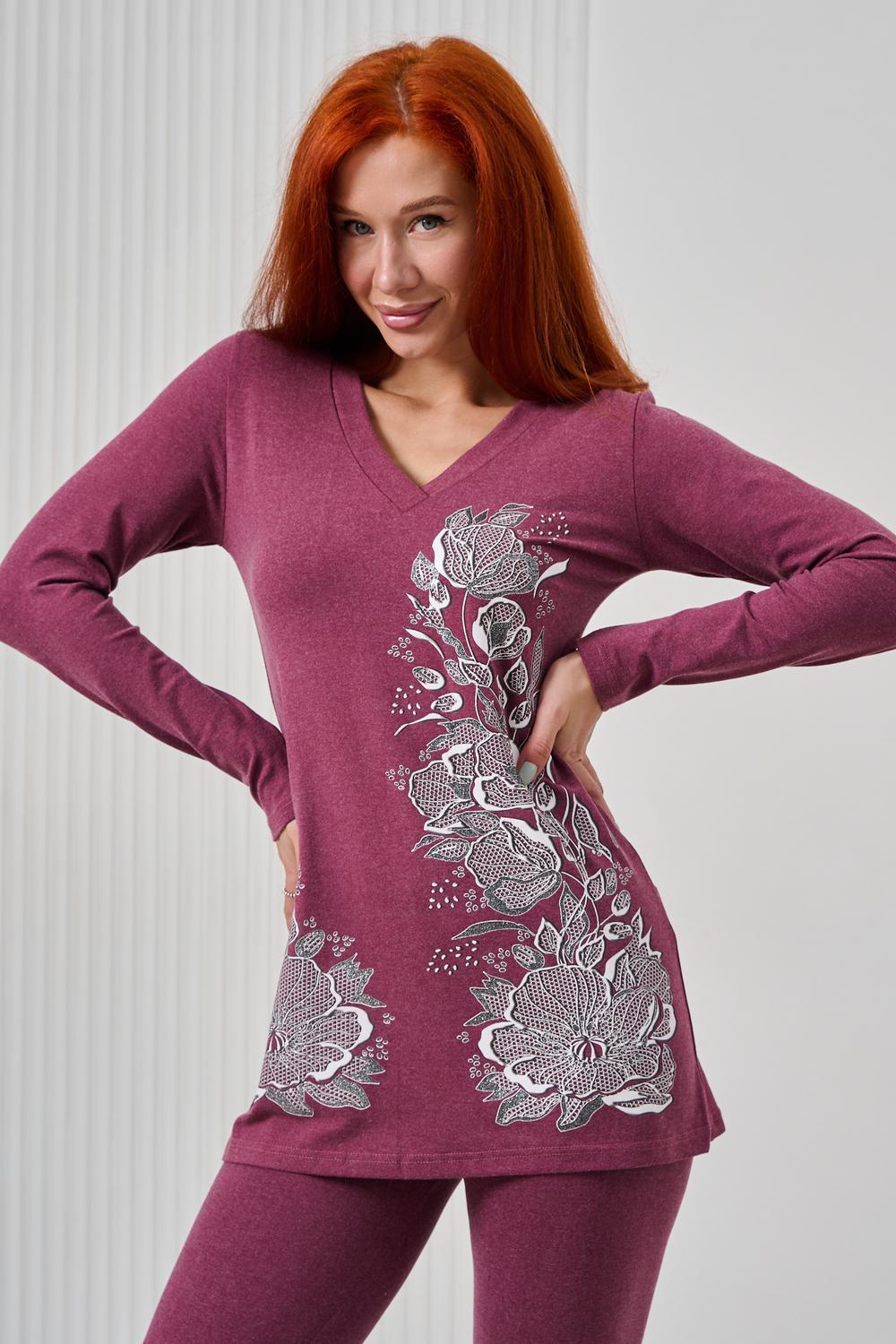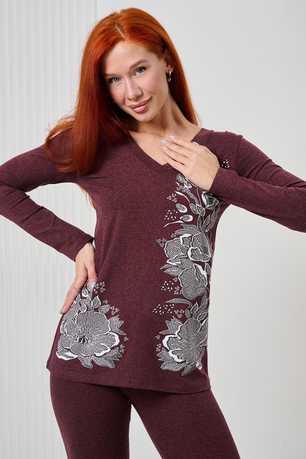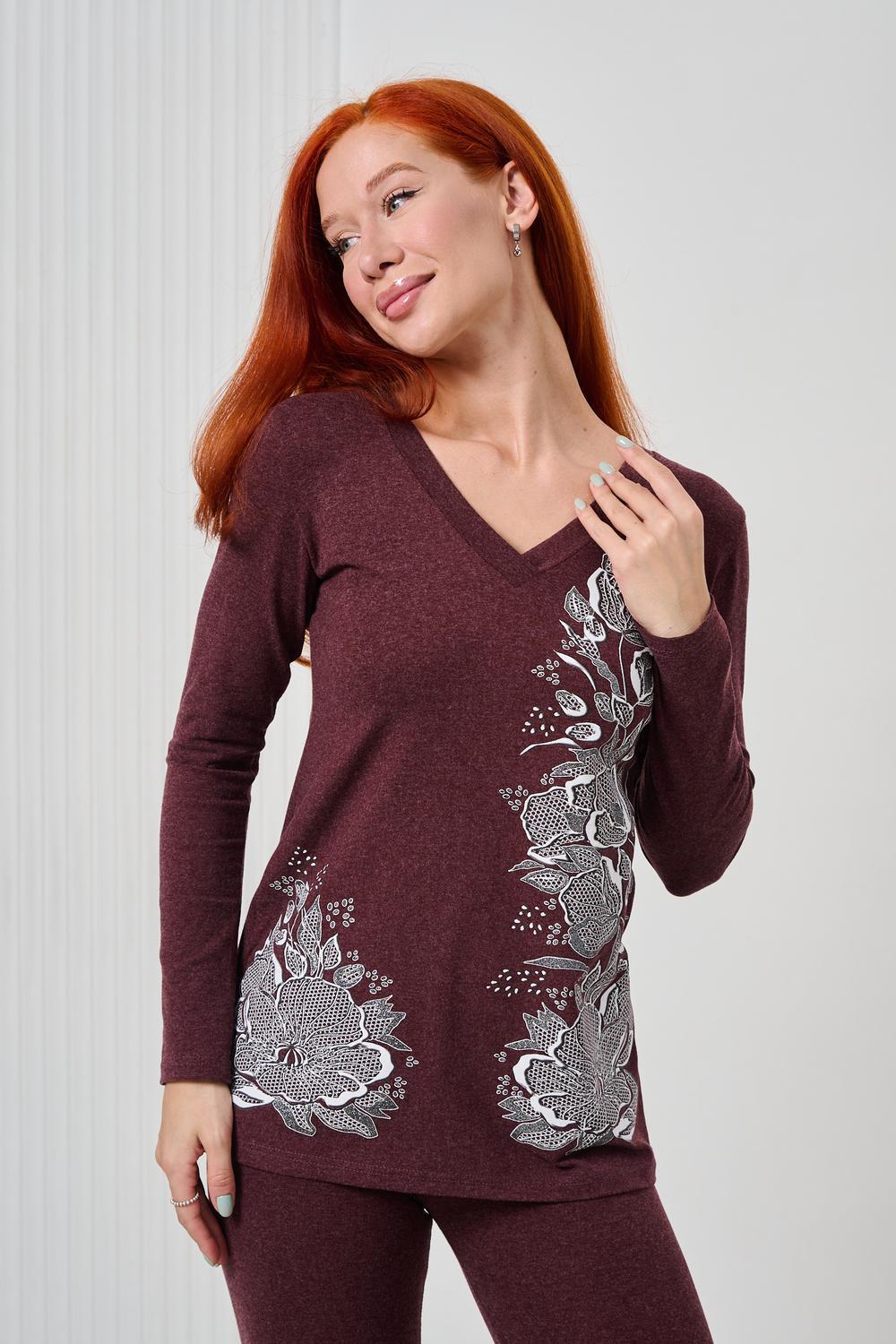 Элегантный джемпер чуть ниже бёдер полуприлегающего силуэта из очень мягкой, комфортной к телу ткани. Рукав длинный. Печать-имитация вышивки с глиттером. Модель прекрасно впишется в демисезонный гардероб. Ткань хорошо растягивается благодаря наличию в составе 5% лайкры.