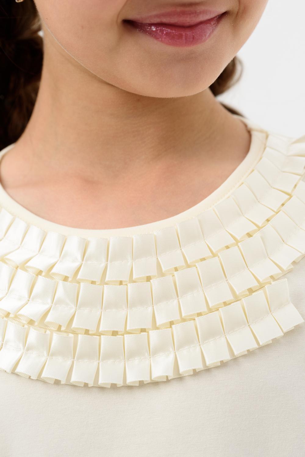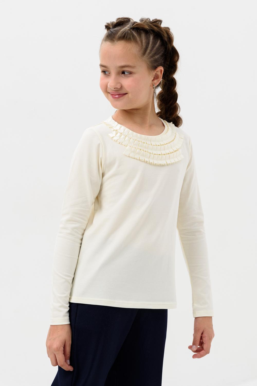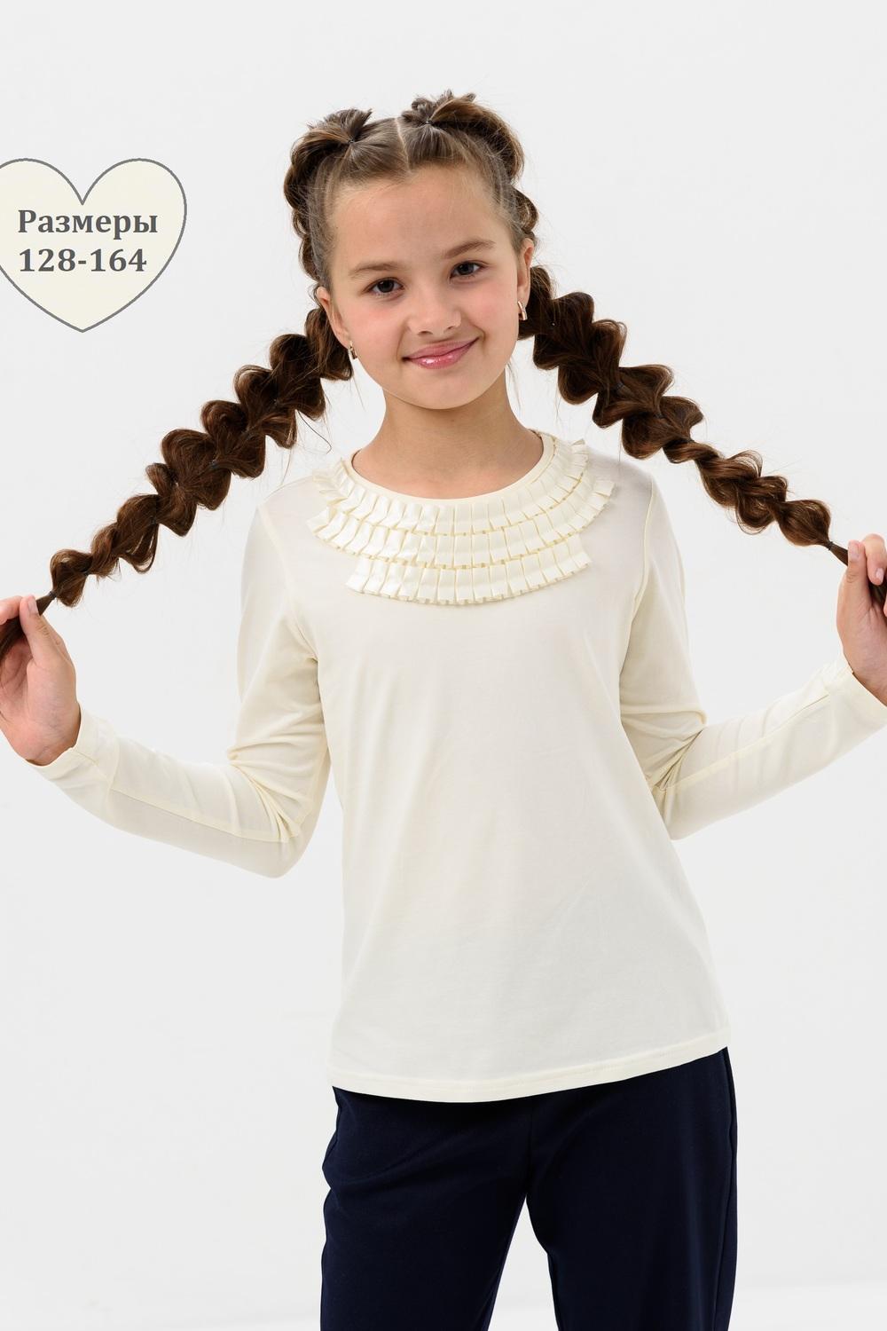 Базовый школьный джемпер для девочек с длинным рукавом. Нарядная блузка станет основой как повседневного, так и праздничного образа. Декор из атласных рюш добавляет джемперу элегантности и нежности. Модель составит одинаково удачный комплект и с юбкой, и с брюками. Джемпер сшит из качественного трикотажа, используемый материал не теряет форму после многократных стирок, мягкий и приятный к телу, устойчив к износу. Для сохранения первоначальных свойств изделия, важно соблюдать рекомендации по уходу.