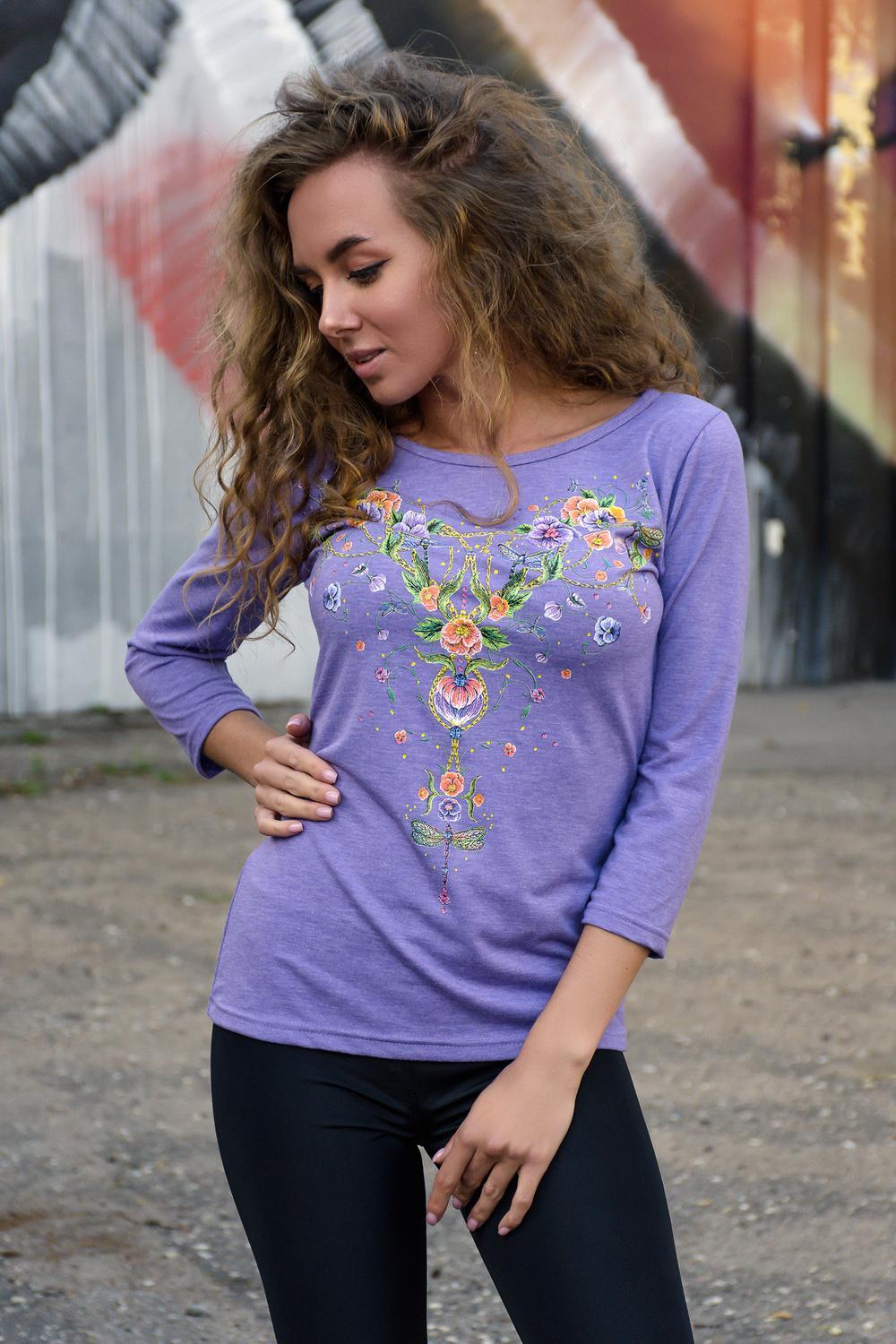 Универсальная модель из очень мягкой, комфортной к телу ткани. Кофта прекрасно впишется в демисезонный гардероб. Прекрасно комбинируется с лосинами, брюками, джинсами, юбками. Кофта украшена оригинальной печатью с добавлением золотого глиттера на крыльях стрекоз.