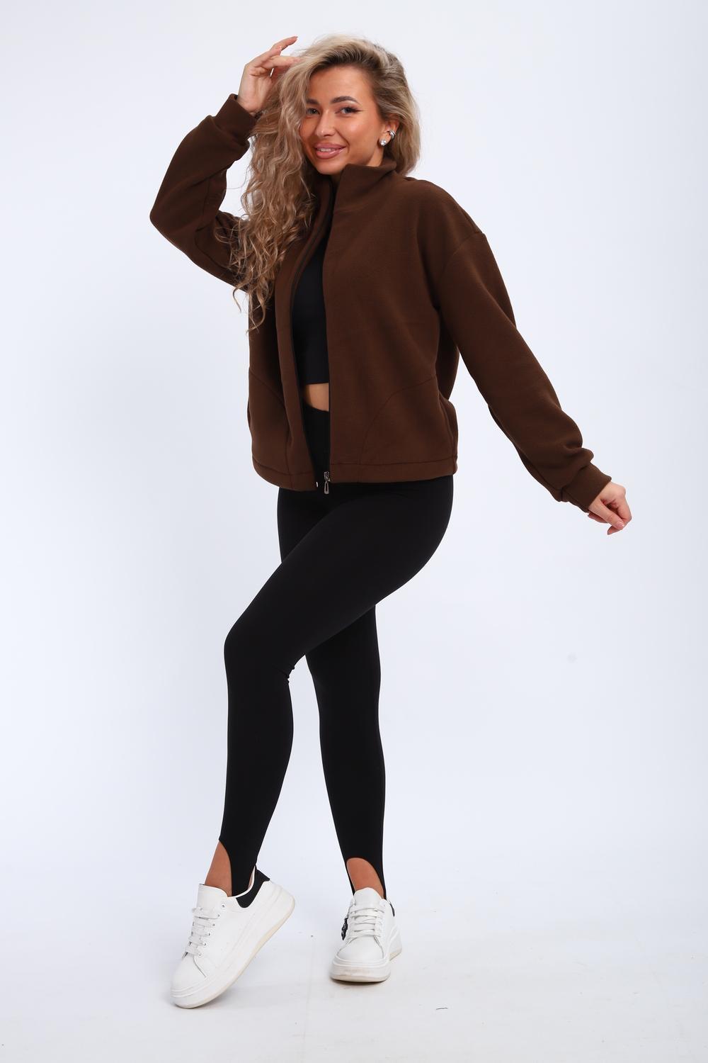 Кофта женская теплая на молнии с карманами. Рукав длинный на манжете, воротник стойка.