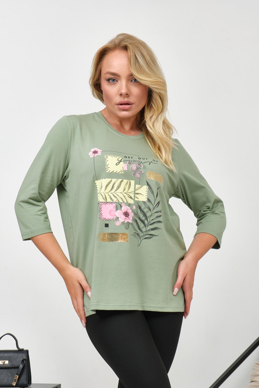 Лонгслив прямого силуэта с округлой горловиной. Рукав втачной, длиной 3/4. На полочке нанесен принт.