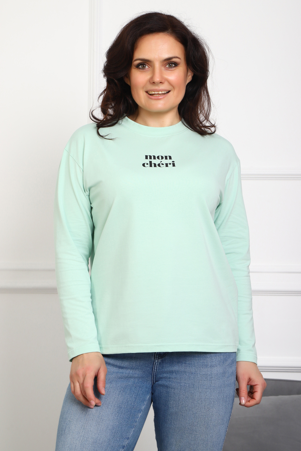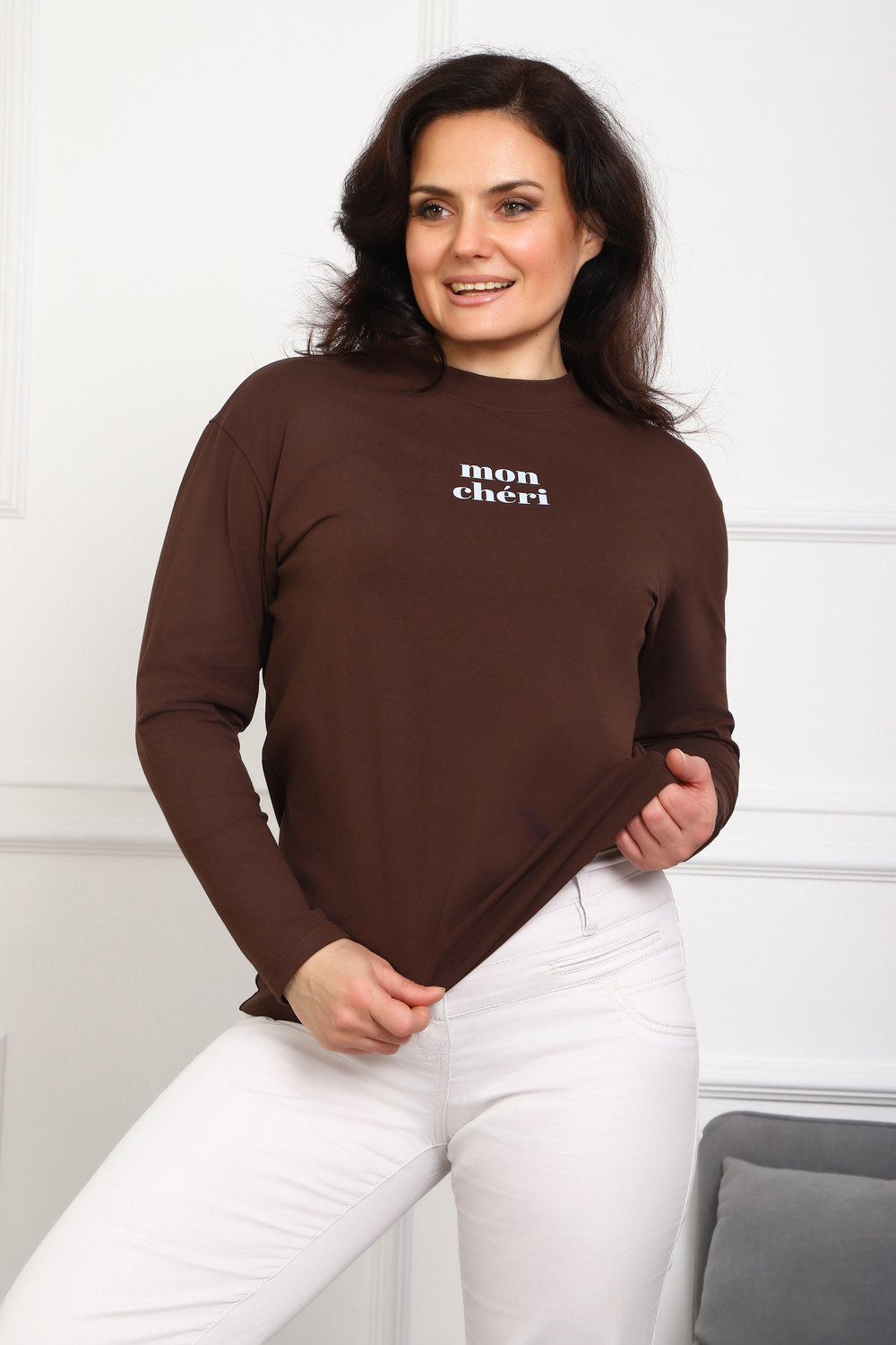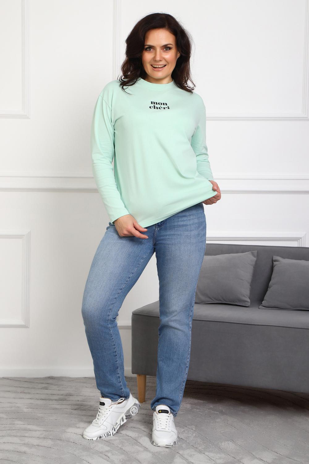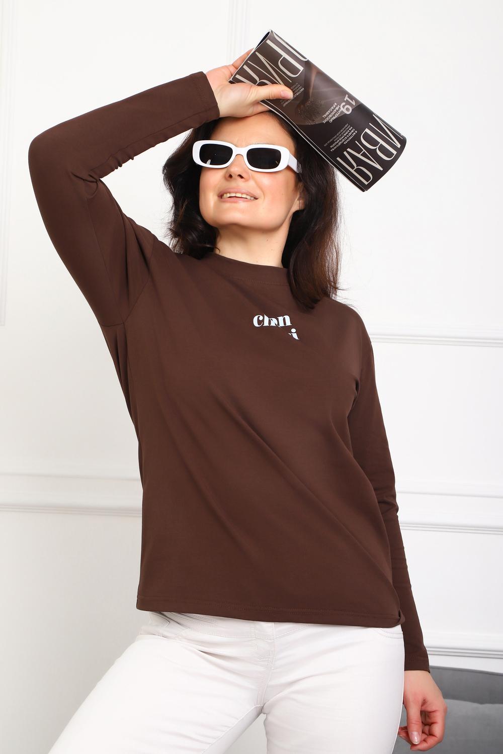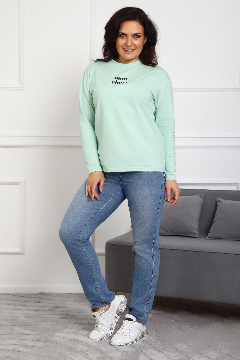 Лонгслив женский MON CHERI Женский лонгслив свободой посадки изготовлен из мягкой и приятной к телу кулирки, которая состоит из высококачественного хлопка (95%) и небольшого процента лайкры (5%), обеспечивающей лёгкую эластичность и долговечность изделия. Свободный прямой и удлиненный крой подчеркивает удобство и расслабленный стиль, позволяя носить его ежедневно. Длинные рукава и круглая горловина создают гармоничный внешний вид, подчеркивая женственность и утончённость. Элегантный минималистичный принт на груди с романтичным французским выражением "Mon Cheri" привносит особую атмосферу романтики и легкости в образ. Важным преимуществом является сдвоенный размер, позволяющий комфортно подобрать модель каждой женщине, независимо от особенностей фигуры. Данный лонгслив станет идеальным выбором для тех, кто ценит сочетание комфорта, удобства и современного дизайна.