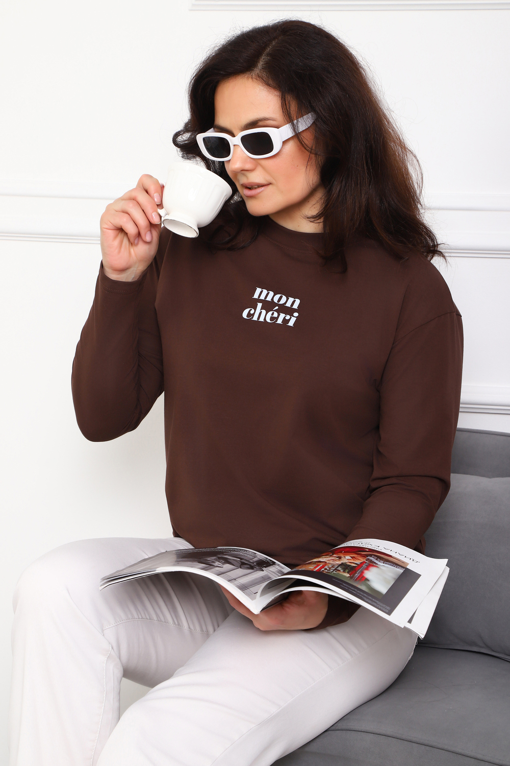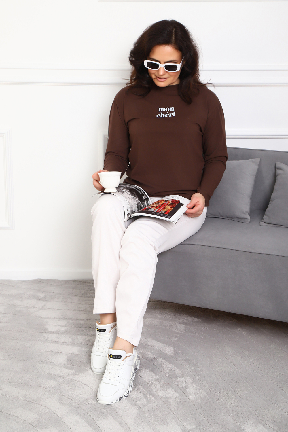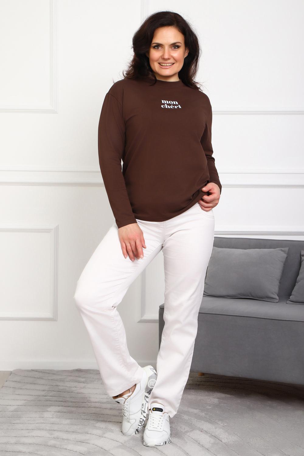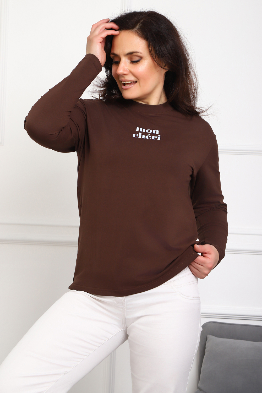 Лонгслив женский MON CHERI Женский лонгслив свободой посадки изготовлен из мягкой и приятной к телу кулирки, которая состоит из высококачественного хлопка (95%) и небольшого процента лайкры (5%), обеспечивающей лёгкую эластичность и долговечность изделия. Свободный прямой и удлиненный крой подчеркивает удобство и расслабленный стиль, позволяя носить его ежедневно. Длинные рукава и круглая горловина создают гармоничный внешний вид, подчеркивая женственность и утончённость. Элегантный минималистичный принт на груди с романтичным французским выражением "Mon Cheri" привносит особую атмосферу романтики и легкости в образ. Важным преимуществом является сдвоенный размер, позволяющий комфортно подобрать модель каждой женщине, независимо от особенностей фигуры. Данный лонгслив станет идеальным выбором для тех, кто ценит сочетание комфорта, удобства и современного дизайна.