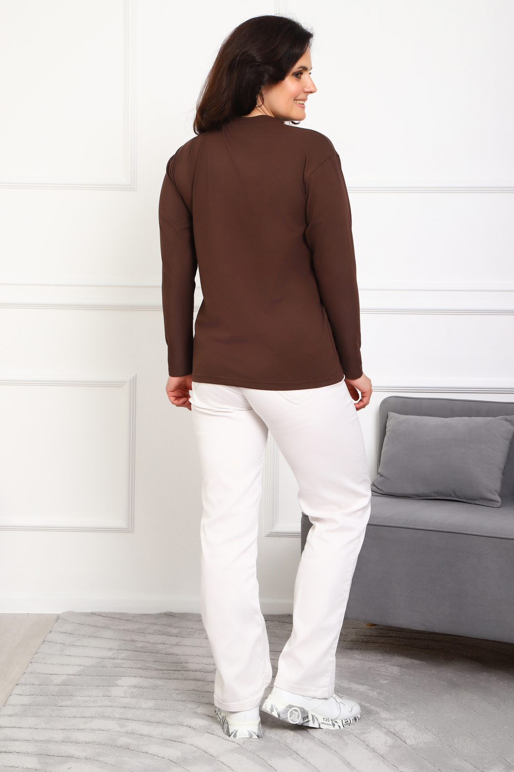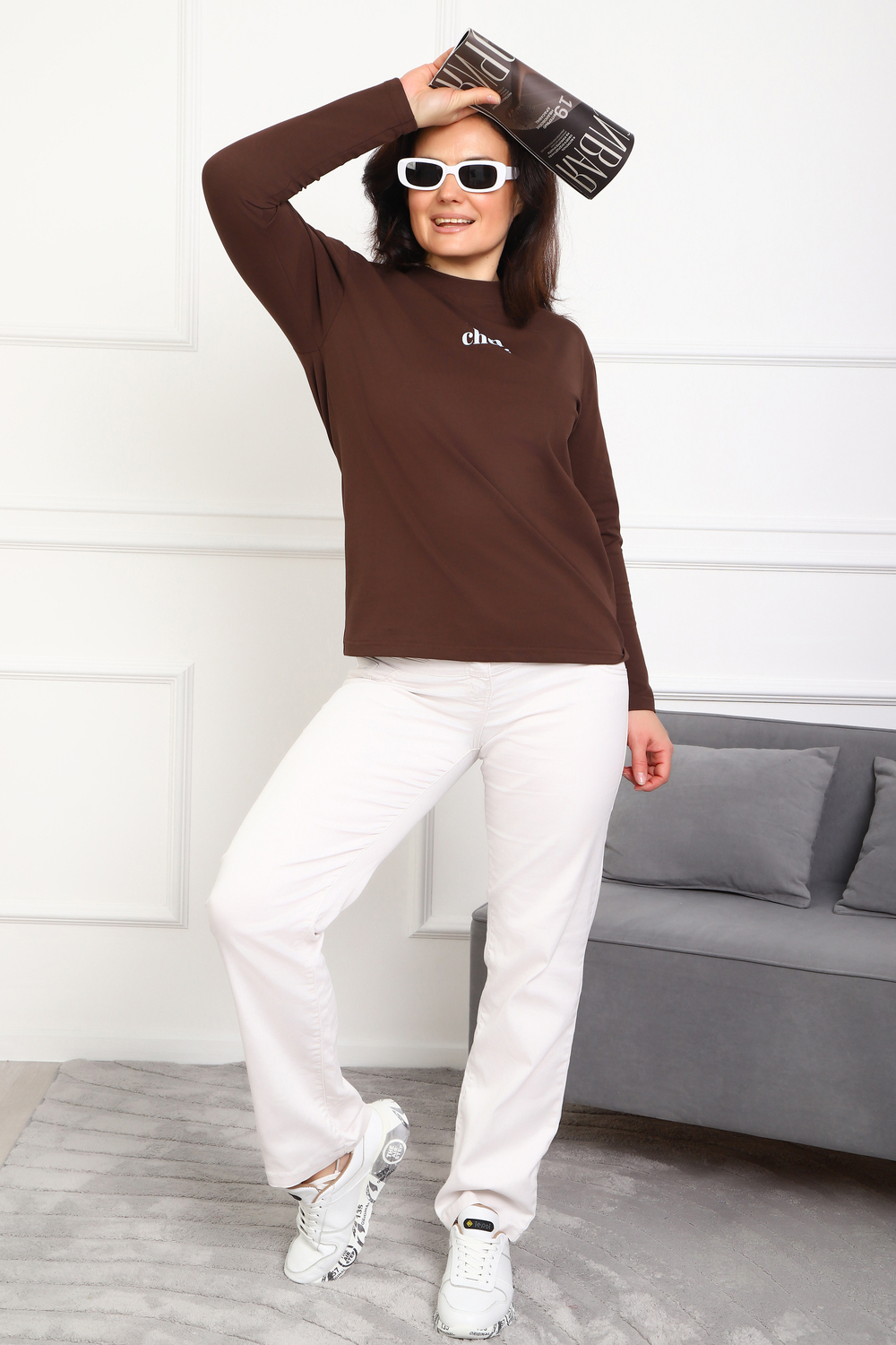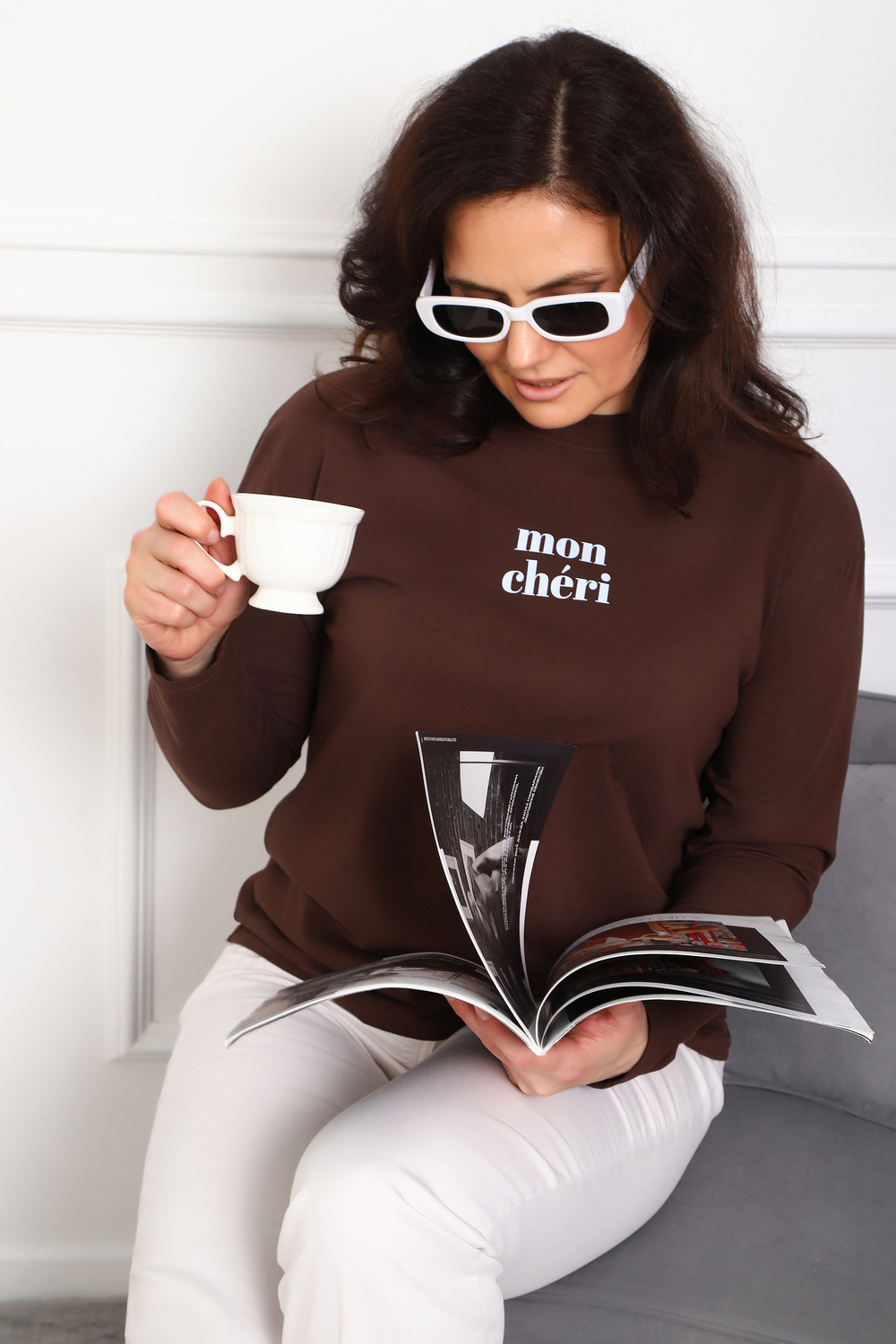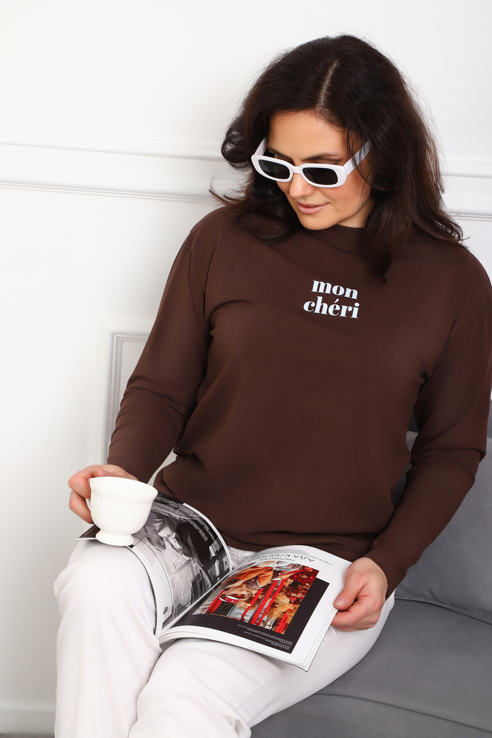 Лонгслив женский MON CHERI Женский лонгслив свободой посадки изготовлен из мягкой и приятной к телу кулирки, которая состоит из высококачественного хлопка (95%) и небольшого процента лайкры (5%), обеспечивающей лёгкую эластичность и долговечность изделия. Свободный прямой и удлиненный крой подчеркивает удобство и расслабленный стиль, позволяя носить его ежедневно. Длинные рукава и круглая горловина создают гармоничный внешний вид, подчеркивая женственность и утончённость. Элегантный минималистичный принт на груди с романтичным французским выражением "Mon Cheri" привносит особую атмосферу романтики и легкости в образ. Важным преимуществом является сдвоенный размер, позволяющий комфортно подобрать модель каждой женщине, независимо от особенностей фигуры. Данный лонгслив станет идеальным выбором для тех, кто ценит сочетание комфорта, удобства и современного дизайна.