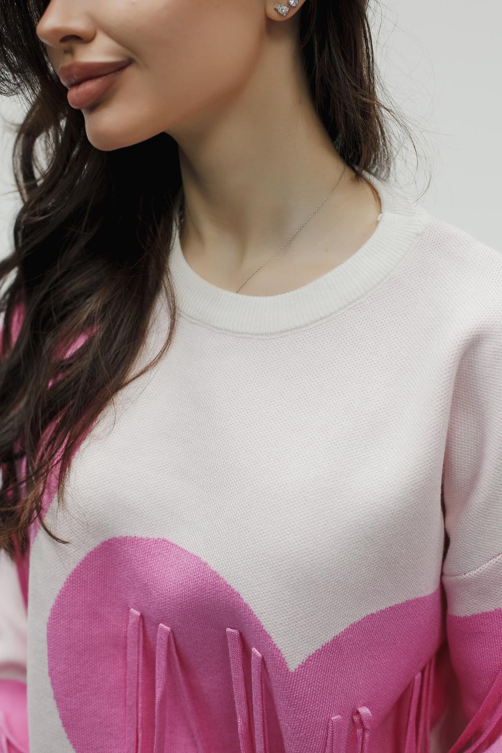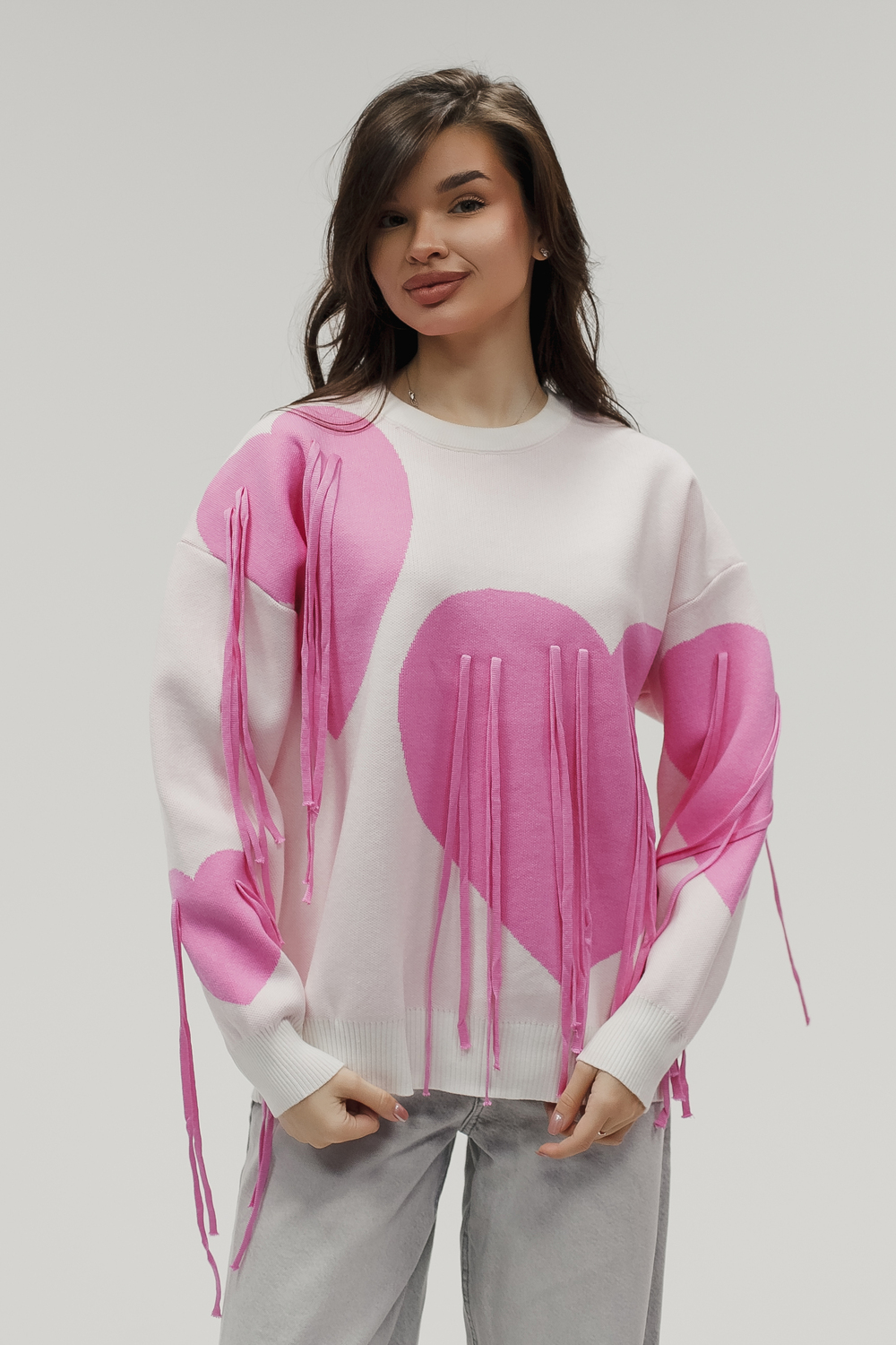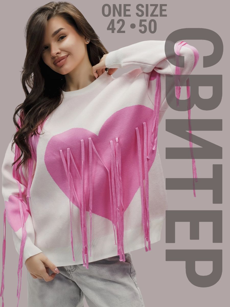 Тёплый вязаный свитер с сердечками и декоративными верёвочками романтика в каждой детали! Почувствуйте уют и нежность с этим стильным вязаным свитером: тёплый трикотаж и милый дизайн создадут особое настроение и подчеркнут вашу индивидуальность. Модель сочетает комфорт повседневной вещи с романтичными деталями вывязанными сердечками по всей поверхности свитера и изящными верёвочками на плечах или по бокам, которые можно завязать в аккуратные элегантные бантики это придаёт модели особый шарм и позволяет менять образ по настроению. Плотный вязаный трикотаж (состав: 30% хлопка, 40% вискоза, 30% полиэстер) отлично сохраняет тепло, приятен к телу и не вызывает раздражения. Свободный силуэт не сковывает движений, подходит для разных типов фигуры и легко комбинируется с другой одеждой. Свитер будет отлично смотреться с джинсами скинни или бойфрендами. Для повседневного кэжуал‑образа, с юбками миди и высокими сапогами,для романтичного зимнего лука, с легинсами и объёмной верхней одеждой для уютных прогулок, а также со спортивной обувью или ботинками на толстой подошве для стильных городских образов. Сезонность осень, зима, весна, прохладное лето. Несмотря на декоративные элементы, свитер остаётся удобным в носке бантики не мешают, а при желании верёвочки можно оставить распущенными для более сдержанного вида. Уход прост: достаточно деликатной стирки при температуре не выше 30∘C, сушки в расправленном виде на горизонтальной поверхности; не отбеливать, при необходимости допускается бережная химчистка. Свитер станет любимым элементом гардероба. Согреет в прохладную погоду, добавит романтичности даже самому простому образу и подарит хорошее настроение. Подарите себе частичку романтики.