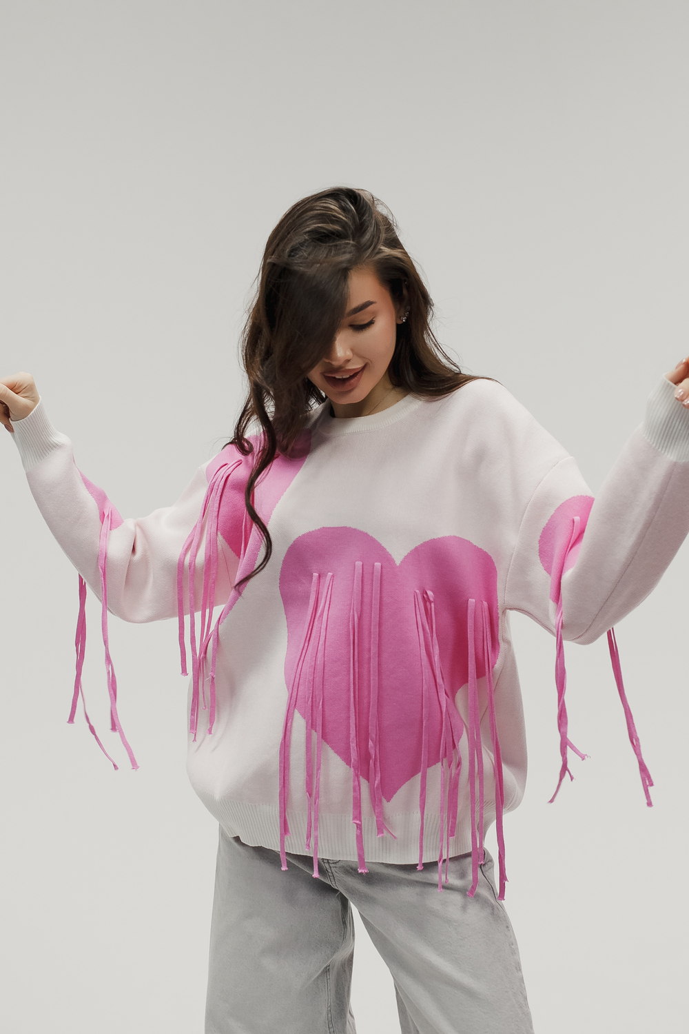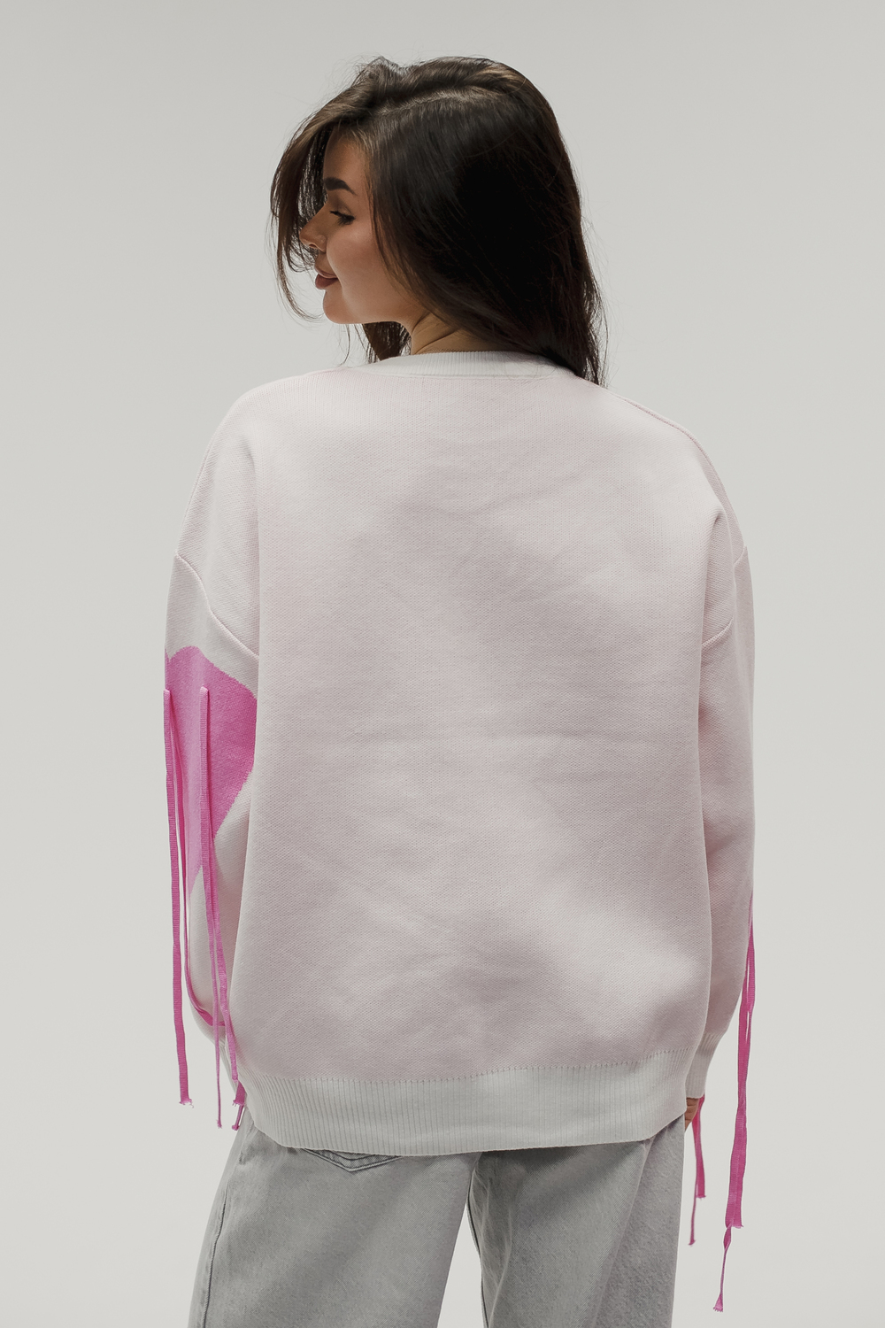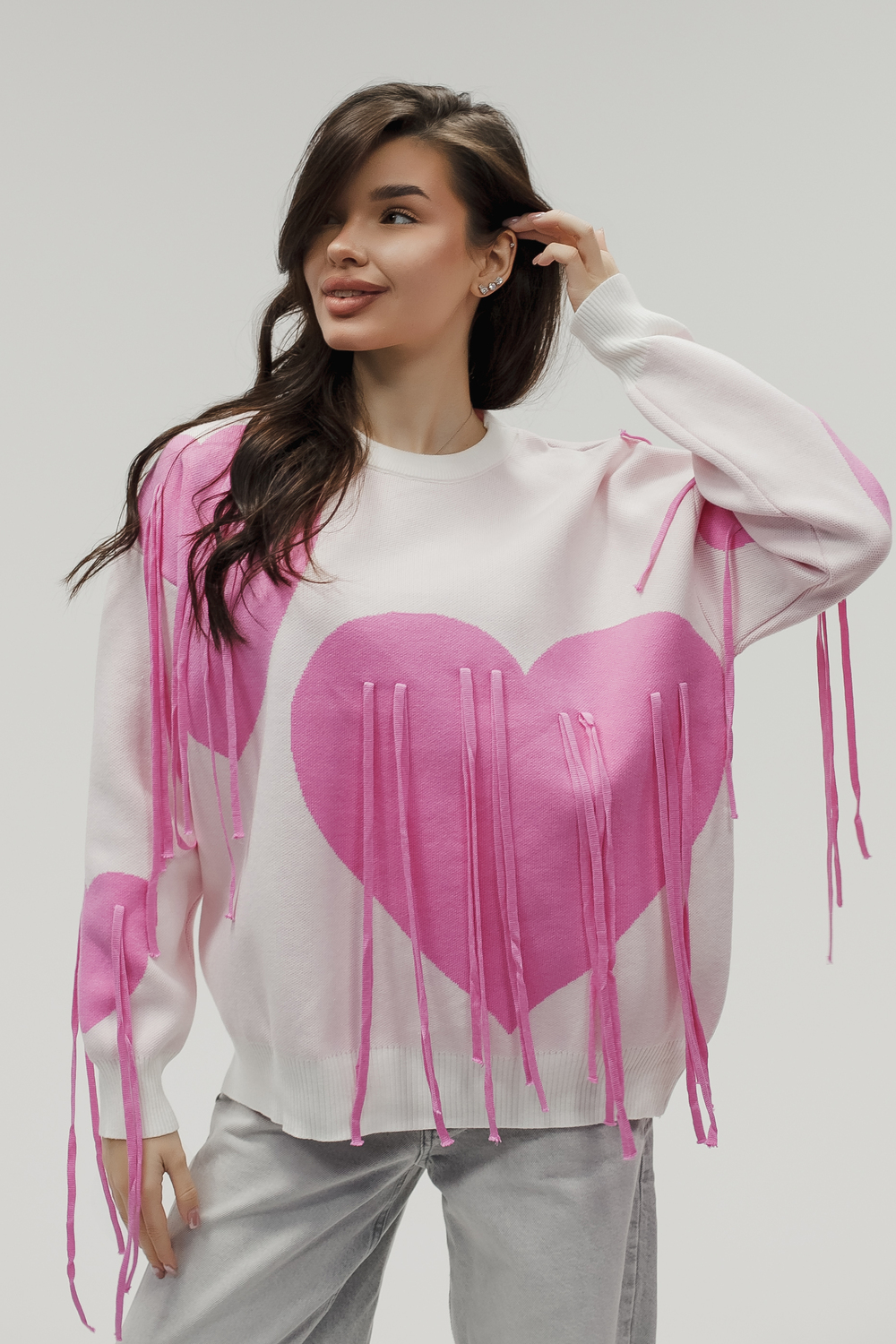 Тёплый вязаный свитер с сердечками и декоративными верёвочками романтика в каждой детали! Почувствуйте уют и нежность с этим стильным вязаным свитером: тёплый трикотаж и милый дизайн создадут особое настроение и подчеркнут вашу индивидуальность. Модель сочетает комфорт повседневной вещи с романтичными деталями вывязанными сердечками по всей поверхности свитера и изящными верёвочками на плечах или по бокам, которые можно завязать в аккуратные элегантные бантики это придаёт модели особый шарм и позволяет менять образ по настроению. Плотный вязаный трикотаж (состав: 30% хлопка, 40% вискоза, 30% полиэстер) отлично сохраняет тепло, приятен к телу и не вызывает раздражения. Свободный силуэт не сковывает движений, подходит для разных типов фигуры и легко комбинируется с другой одеждой. Свитер будет отлично смотреться с джинсами скинни или бойфрендами. Для повседневного кэжуал‑образа, с юбками миди и высокими сапогами,для романтичного зимнего лука, с легинсами и объёмной верхней одеждой для уютных прогулок, а также со спортивной обувью или ботинками на толстой подошве для стильных городских образов. Сезонность осень, зима, весна, прохладное лето. Несмотря на декоративные элементы, свитер остаётся удобным в носке бантики не мешают, а при желании верёвочки можно оставить распущенными для более сдержанного вида. Уход прост: достаточно деликатной стирки при температуре не выше 30∘C, сушки в расправленном виде на горизонтальной поверхности; не отбеливать, при необходимости допускается бережная химчистка. Свитер станет любимым элементом гардероба. Согреет в прохладную погоду, добавит романтичности даже самому простому образу и подарит хорошее настроение. Подарите себе частичку романтики.